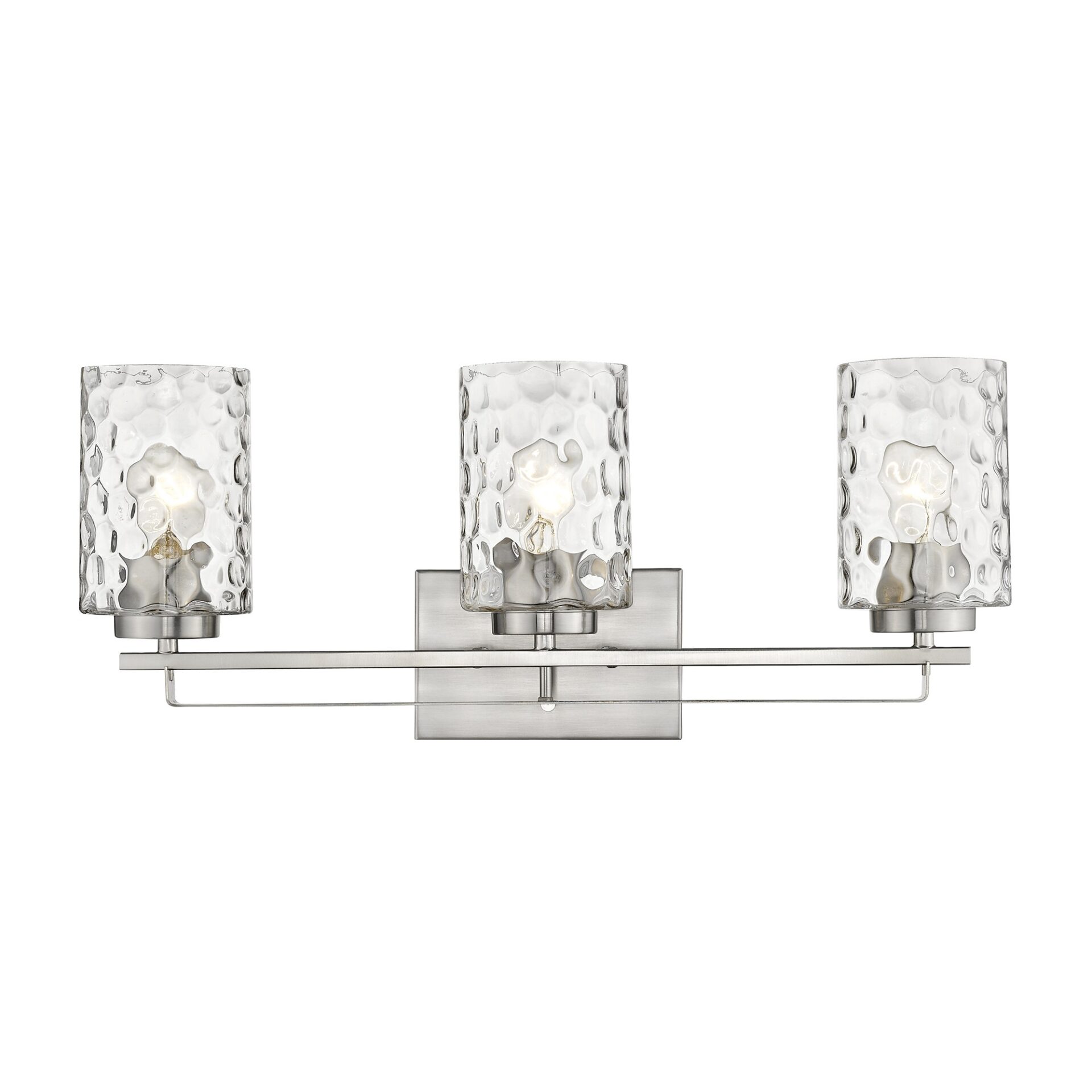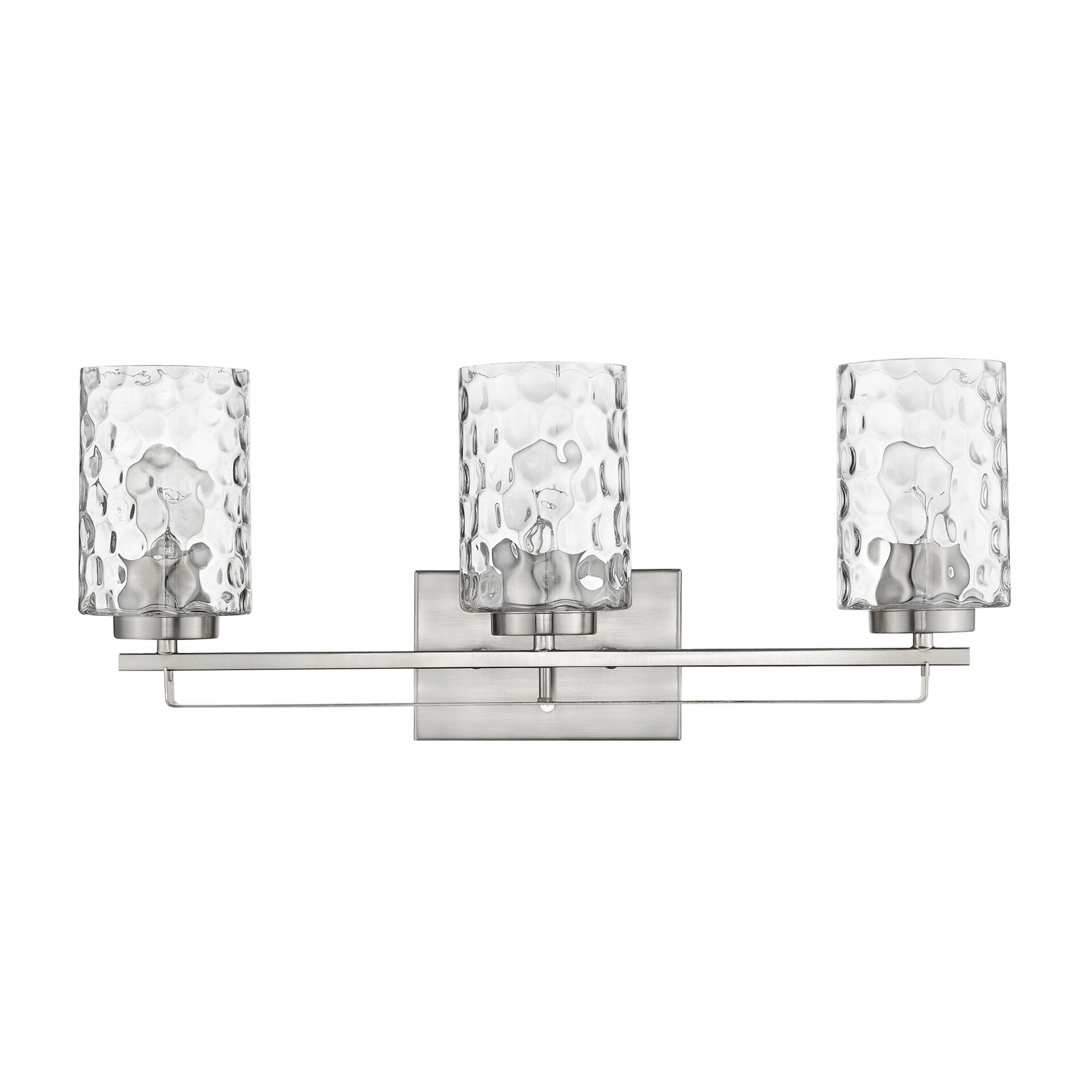 Modern and clean, the Livvy Modern 3-Light Satin Nickel Vanity with Optic Glass sparkles and shines. Featuring stunning optic glass perched upon a horizontal frame, this vanity light casts a beautiful pattern on nearby surfaces. Its sleek satin nickel finish and versatile mounting options make it a perfect addition to your space, combining both style and functionality.