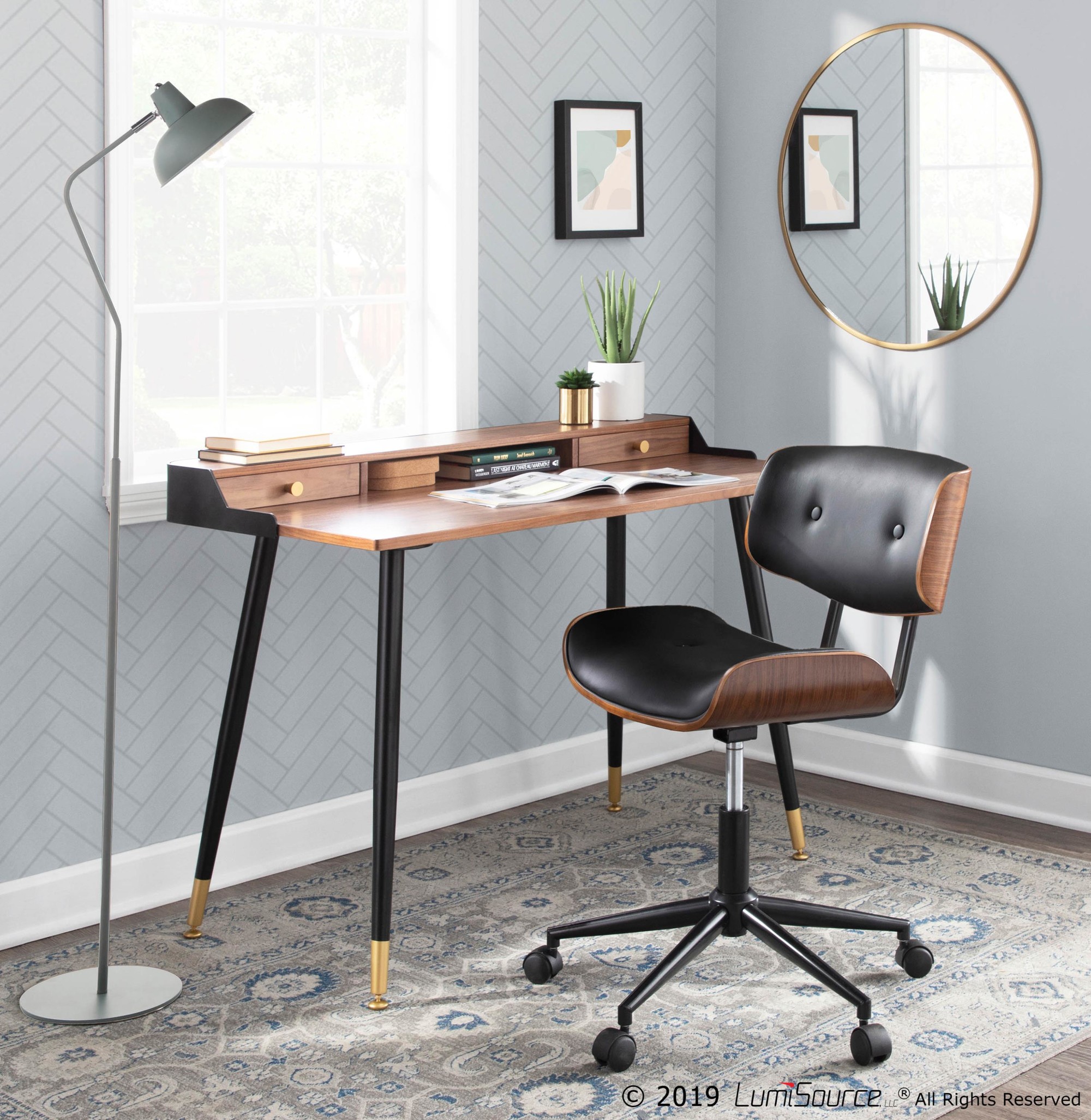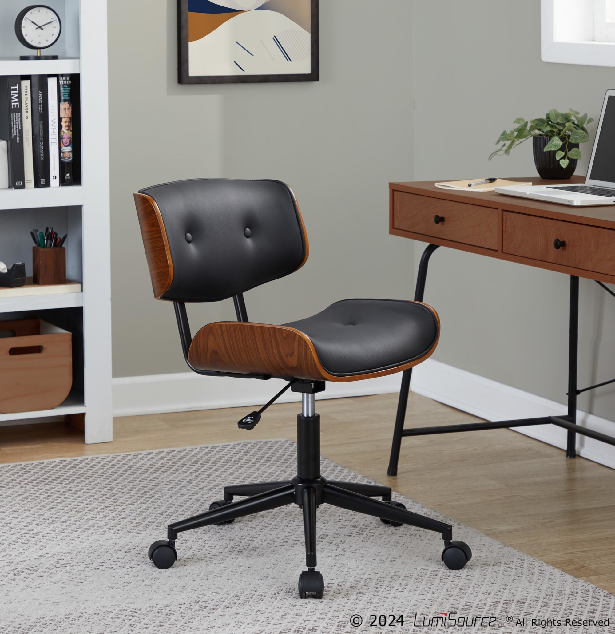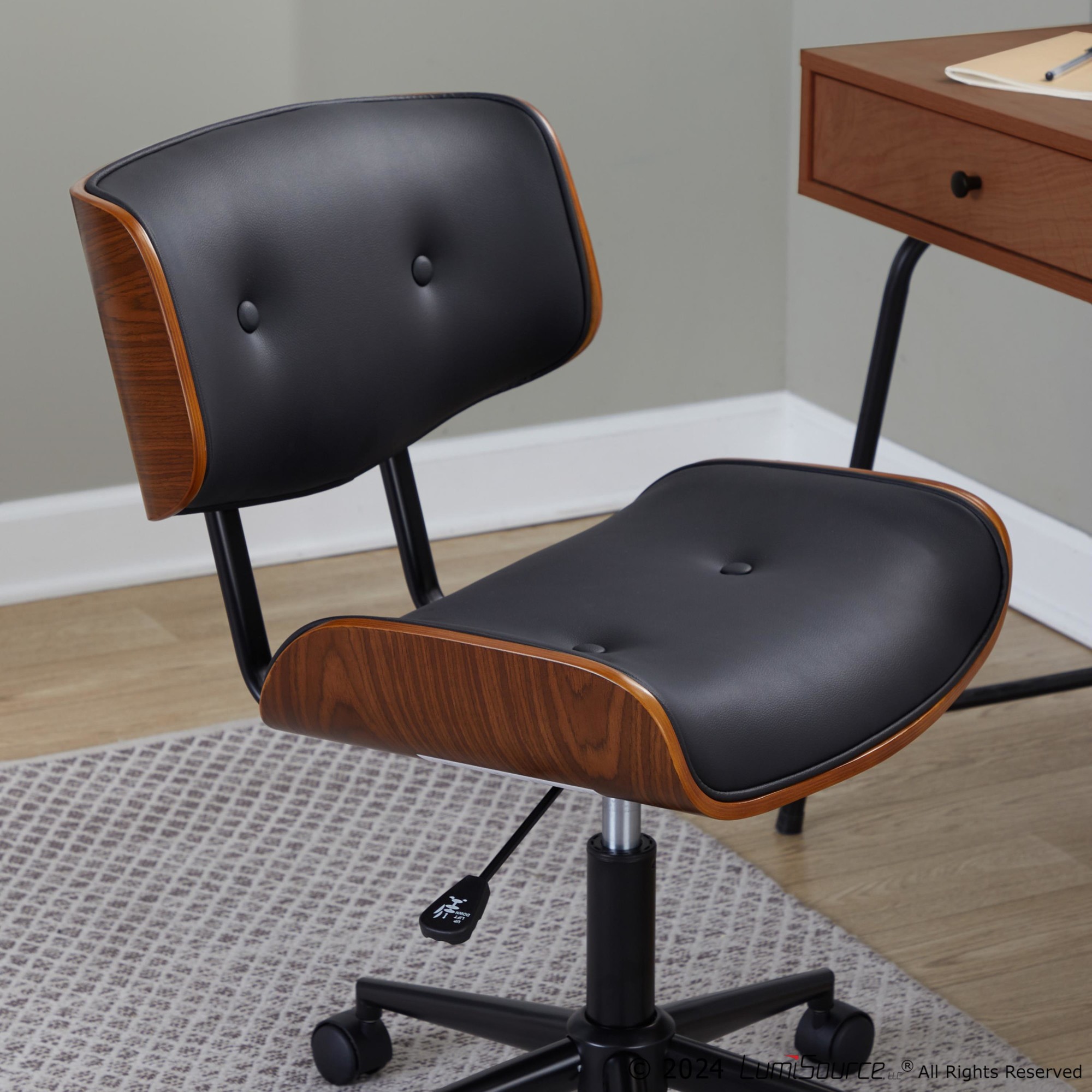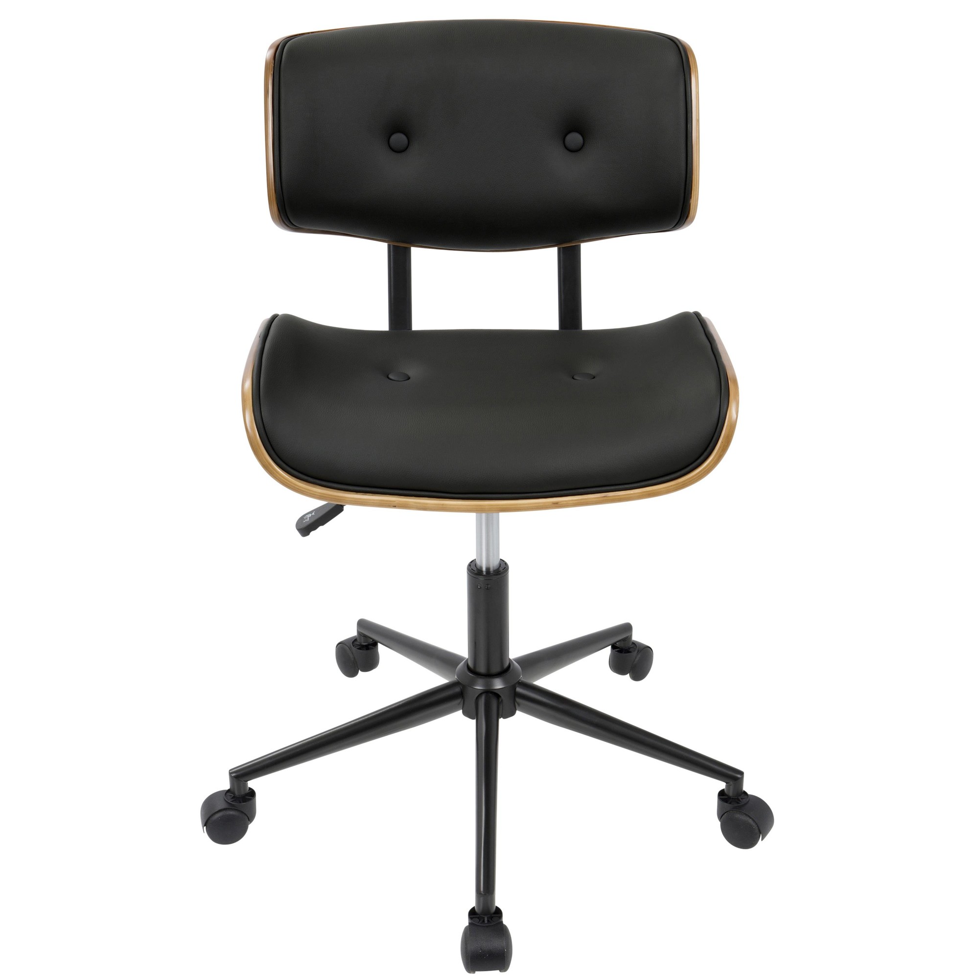 Bring sophistication to your office with the Lombardi Office Chair. This chair offers a blend of comfort and style, making it a great addition to any workspace. Enjoy the plush, tufted faux leather seat and supportive bent wood back, designed for optimal comfort during long work hours.