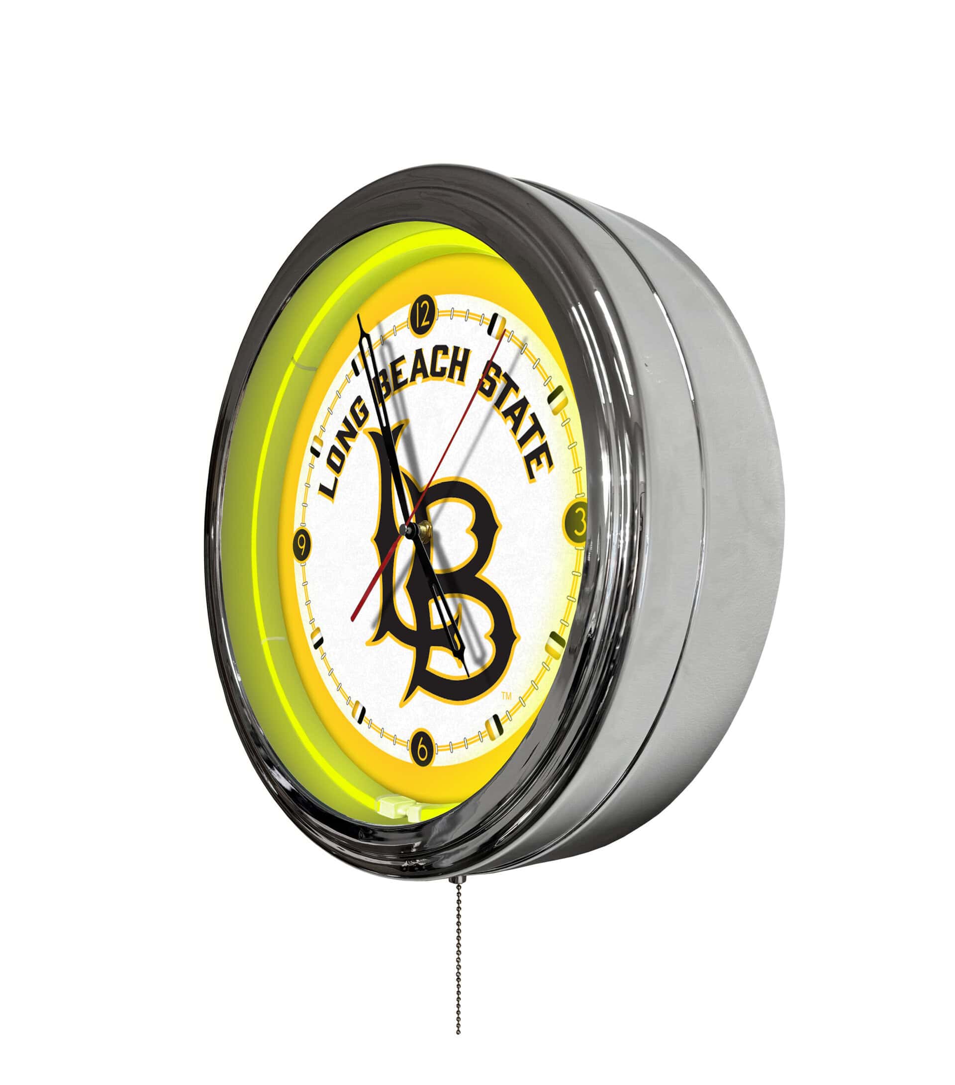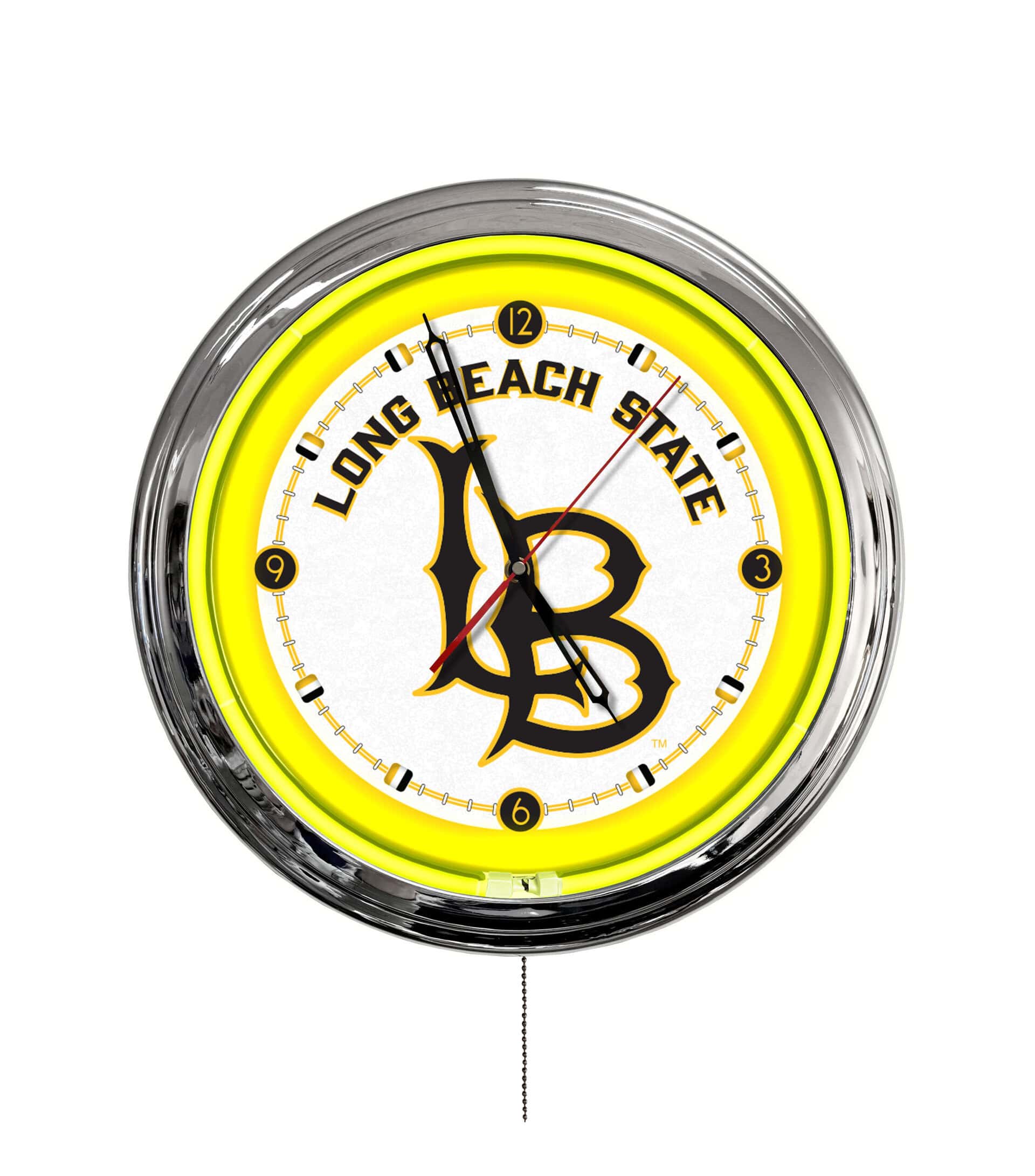 This 16-Inch multi-color LED wall clock offers a stylish and flexible alternative to traditional neon signs, perfect for any man cave. The clock features a vibrant array of illuminated logos and brands that shine against its sleek chrome casing. With **20 static colors**, **19 dynamic modes**, and adjustable **speed and brightness**, you can effortlessly adapt the ambiance to suit any occasion. The included wireless remote makes it easy to switch colors and settings, providing convenience and versatility. This clock is powered by a UL listed transformer that plugs into a standard 120V outlet and utilizes accurate quartz movement powered by a single AA battery (not included).