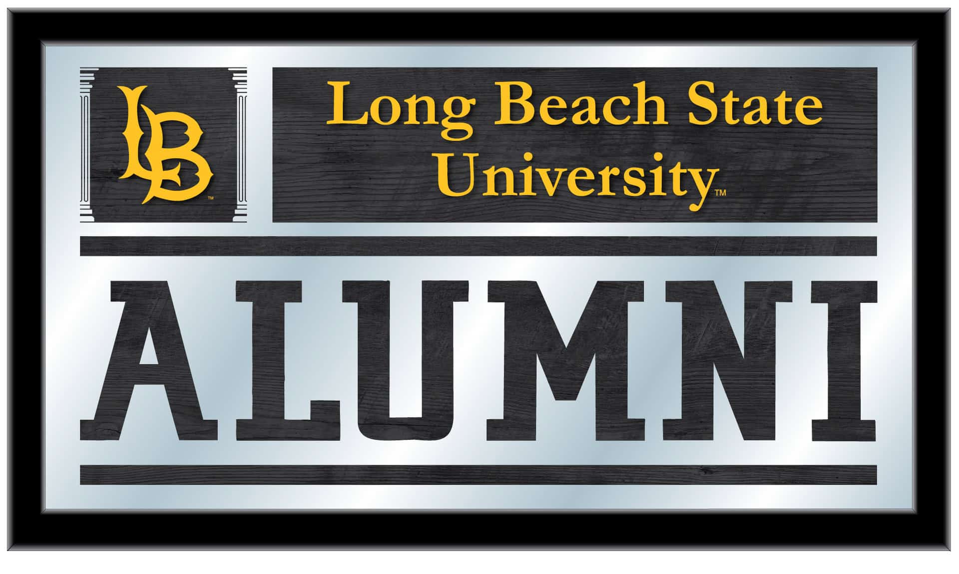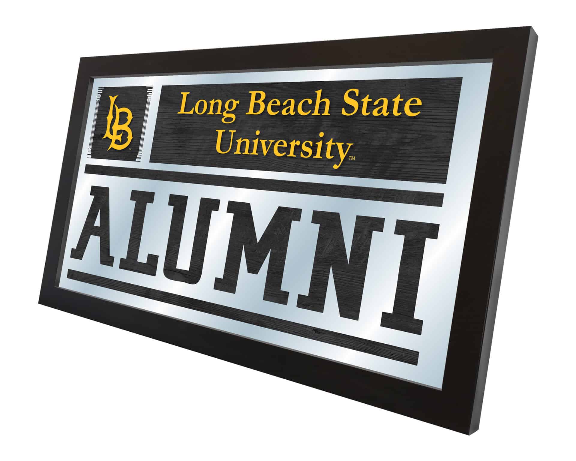 Show your school pride with the Long Beach State University 26×15 Alumni Wall Mirror. This elegantly designed mirror features vibrant school colors highlighted by mirrored accents, making it a stunning addition to any space. The 1/8″ thick glass ensures durability while the black, 1 1/4″ wrapped wood frame adds a touch of sophistication. With saw-tooth hangers for easy mounting, this mirror is perfect for your office, garage, or any room in the house. It also makes a thoughtful gift for recent graduates, allowing them to celebrate their achievements in style.