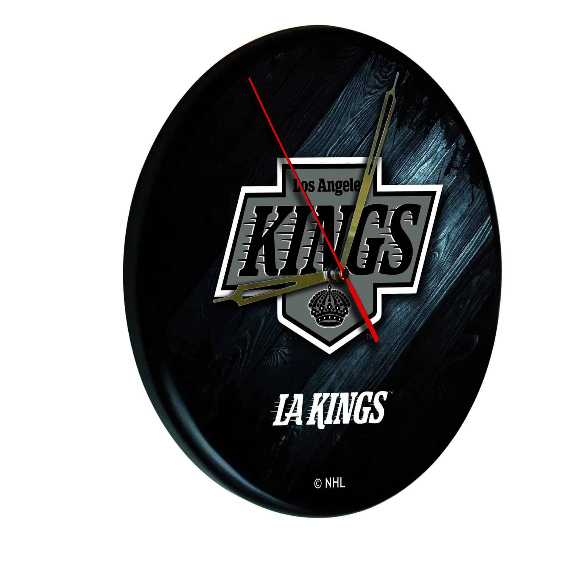 The Los Angeles Kings 13-Inch Solid Wood Clock in Black is the perfect addition to any sports fan’s decor. This clock not only tells time but also showcases your team pride with its stunning design. Featuring first surface, digitally printed graphics that utilize UV inks, the vibrant colors will not fade over time. With accurate quartz movement powered by a single AA battery (not included), you can enjoy precise timekeeping. The clock’s recessed keyhole hanger allows it to hang flat against the wall, providing a clean and polished look.