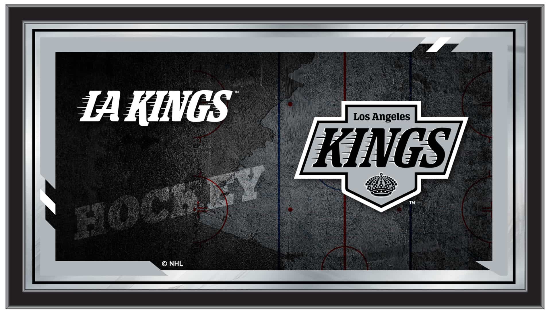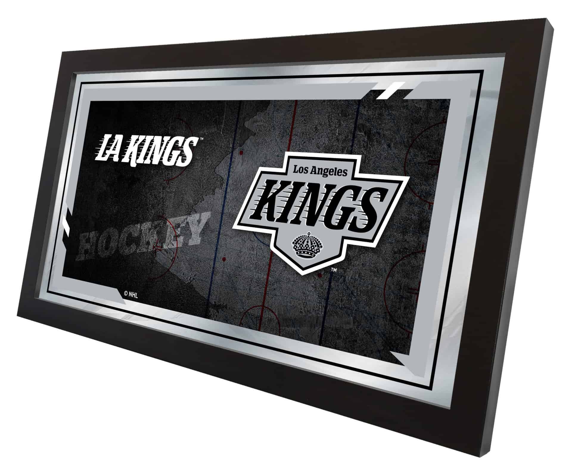 The perfect way to show your team pride, the Los Angeles Kings 15×26 Hockey Collector Mirror showcases your team’s symbols with style, making it an ideal addition to any setting. With a simple yet elegant design, the vibrant colors burst through the 1/8″ thick glass and are complemented by mirrored accents. This mirror is framed in a black, 1 1/4″ wrapped wood frame and features saw tooth hangers for easy installation. Measuring 15 inches high and 26 inches wide, it fits perfectly in your office, garage, or any room in the house. Whether for yourself or as a gift for a sports super fan, this mirror adds a touch of team spirit to any space.