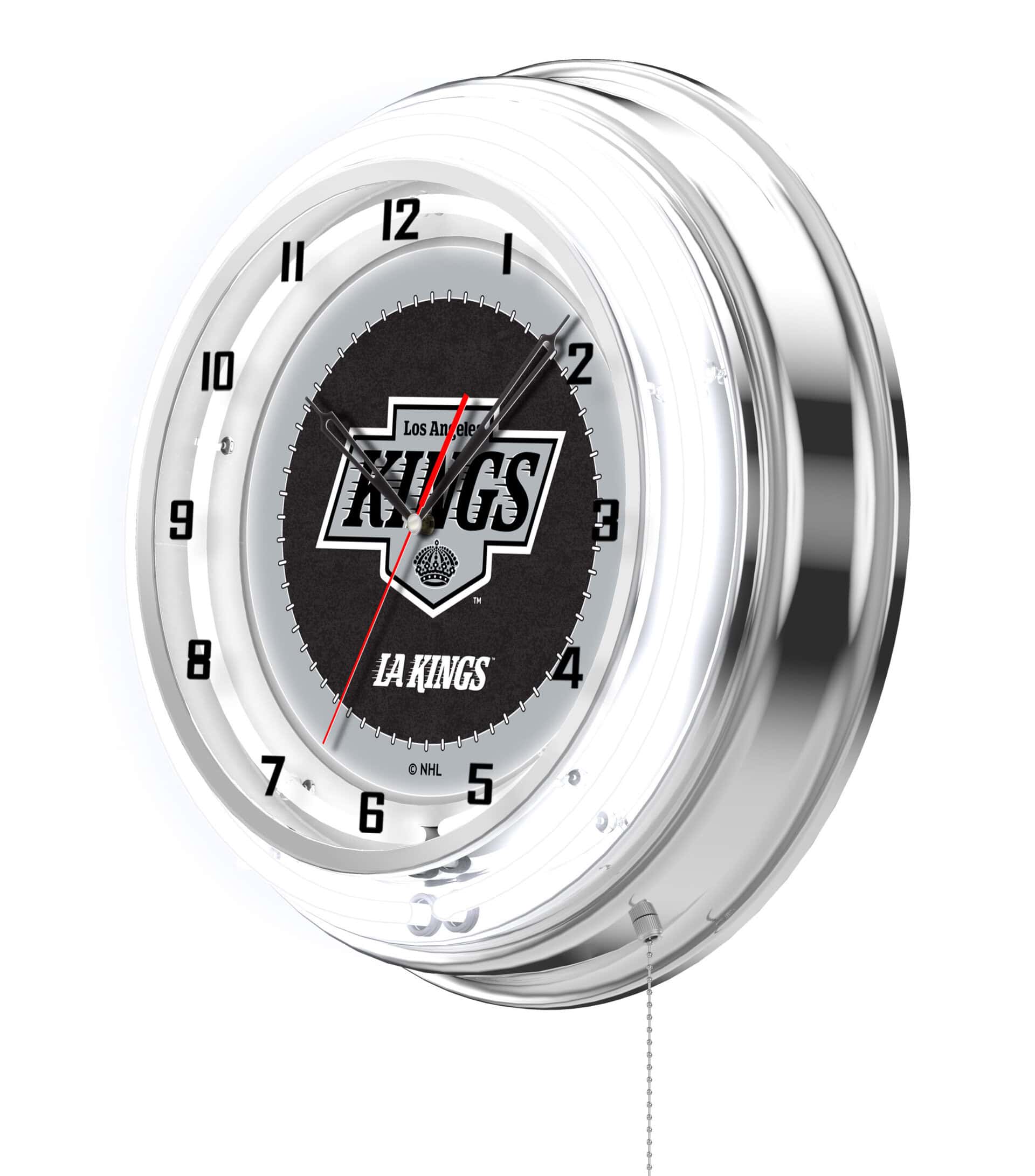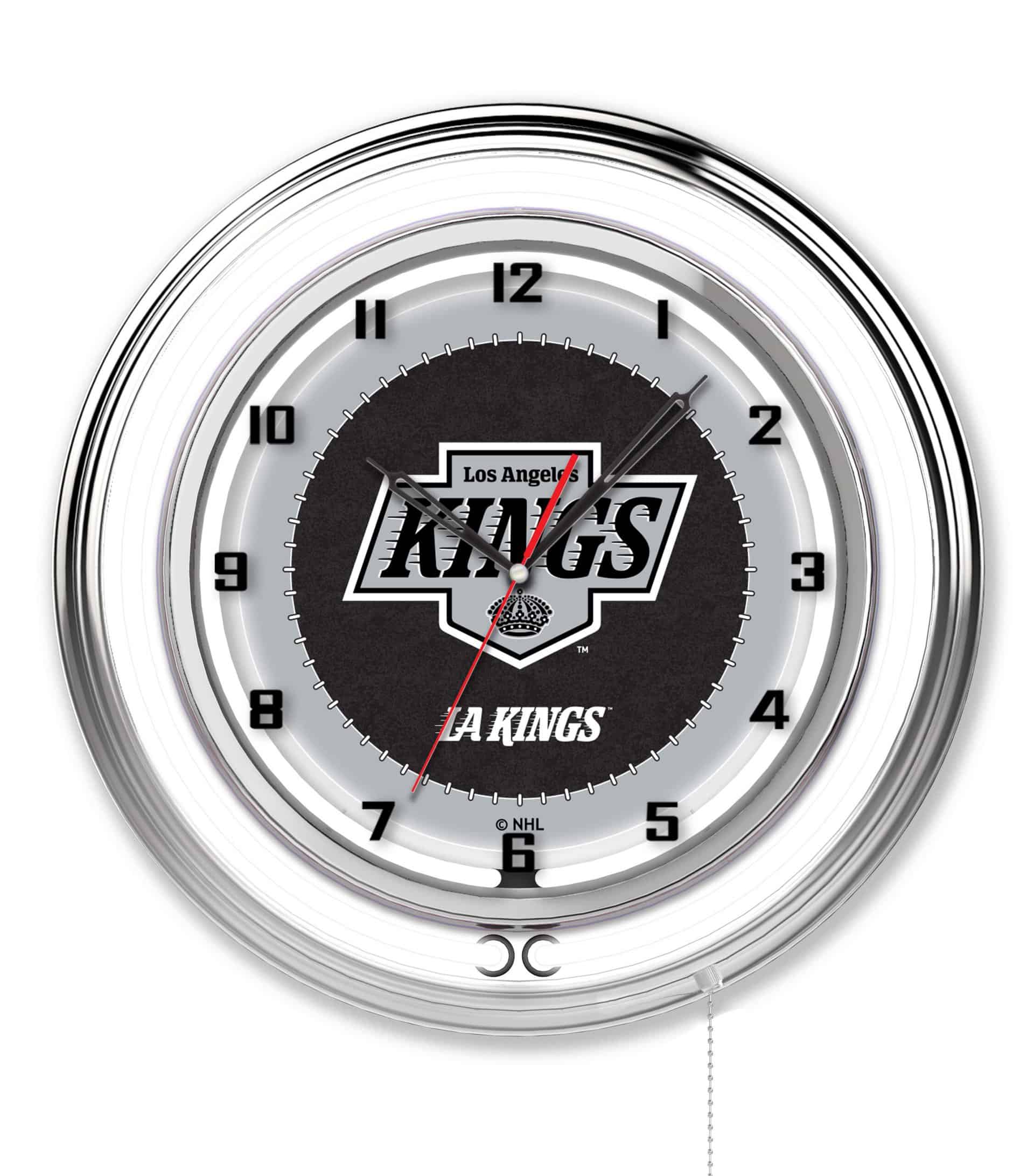 The Los Angeles Kings 19-Inch Neon Logo Clock in Chrome is a striking addition to any fan’s space, designed to showcase team pride while providing functionality. This clock features a vibrant, full-color artwork that is officially licensed, ensuring authenticity and quality. With a sleek chrome casing and a neon outer ring that highlights the custom printed clock face, it becomes a standout piece in any man cave or sports room. The clock is illuminated by a brilliant white inner neon ring, creating an eye-catching display.