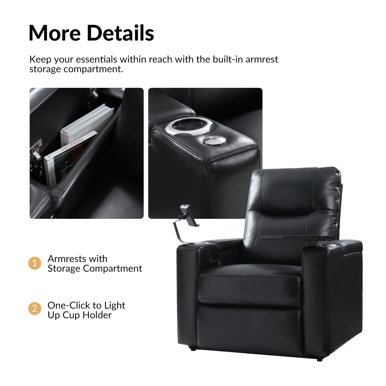 Get ready to experience the ultimate in relaxation with the Lothaire Black Leather Power Recliner! This isn’t just a recliner; it’s your personal command center for comfort and entertainment. Enjoy effortless adjustments, convenient storage, and integrated charging, all wrapped in luxurious black leather. Prepare for movie nights, gaming sessions, and serious relaxation!