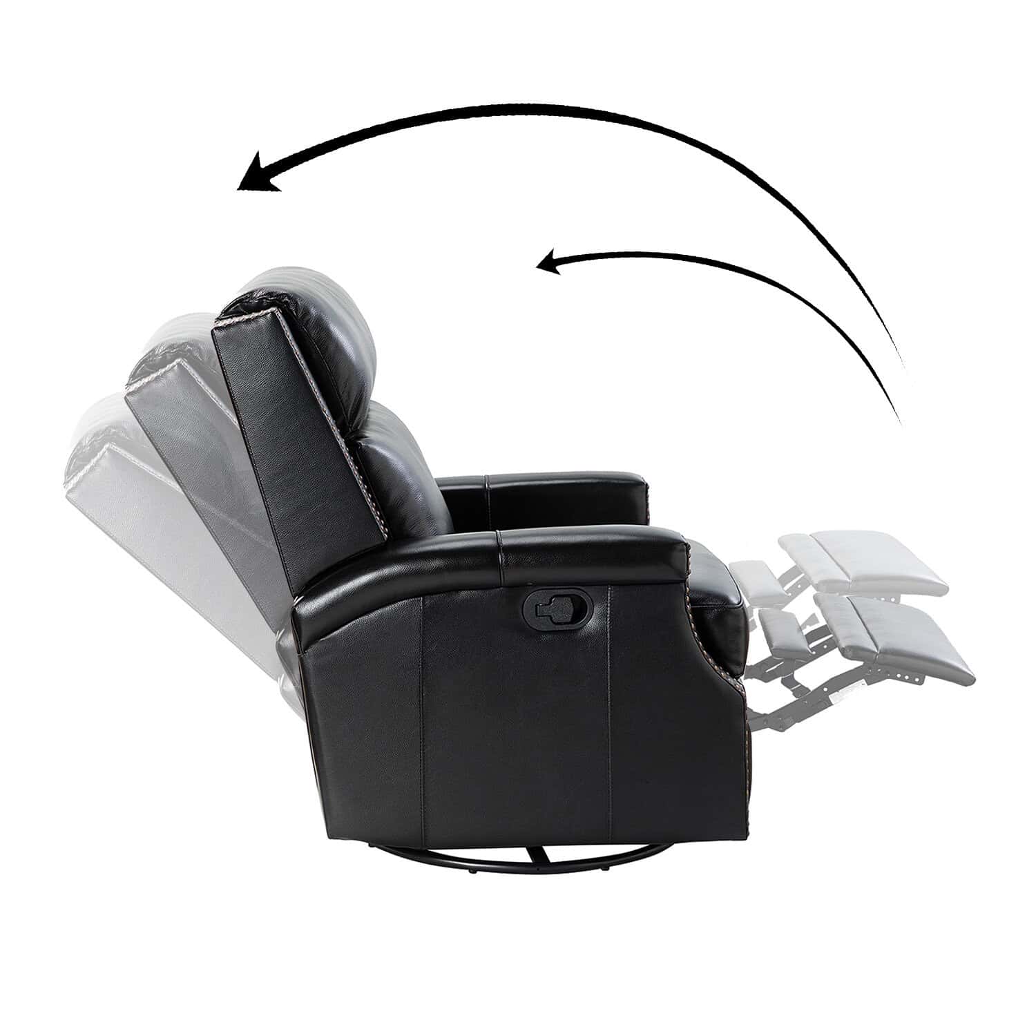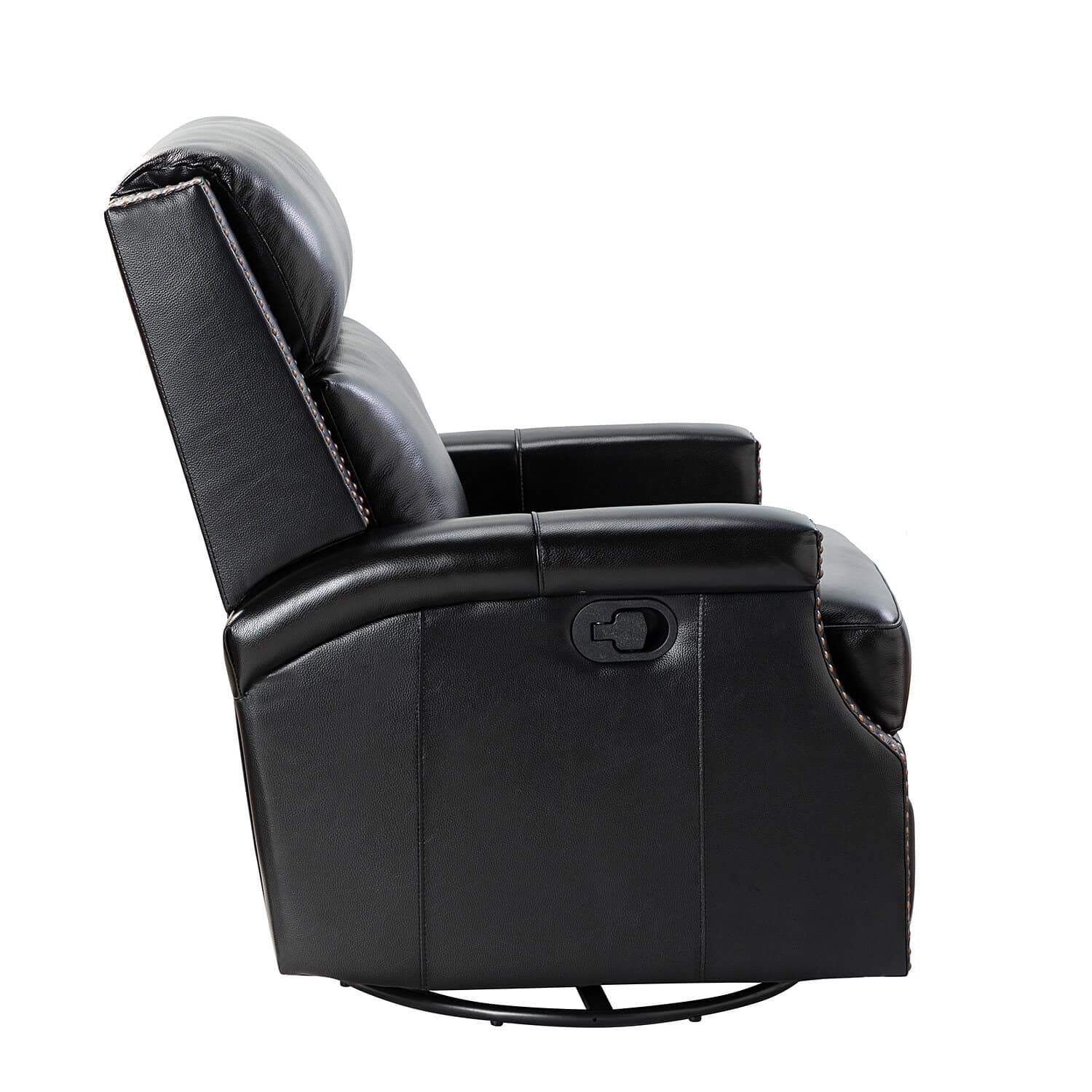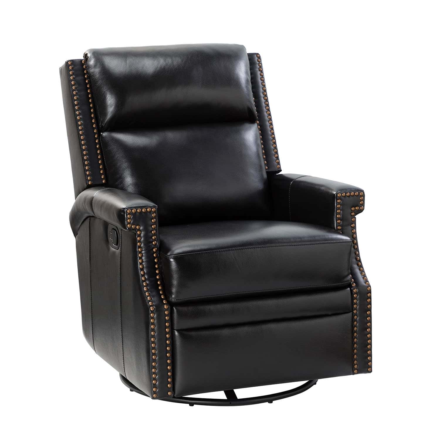 Louise Black Genuine Leather Nailhead Swivel Rocker Recliner