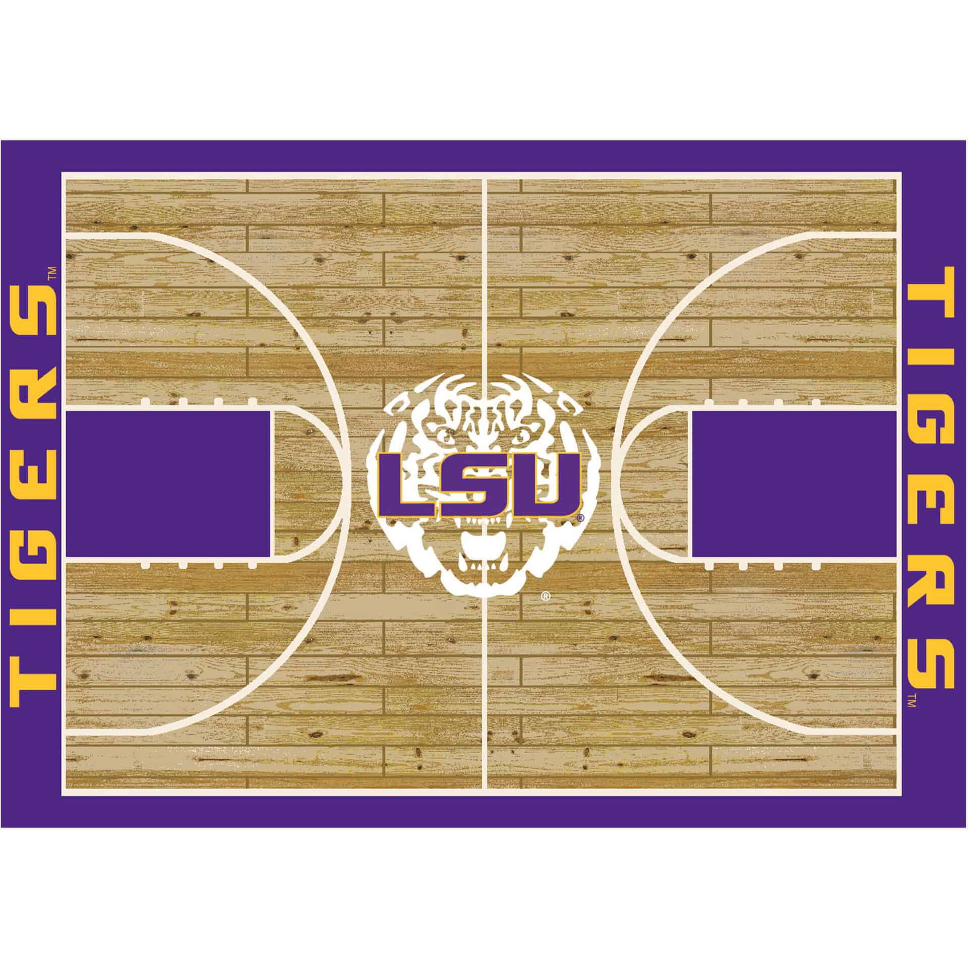 Show your team pride with the Courtside Louisiana State University 4×6 NCAA Basketball Court Rug. This officially licensed rug is designed to resemble a basketball court, perfect for adding a touch of spirited decor to your man cave, game room, or living room. Made in the USA with premium Milliken Certified WearOn® nylon, this rug is both durable and fade resistant. It also protects against stains and soil with Stainsmart® chemistry. The Endura-Loc™ High Performance Backing ensures the rug lies flat, while the serged edges provide a quality finish. Plus, it comes with a 2 Year Warranty against manufacturer’s defects. The rug dimensions are 4 x 6 x .5″ and it weighs 9 lbs.