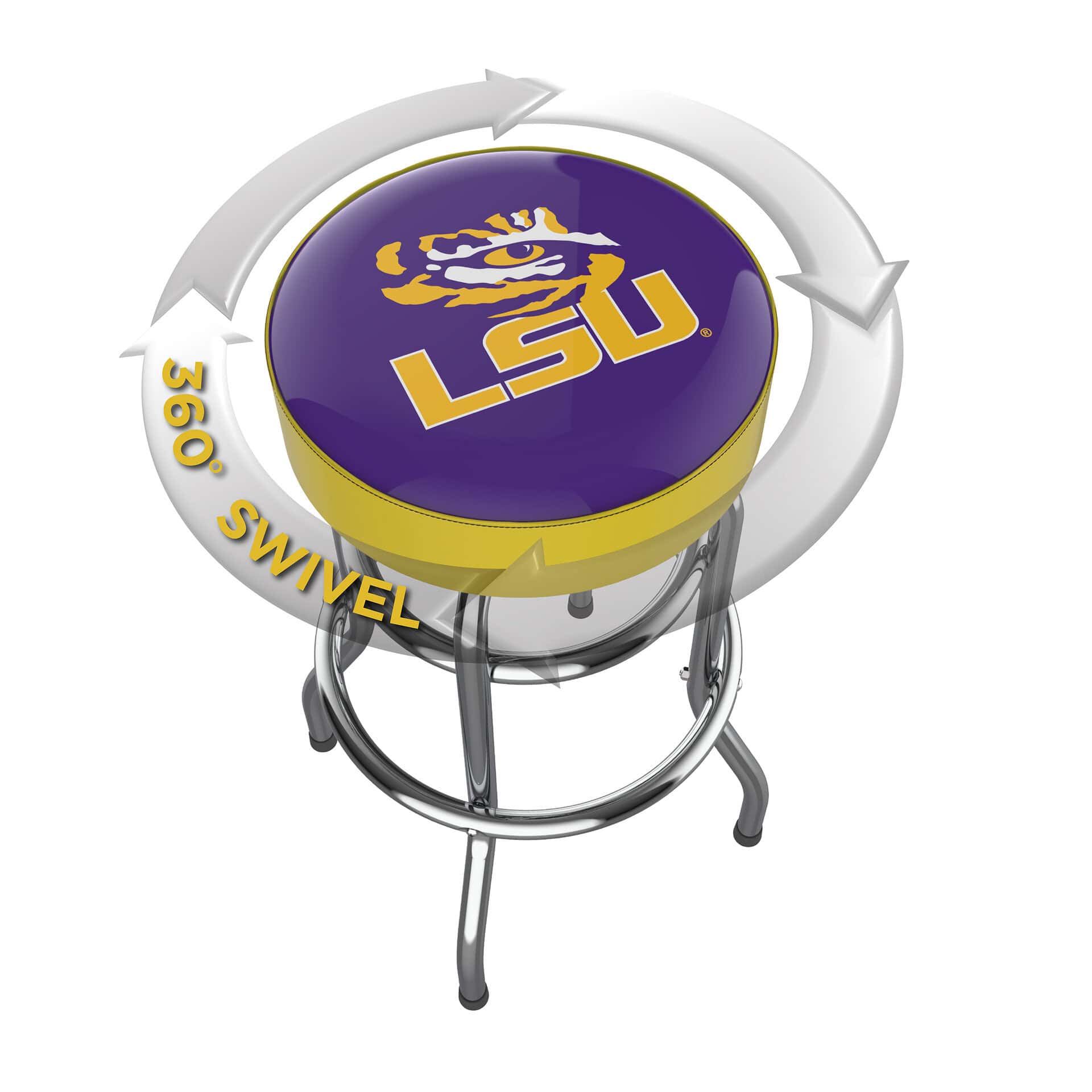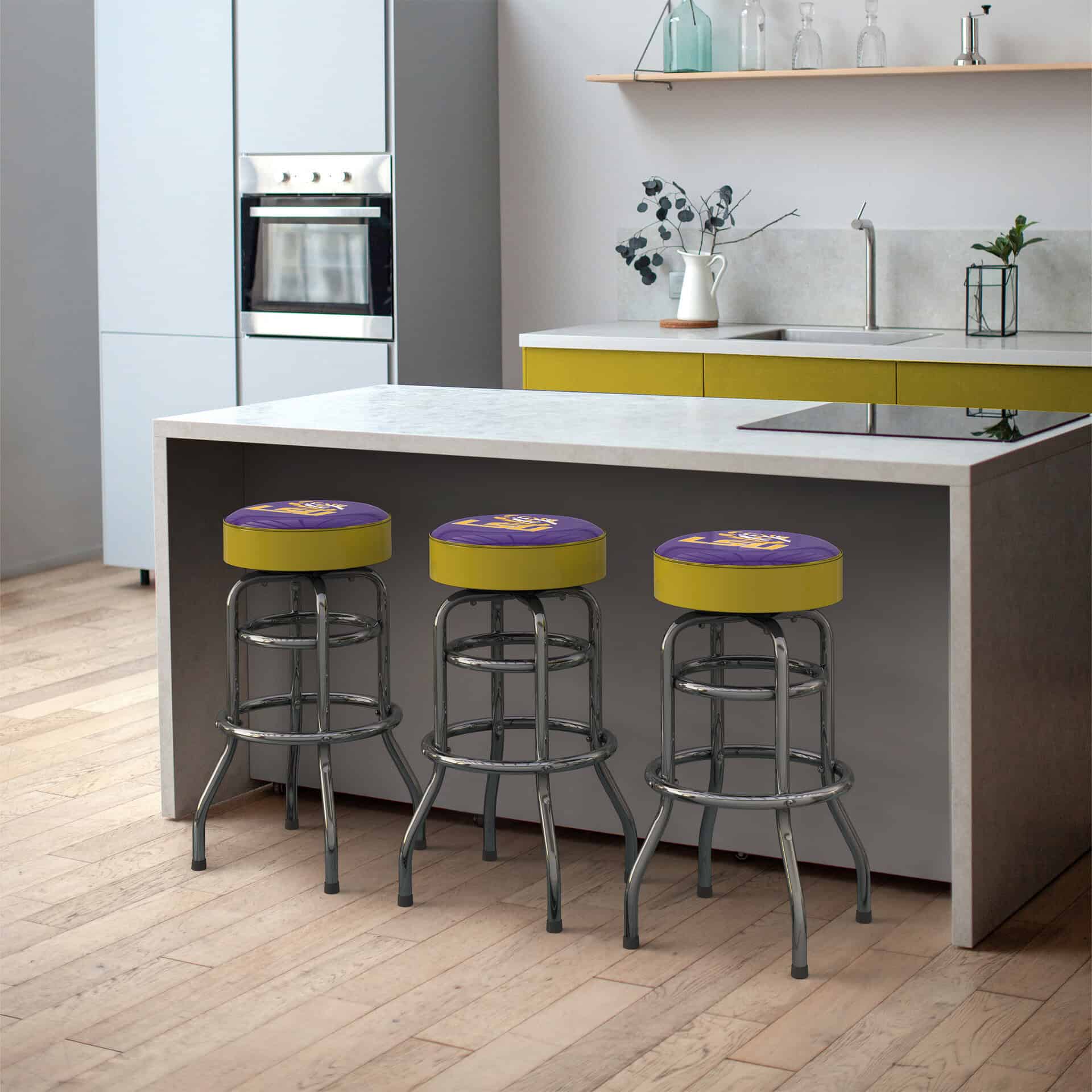 Elevate your home bar or fan cave with the Louisiana State University Chrome Bar Stool. This meticulously crafted barstool combines robust construction with iconic team colors and logos, creating a sophisticated and spirited addition to any setting. Enjoy years of reliable use with its commercial-grade build and scratch-resistant design. Showcase your team pride with enduring style and comfort.