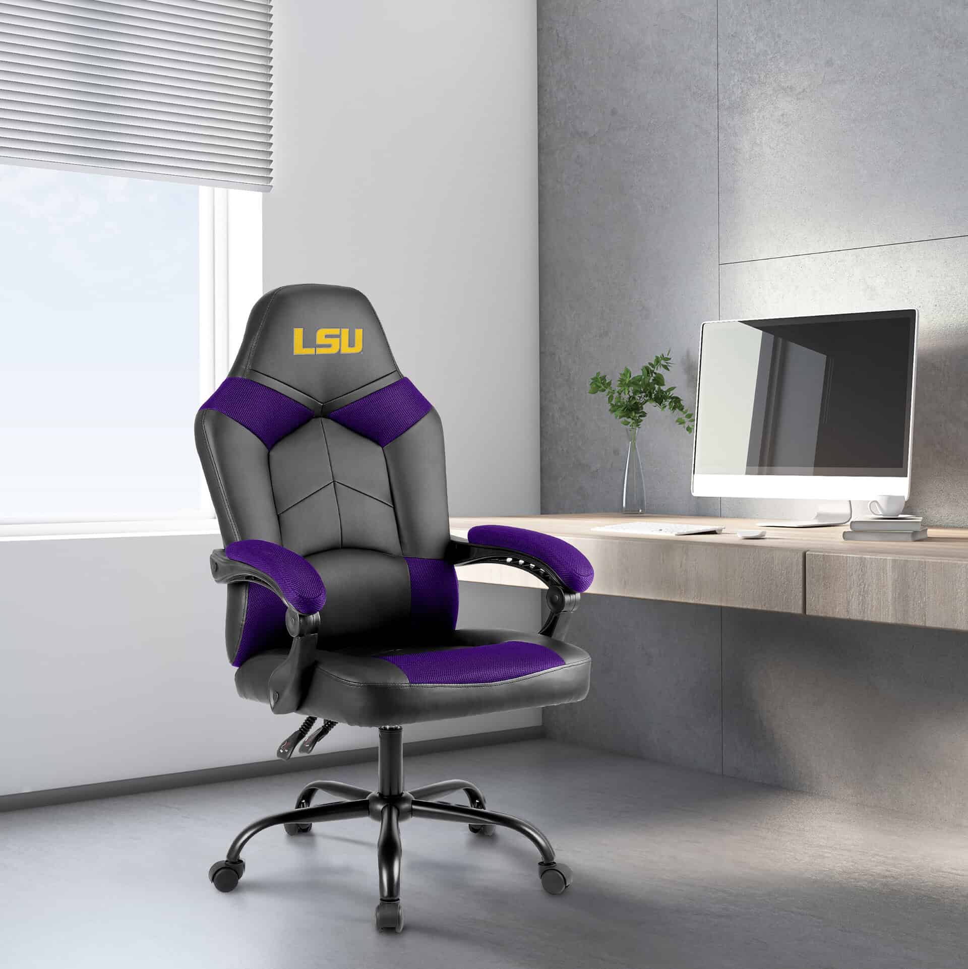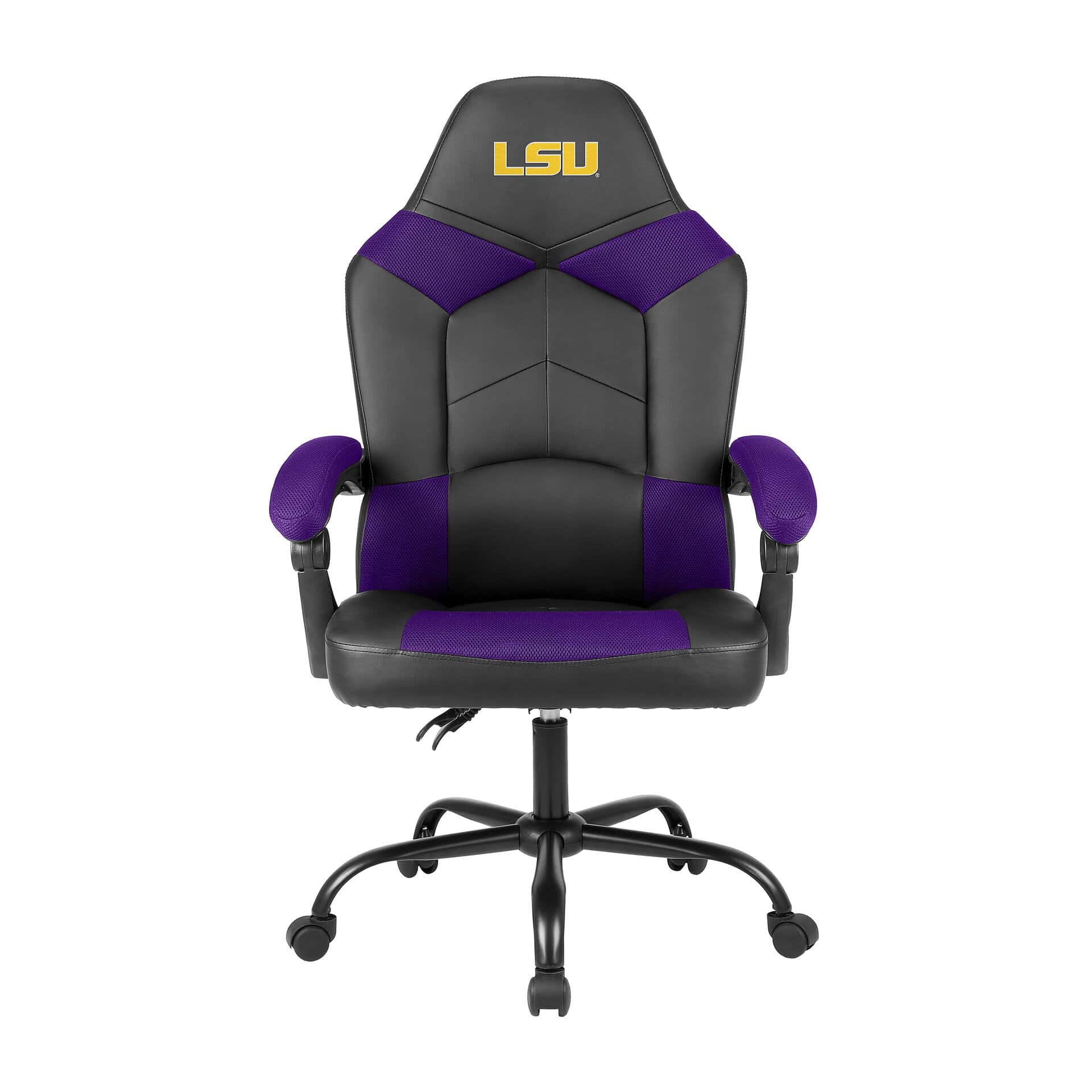 Game in comfort or work in style with the Oversized Office Chair! This chair features an oversized seat and adjustable back height, providing the support you need for those long hours. A unique storage pouch on the back keeps your iPad, controller, and headphones within easy reach. Show off your team pride with colorful team designs and embroidered logos. Easy to assemble, this chair is ready to go when you are.