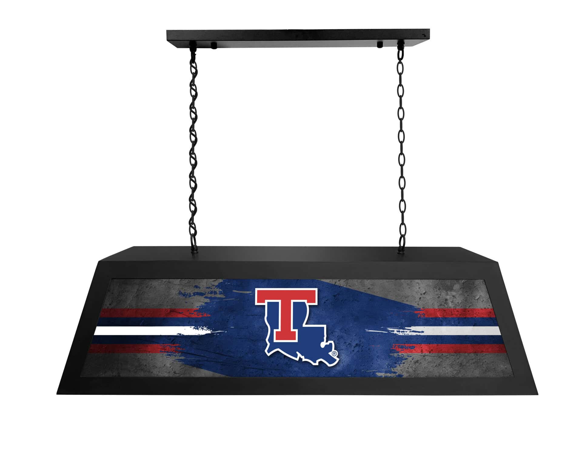 Enhance your game room or bar with the Louisiana Tech University Long Box Billiard Light. This suspended light fixture features a metal frame construction and a bright, backlit design, making it ideal for billiard tables, game tables, and bars. Enjoy superior vibrancy with digitally printed graphics on thick, shatter-resistant acrylic panels.