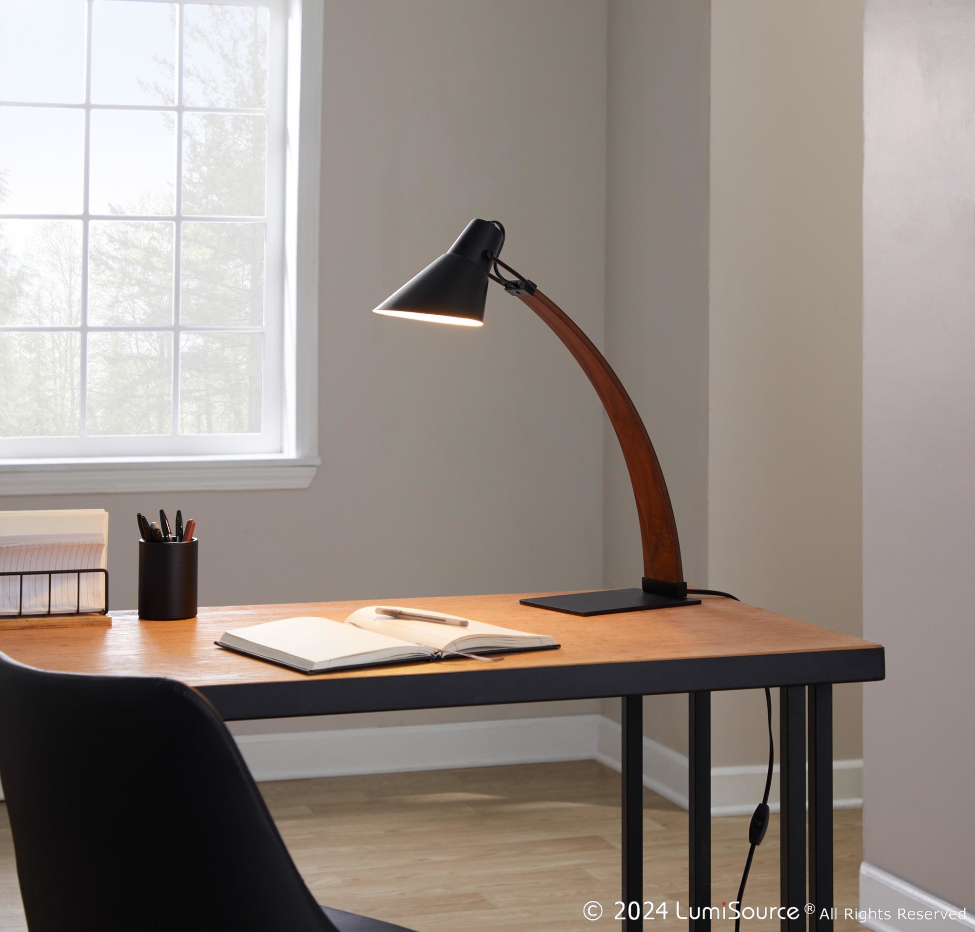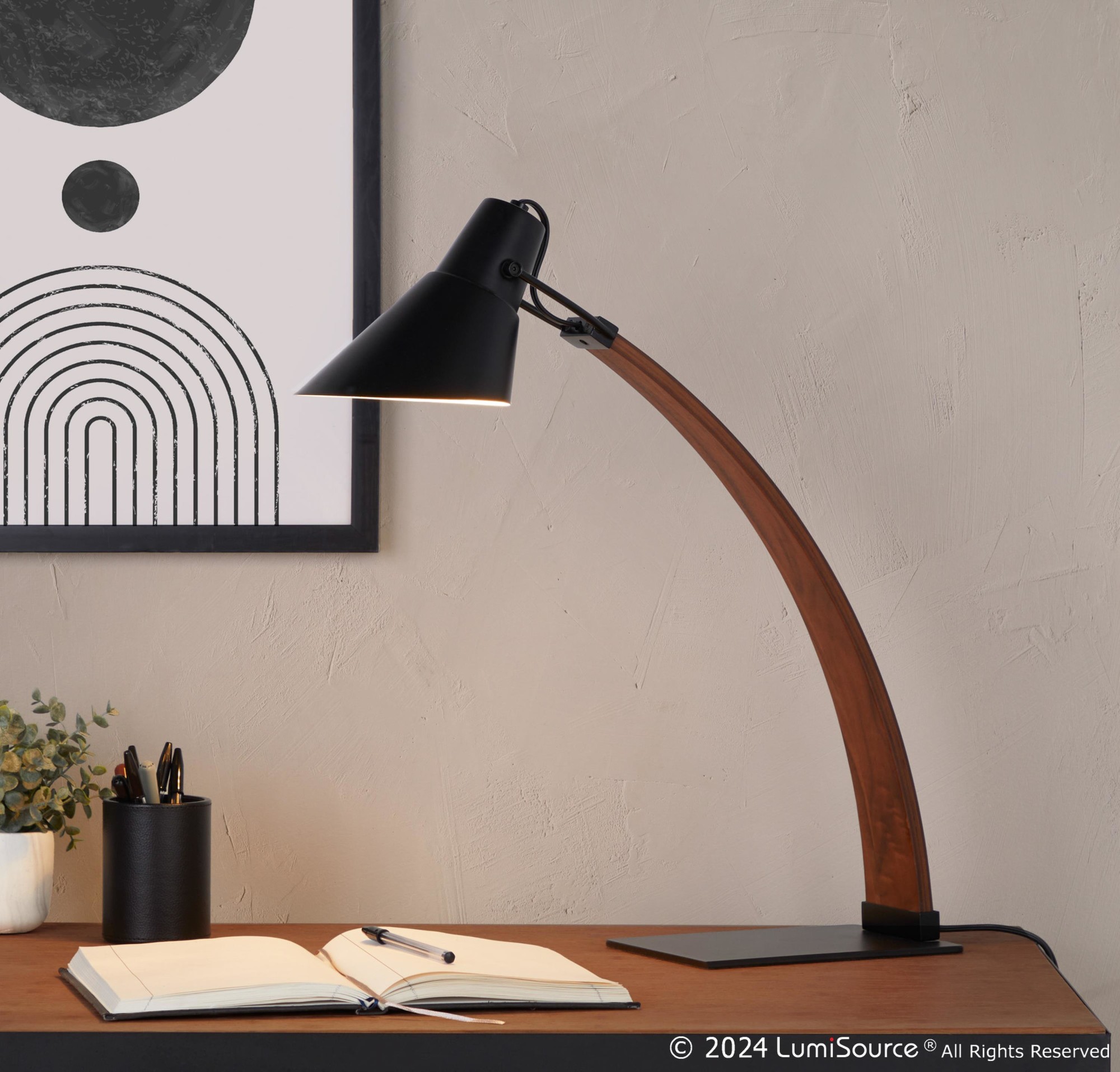 Light up your workspace with the Noah Desk Lamp! This lamp blends retro vibes with modern appeal, making it the perfect addition to your desk or office. The arched wood neck and stylish metal shade create a sleek look, while the adjustable shade lets you direct the light exactly where you need it. Get ready to work in style!