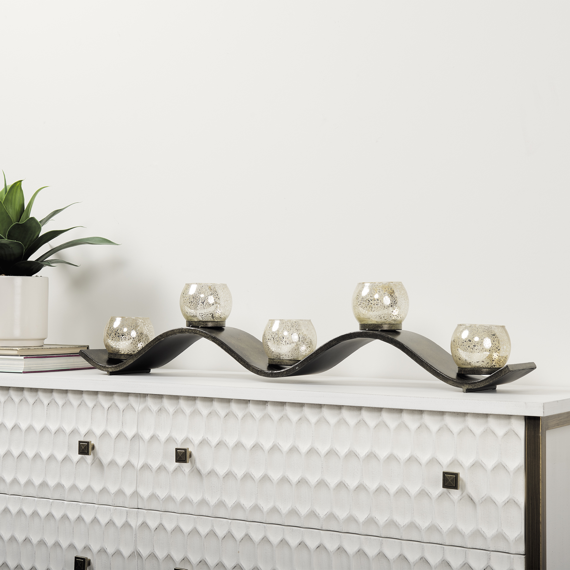 Crafted from quality metal and glass, this candle holder is designed to stand the test of time. Its unique design features clean lines and subtle curves, making it a versatile addition to a variety of décor styles.
