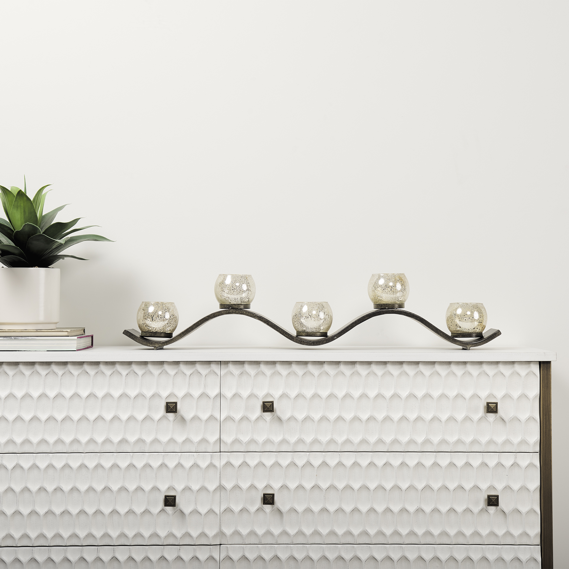 - Illumination: Holds five votive candles (not included).
