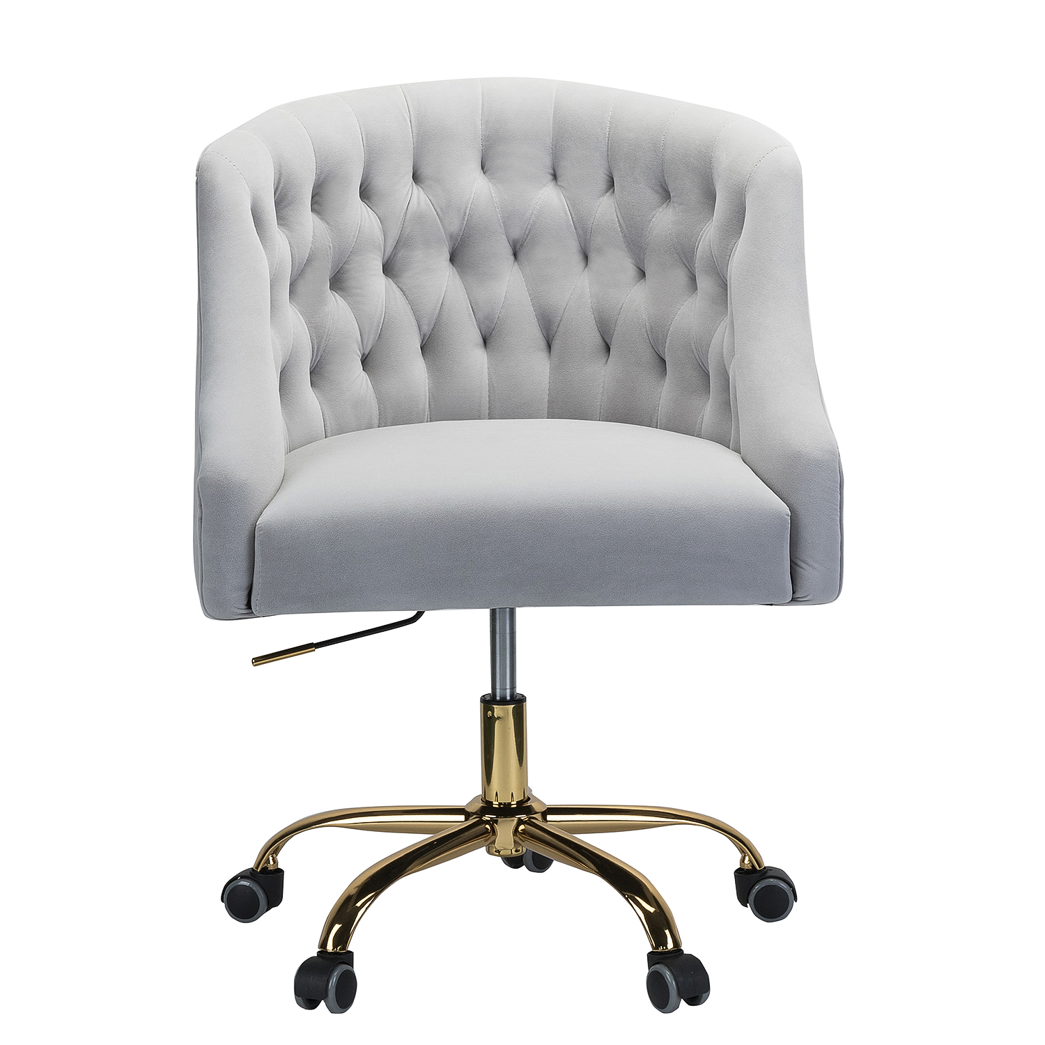 The Lydia Grey Velvet Tufted Adjustable Swivel Task Chair is a versatile seating solution perfect for makeup vanities, home offices, study areas, or any small space. This chair combines comfort and style to meet all your requirements.