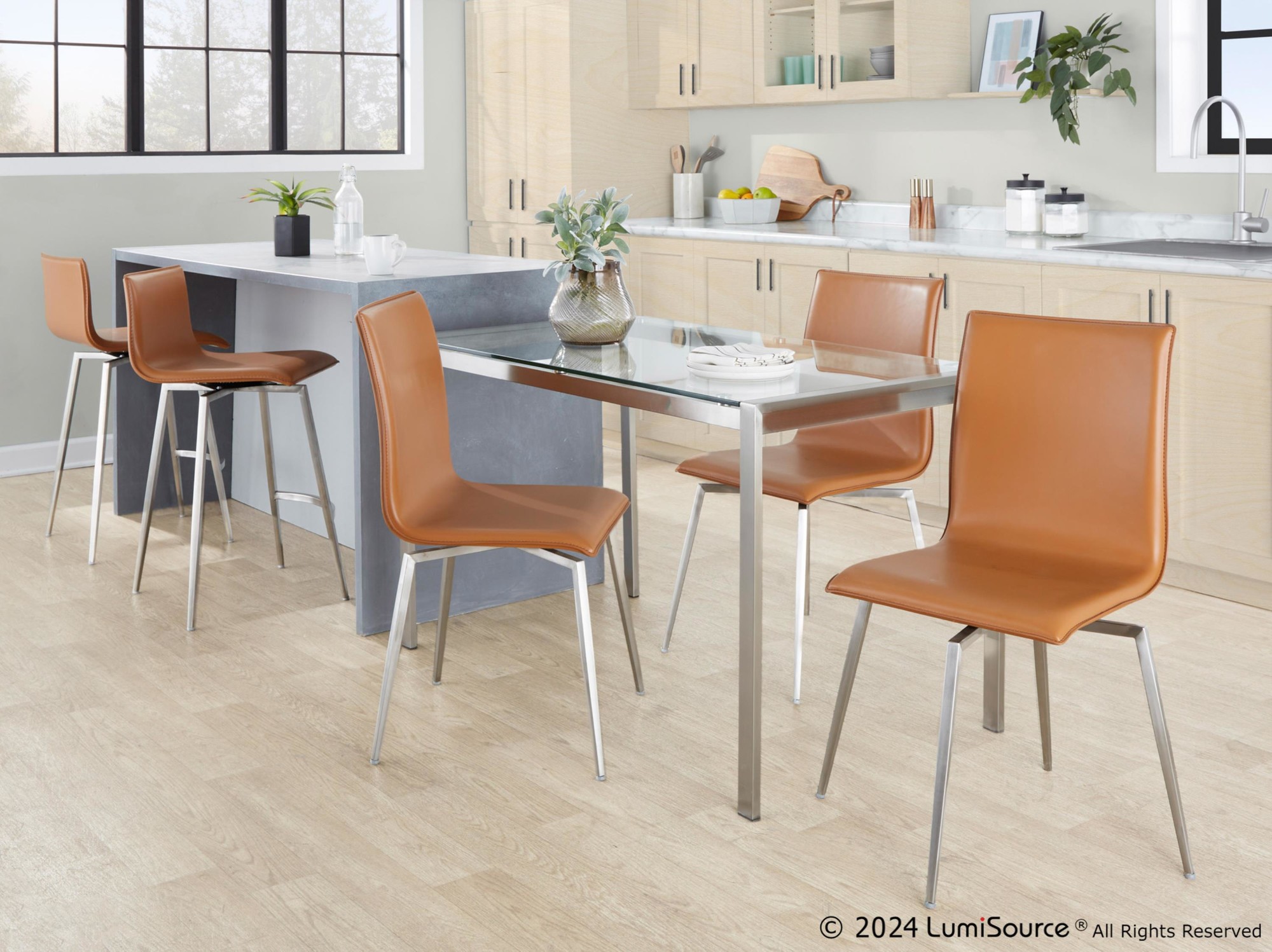 - Material: PU Leather, Foam, Brushed Stainless Steel