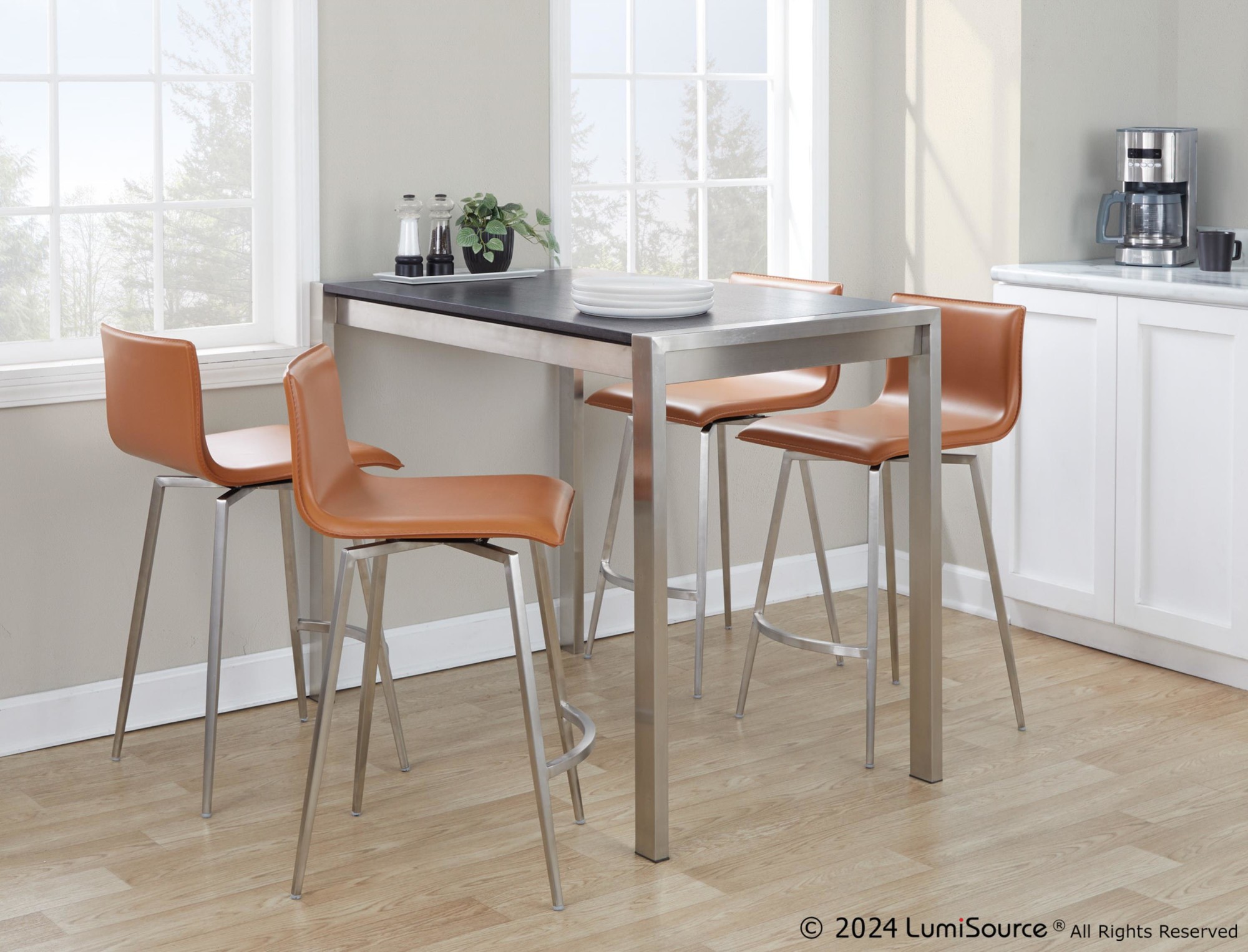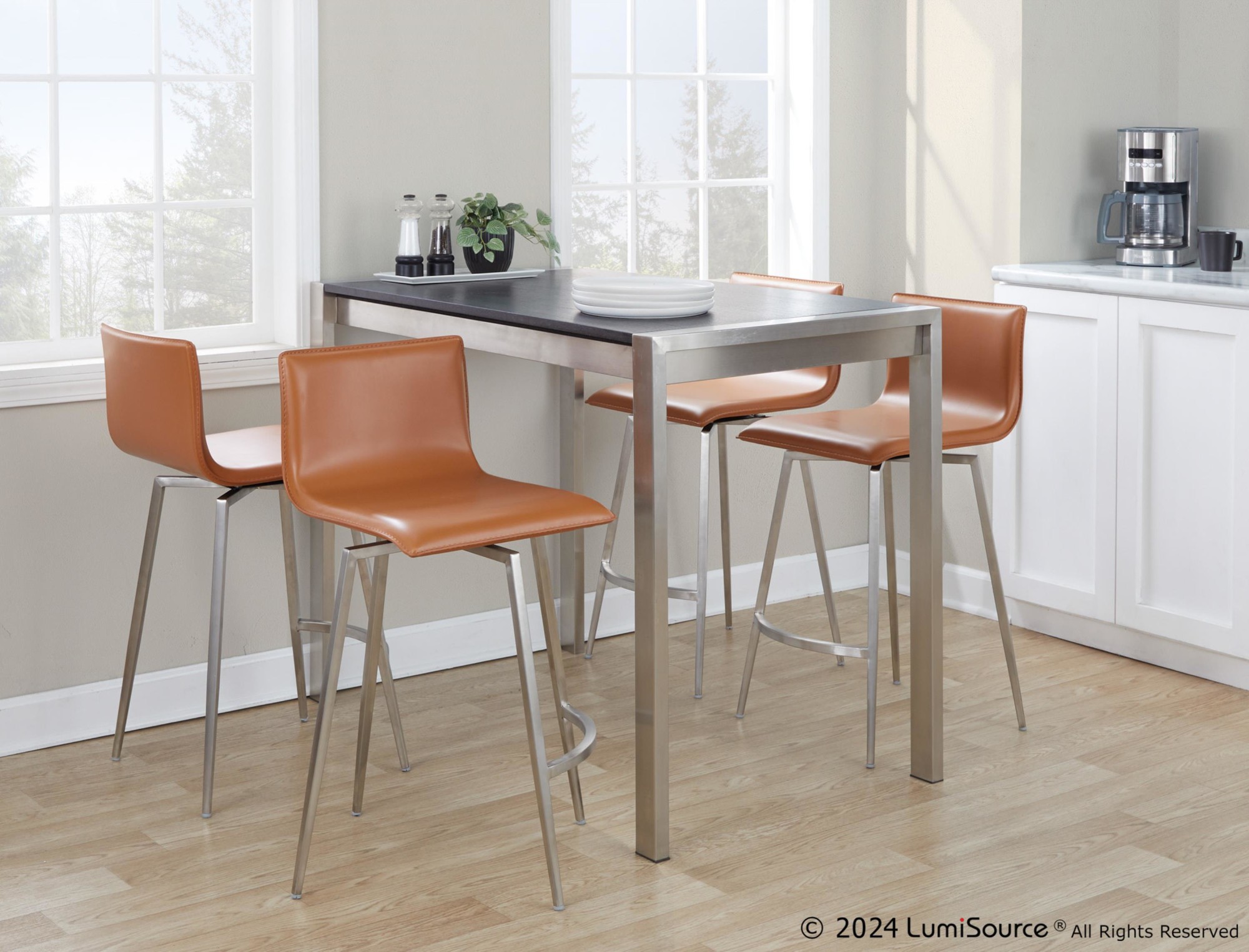Enjoy the contemporary styling and fixed counter height, perfect for enjoying drinks or casual meals. Each stool has a memory swivel function and is upholstered in stylish faux leather. The sturdy metal base includes a built-in footrest for added comfort.