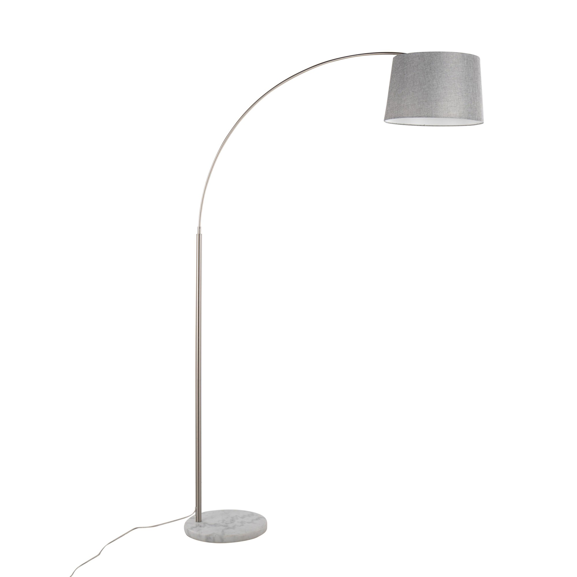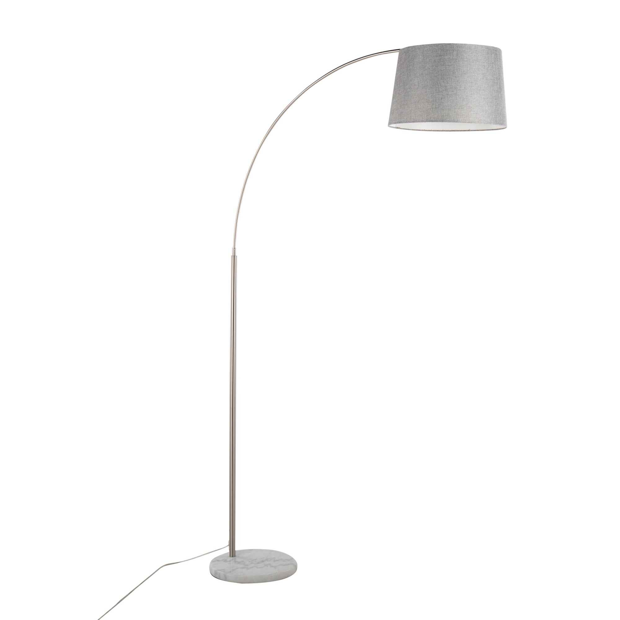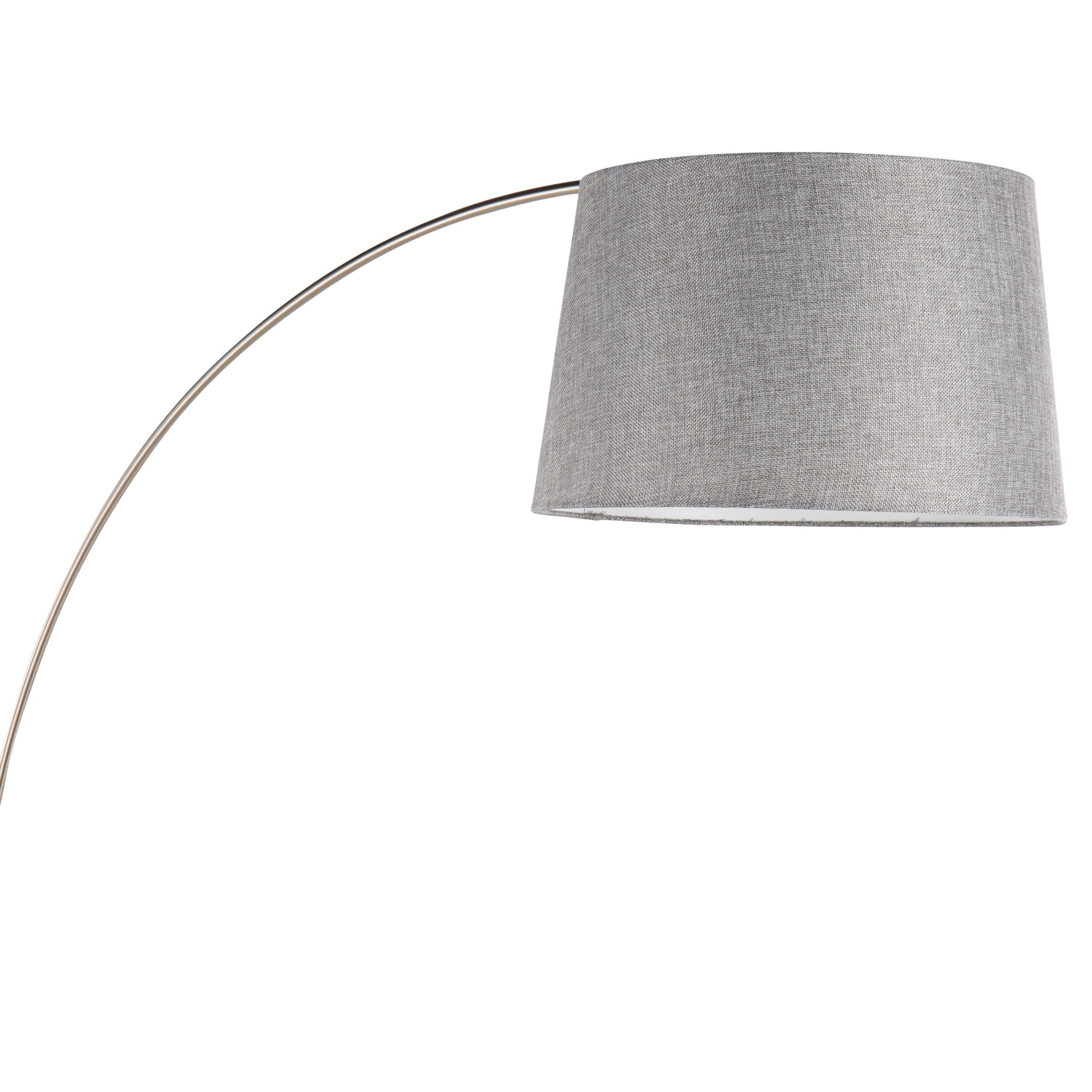 Imagine the warm, inviting glow of the grey linen shade, casting a soft light across your space. The sleek nickel finish complements the luxurious white marble base, providing a stable and stylish foundation. The dramatic arc ensures the light is positioned perfectly, making it ideal for reading or ambient lighting. An in-line foot switch offers convenient on/off functionality.