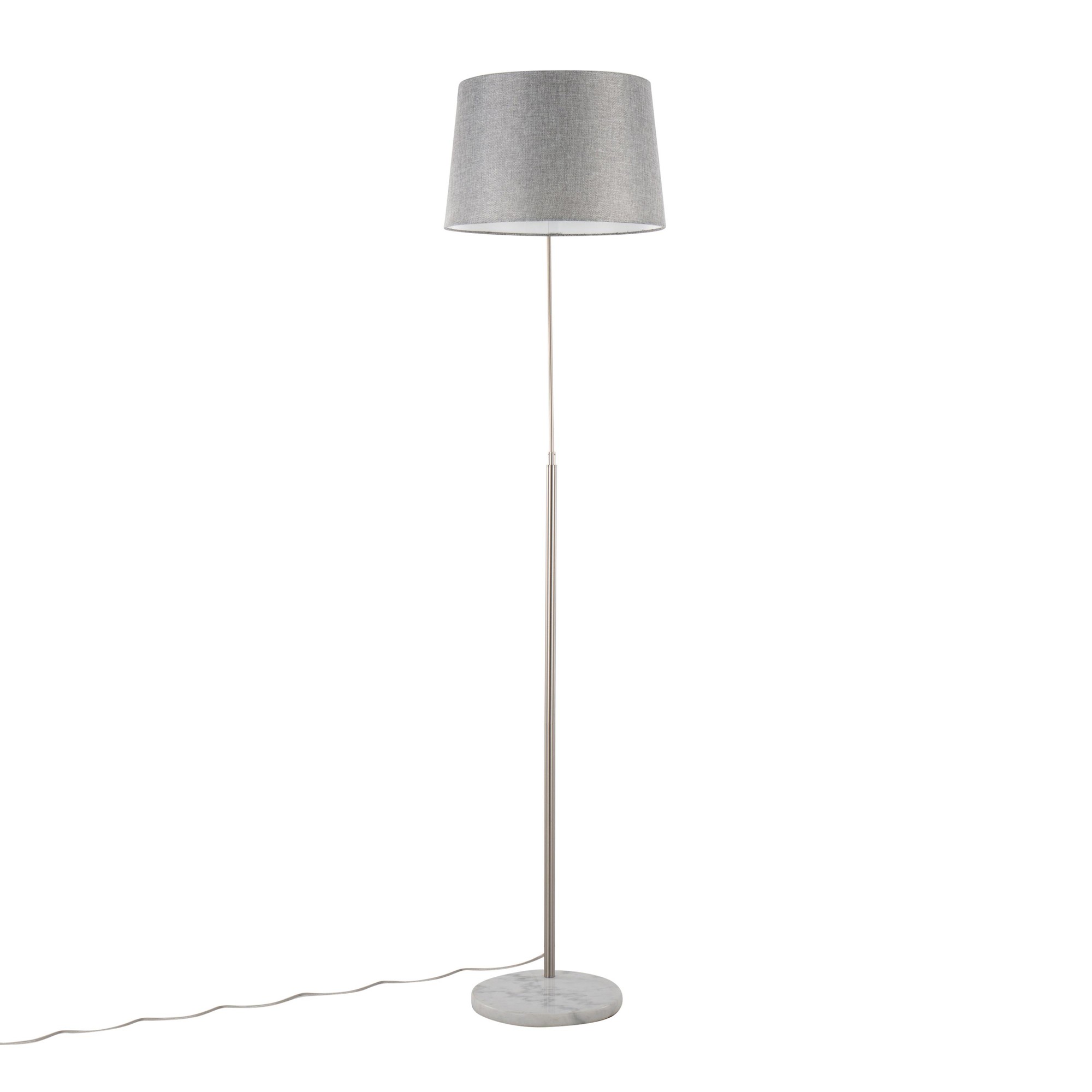 March Contemporary Floor Lamp in Marble, Nickel, Grey Linen Shade