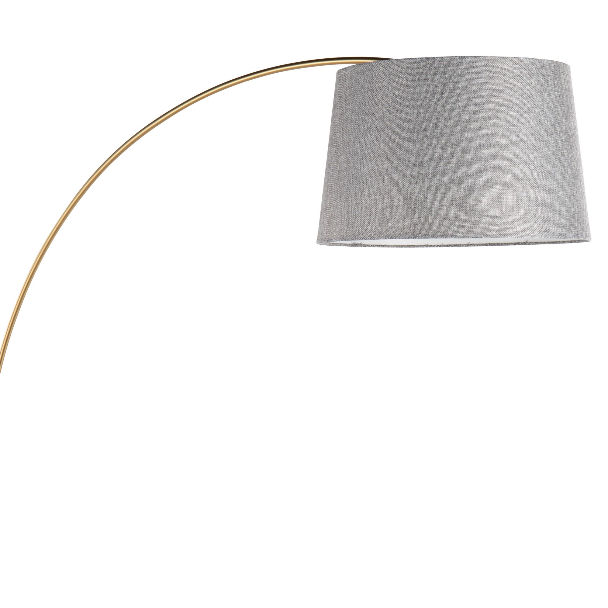 Elevate your man cave with the March Floor Lamp. This striking piece features a dramatic metal arc and a modern grey linen drum shade, creating a sophisticated ambiance. The white marble base adds a touch of elegance, while the antique brass finish provides a warm, contemporary feel. This lamp features an in-line foot switch for easy operation. Dimensions: 50.5″L x 13.75″W x 74″H. Requires one 60W bulb (not included). Assembly: Required. Material: Fabric, Metal, Marble.
