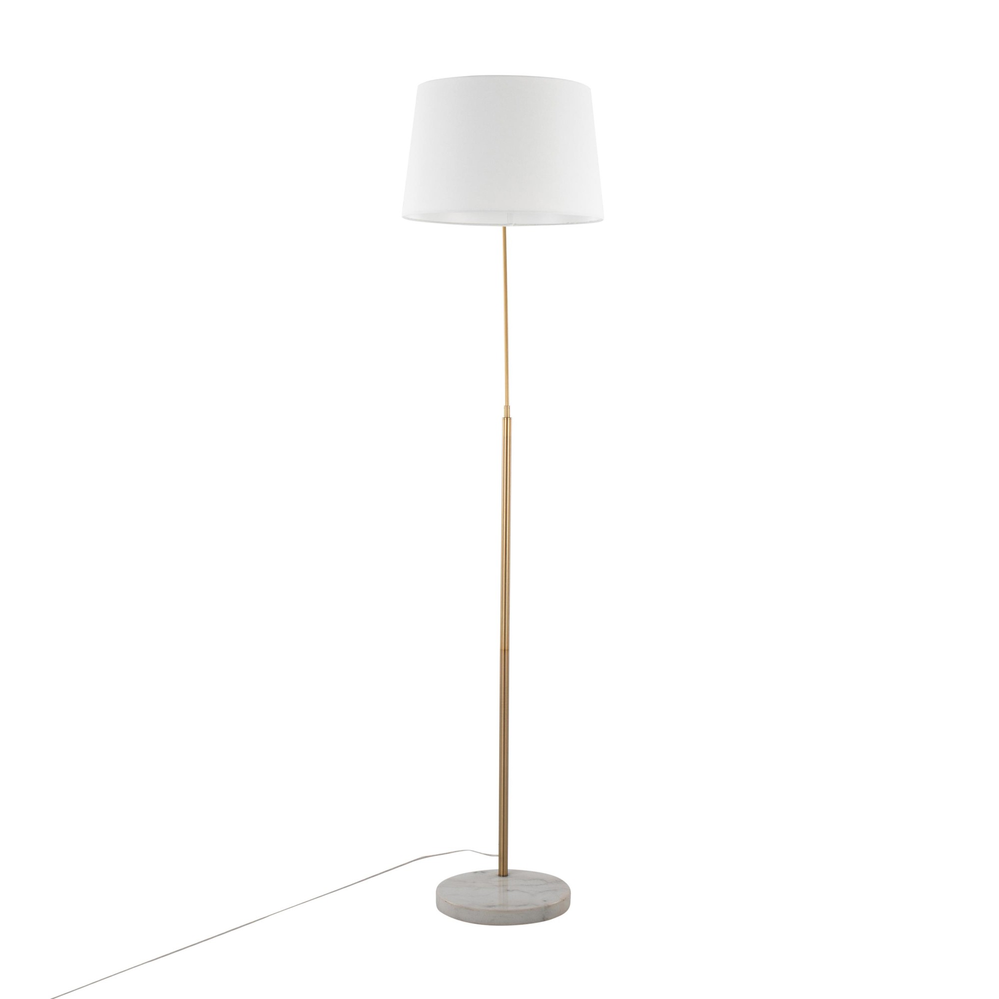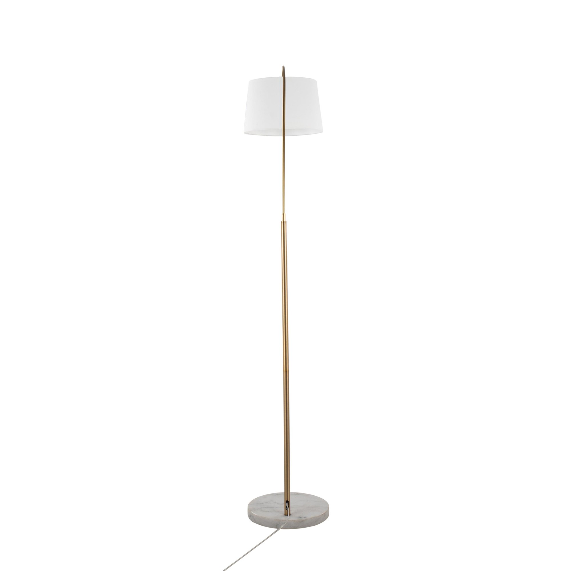March Contemporary Floor Lamp White Marble Antique Brass Linen Shade