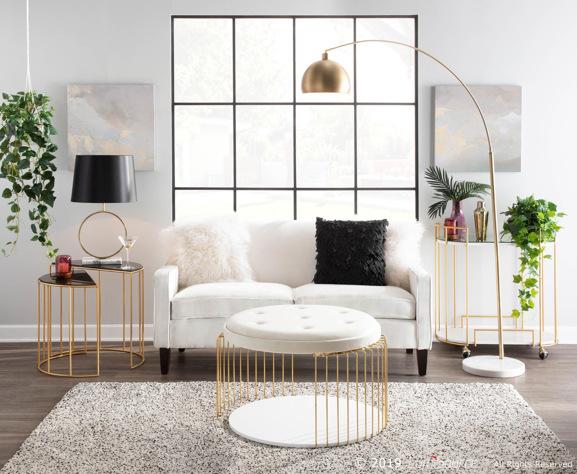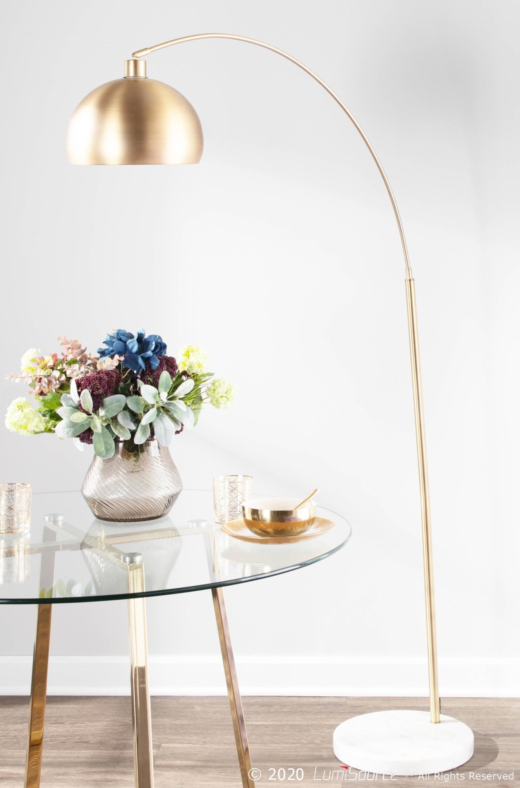 Light up any room with the contemporary flair of the March Floor Lamp. Featuring a dramatic gold arc, modern half-globe metal shade, and a marble base, this floor lamp creates a striking look for any living room or bedroom.