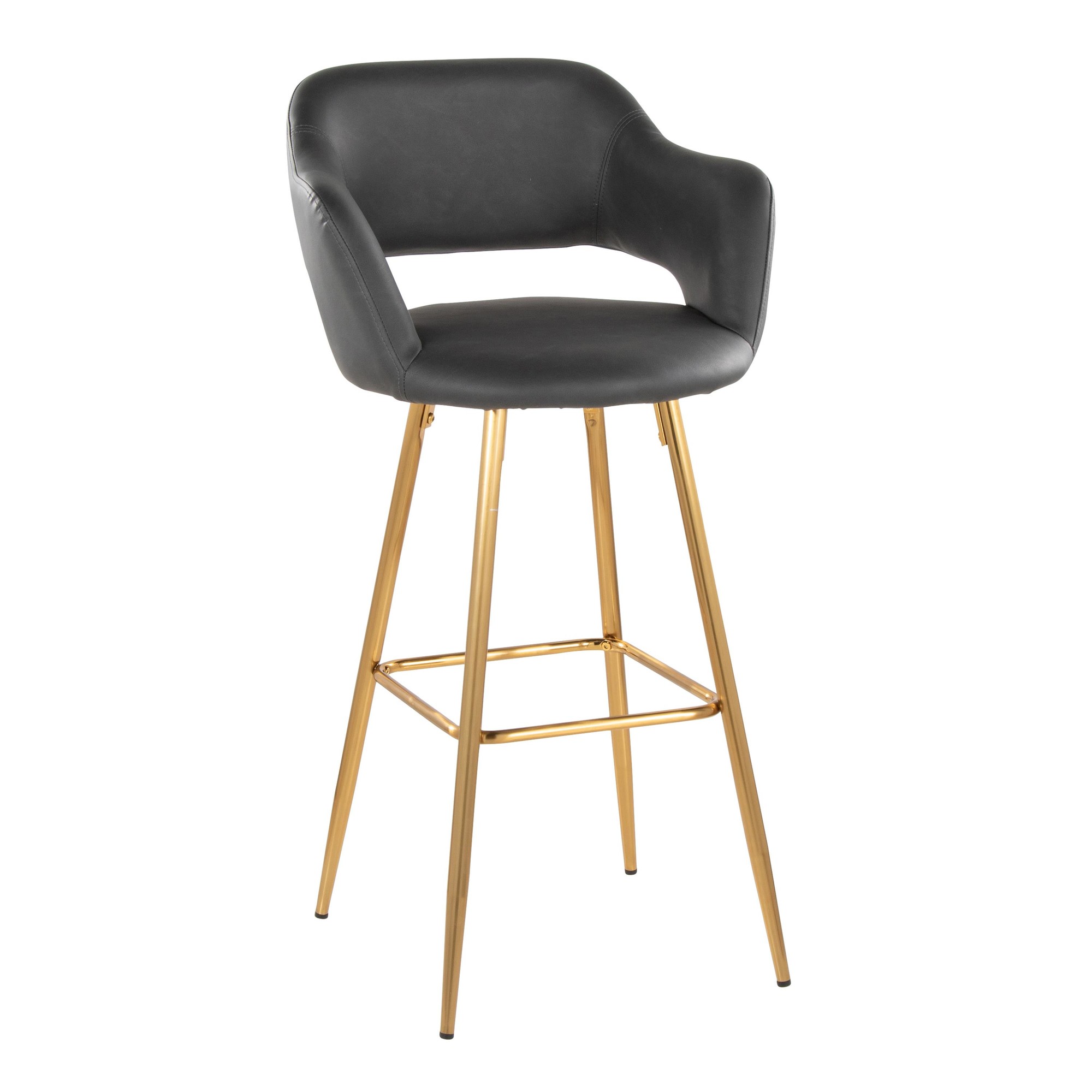 The Margarite Fixed-Height Barstool features a contemporary design that will enhance any space. The cut-out backrest is designed to provide ergonomic support, while the armrests and built-in footrest offer additional comfort. Available in a stylish color combination to suit your personal taste! This set includes two bar stools.