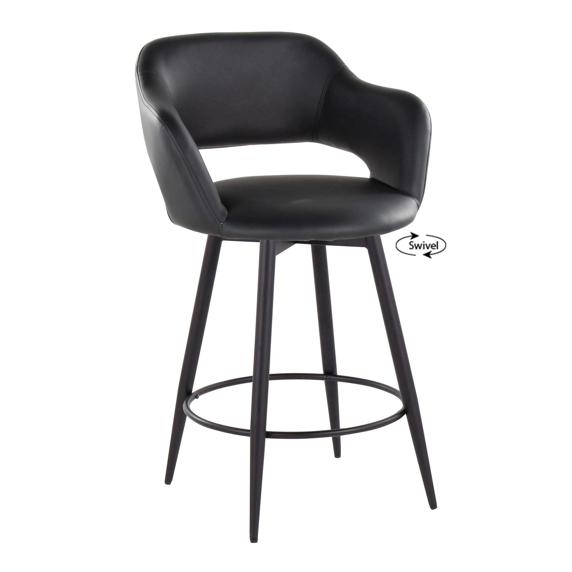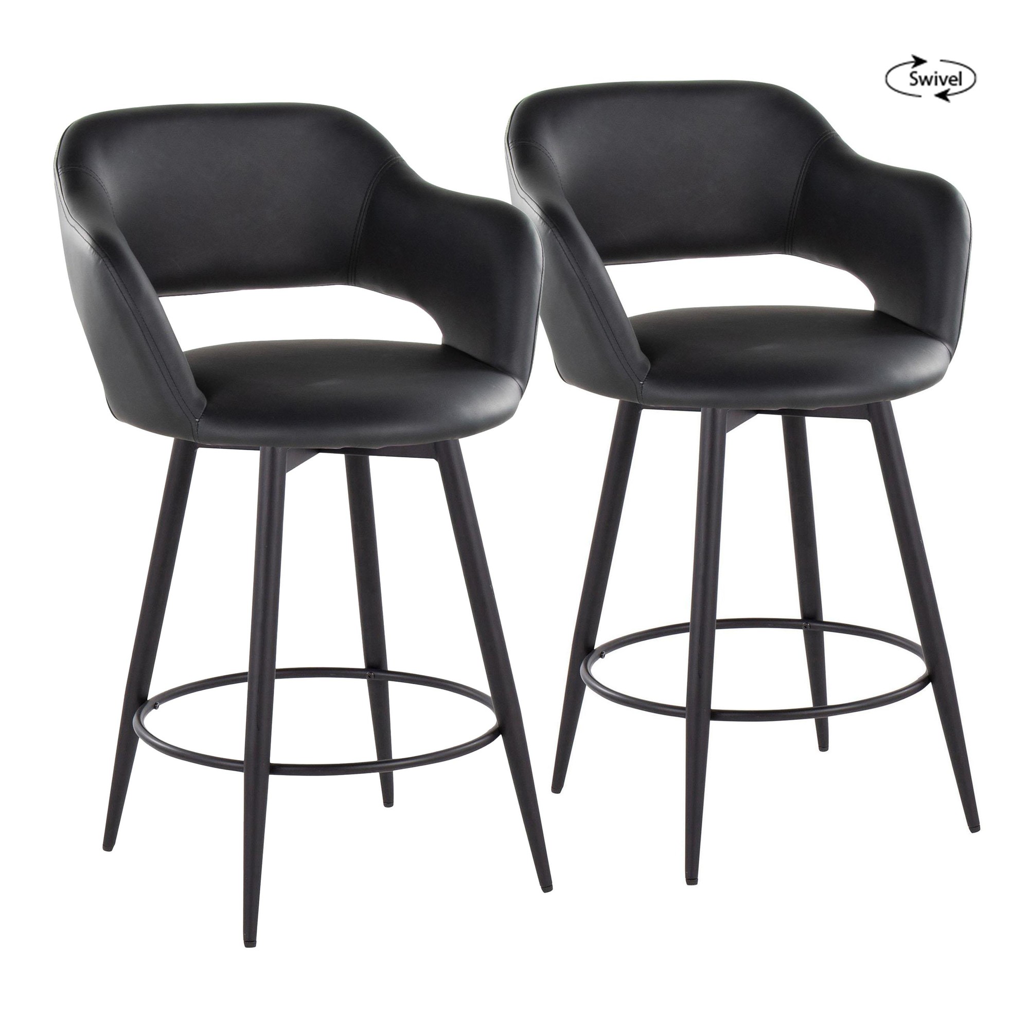 Margarite Black Faux Leather Swivel Contemporary 26-Inch Counter Stools (Set of 2)