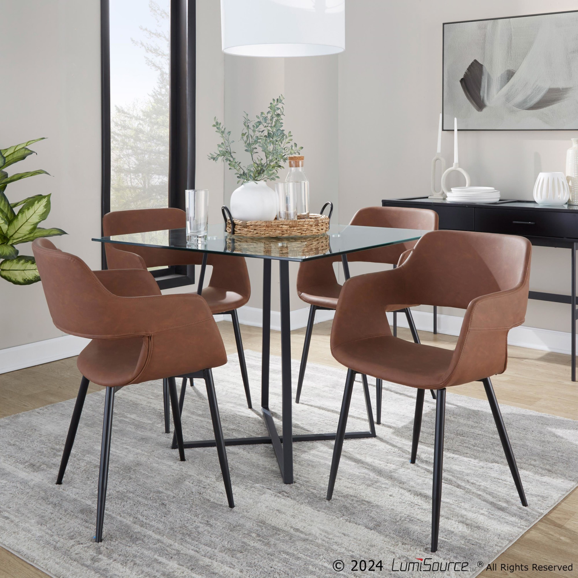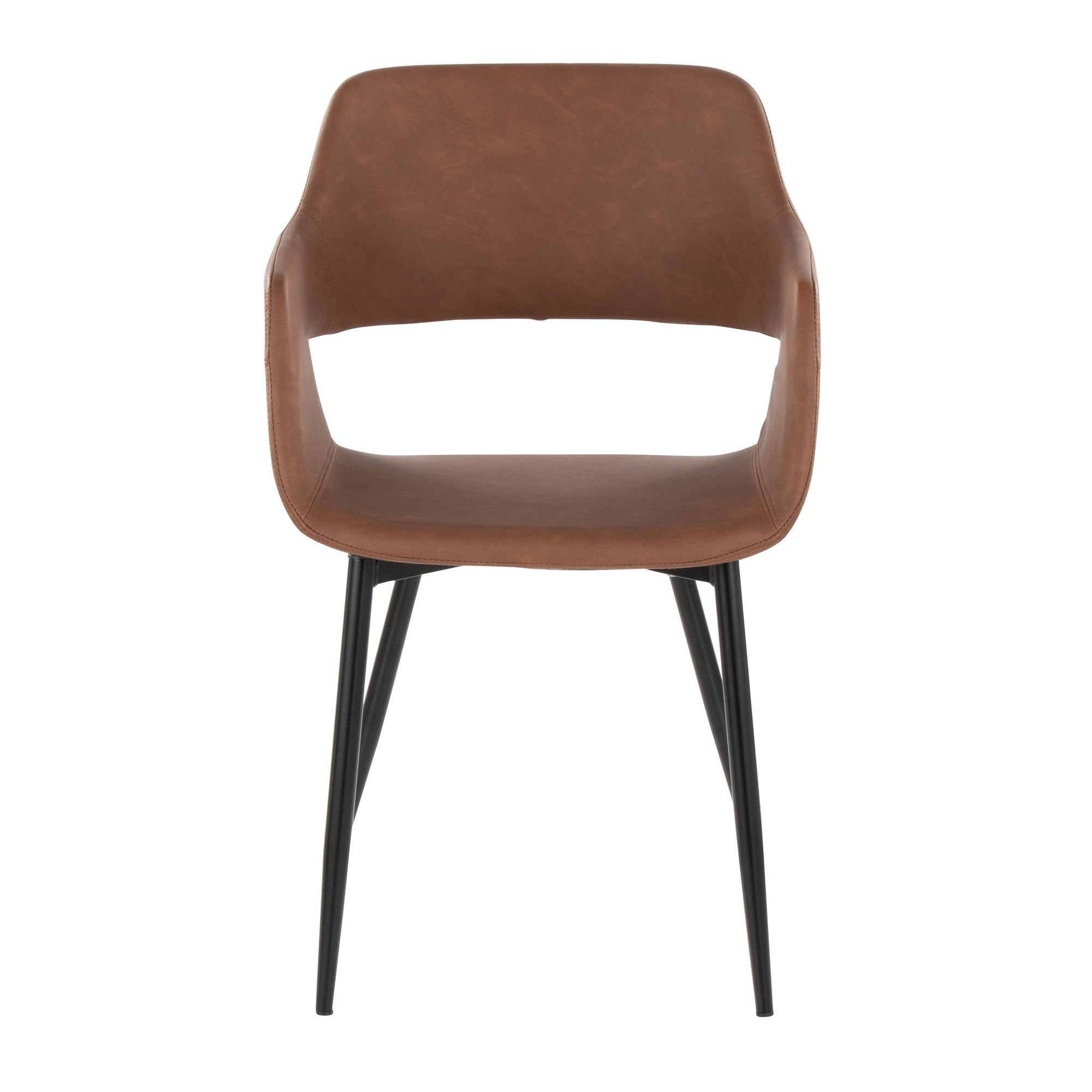 The Margarite Dining Chair pair offers contemporary style, perfect for elevating your dining space. These chairs feature a low backrest designed to ergonomically fit the body, providing both comfort and support. The sleek metal legs add a modern touch, while the faux leather upholstery ensures easy maintenance and lasting beauty.