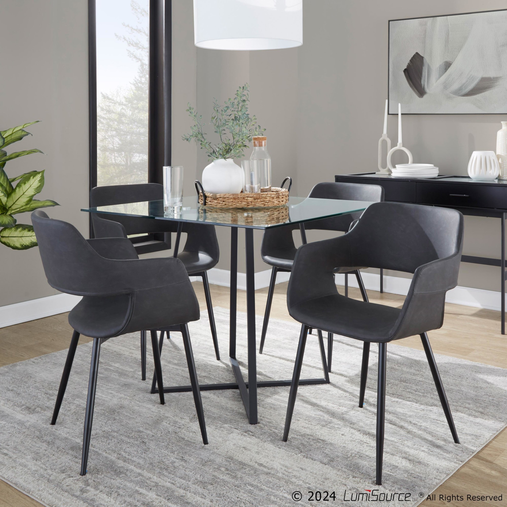 Margarite Black Metal Grey Faux Leather Contemporary Chairs (Set of 2)