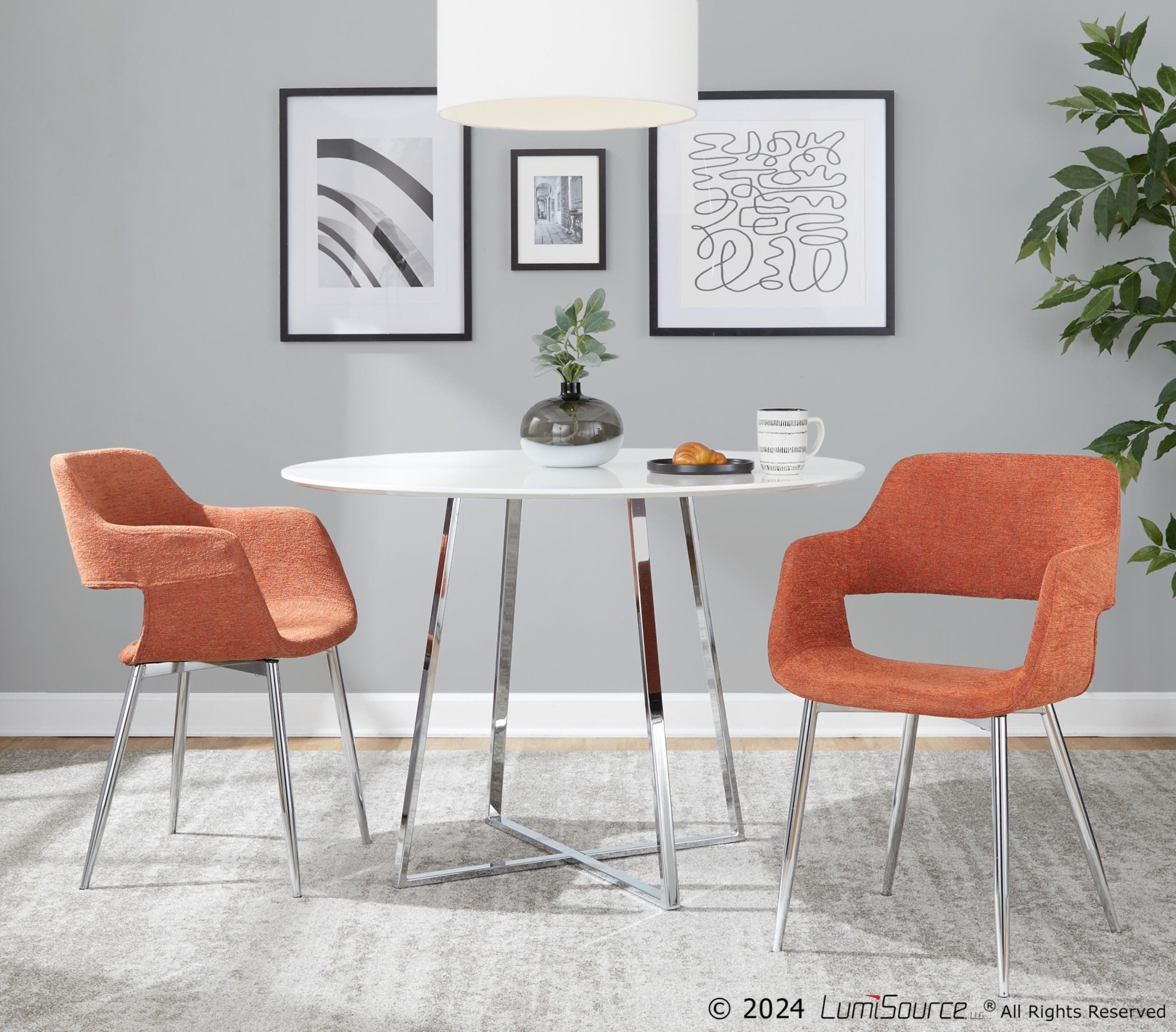 Add a touch of contemporary style to your dining space with the Margarite Dining Chairs! Inspired by contemporary design, these chairs feature a low backrest with a slight opening and sleek metal legs. The ergonomically designed seat and armrests provide additional comfort, making these chairs perfect for long dinners and gatherings. Upholstered in a stylish fabric, the Margarite Dining Chairs will look great in any dining area or living room.
