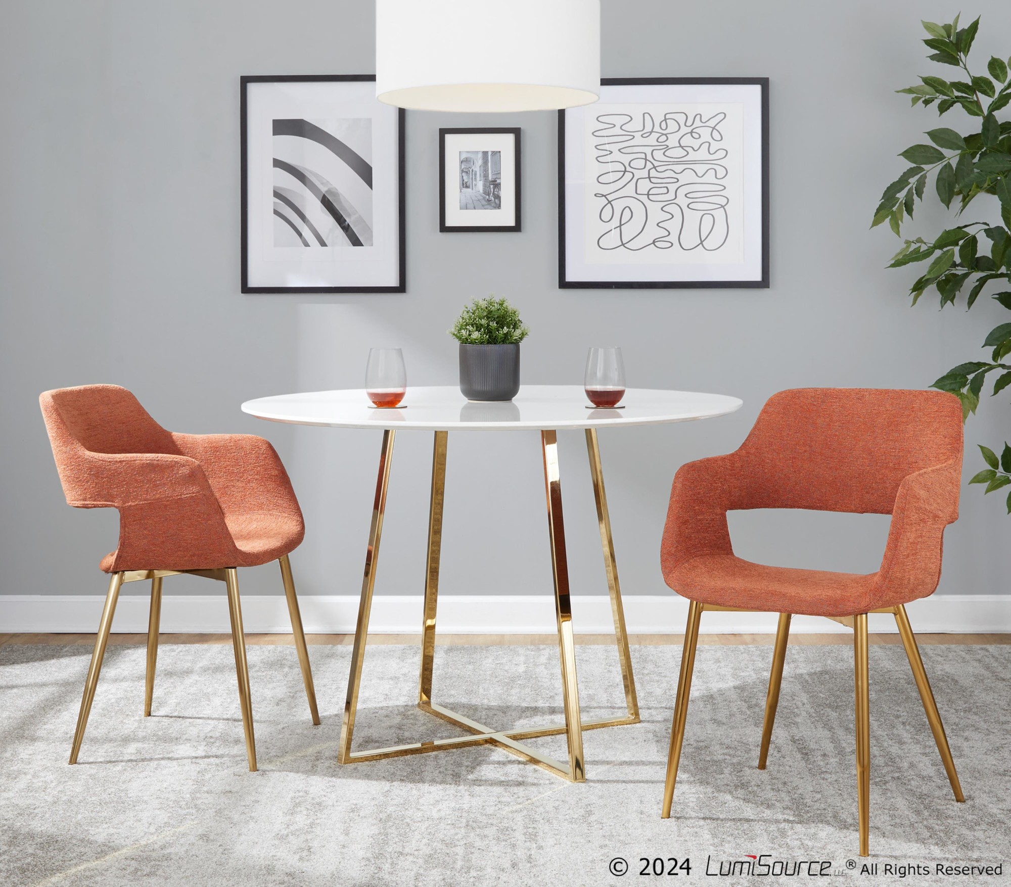 Elevate your dining experience with the Margarite Dining Chairs! Inspired by contemporary design, these chairs are more than just a place to sit—they’re a statement. The Margarite Dining Chair features a low backrest with a slight opening, ergonomically designed to fit your body, armrests for additional comfort and sleek metal legs. Upholstered in a variety of colors, the Margarite Dining Chair will look great in any dining area or living room.