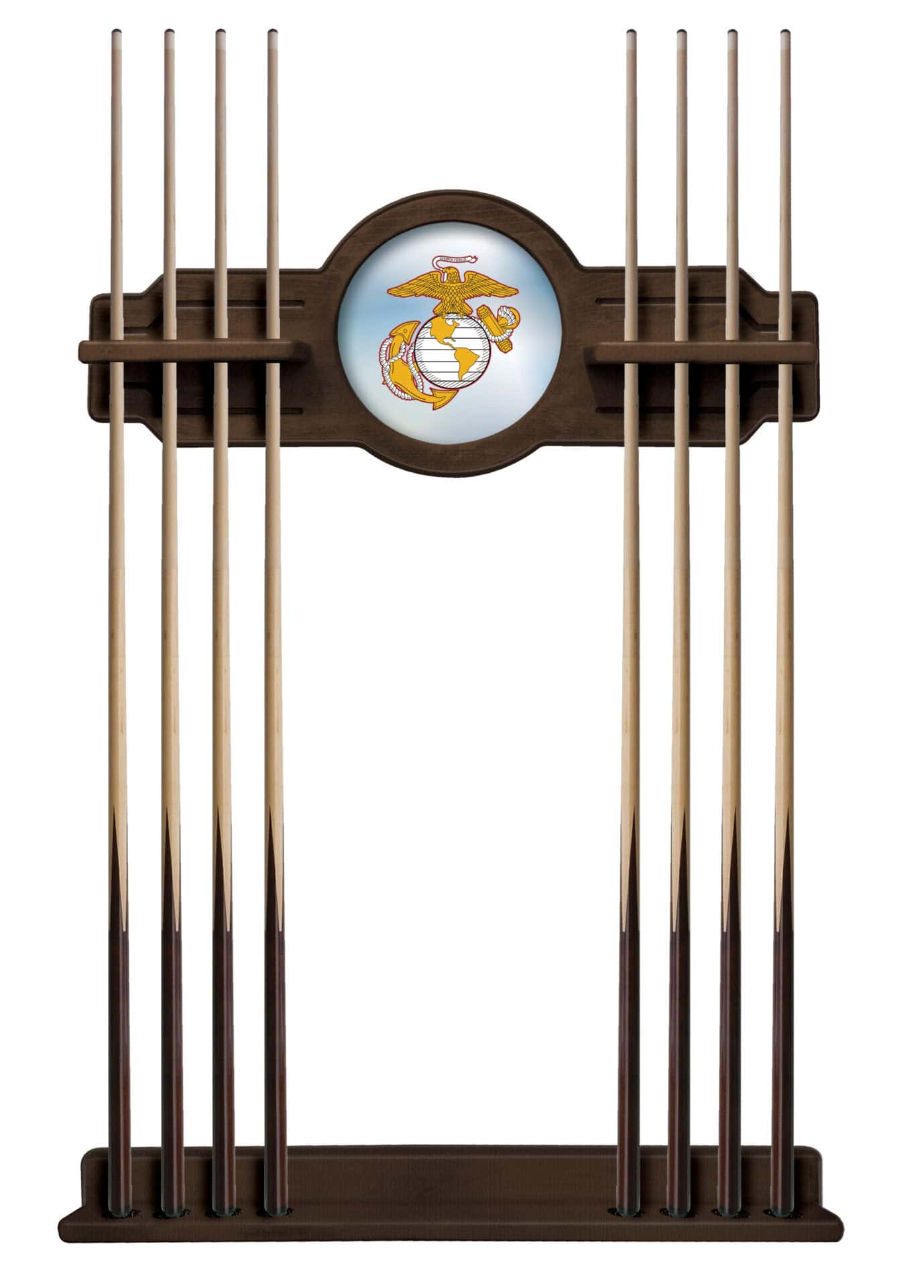 Elevate your game room with this premium Marine Corps Navajo Logo Cue Rack, designed to showcase your military pride while providing exceptional functionality for pool enthusiasts. This meticulously crafted cue rack combines durability, style, and practical storage solutions for your pool equipment.
