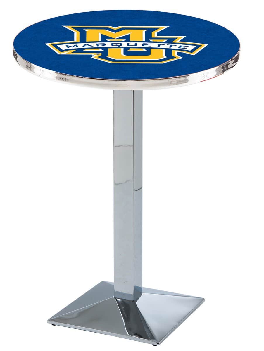 Upgrade your bar, game room, or man cave with this premium 36-inch pub table featuring a 30-inch top, square base, and sleek chrome finish. Designed for durability and style, this table combines a vibrant, scratch-resistant laminate top with a heavy-duty, triple chrome-plated base for a polished look that lasts. Its adjustable feet ensure stability on any surface, while the easy-to-clean top makes maintenance effortless. Perfect for hosting guests or displaying your team loyalty, this table adds a touch of sophistication to any setting.