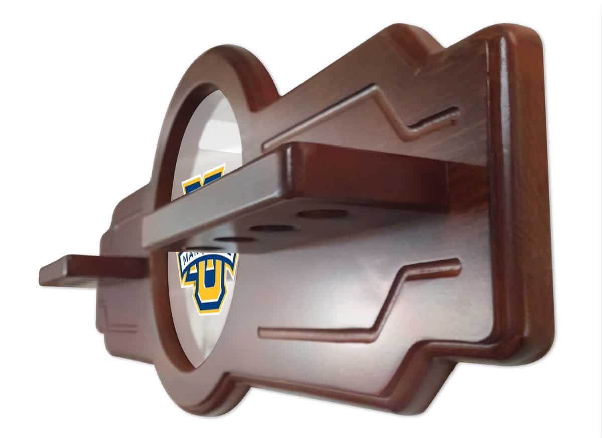 Elevate your game room with this premium Cue Rack, specifically designed for passionate pool enthusiasts and university sports fans. This meticulously crafted cue rack offers superior functionality and stunning visual appeal, providing a sophisticated storage solution for your pool cues while showcasing university pride.