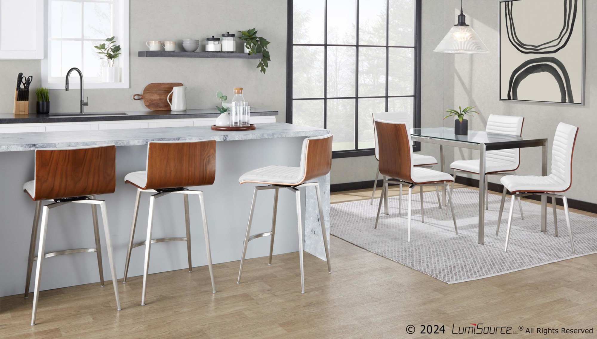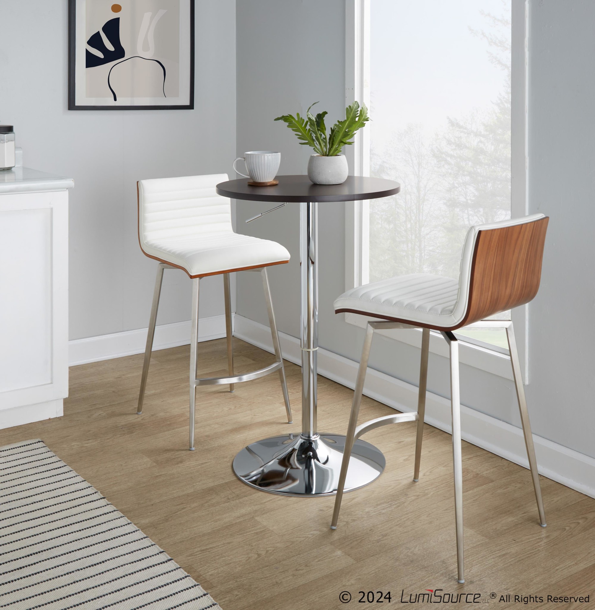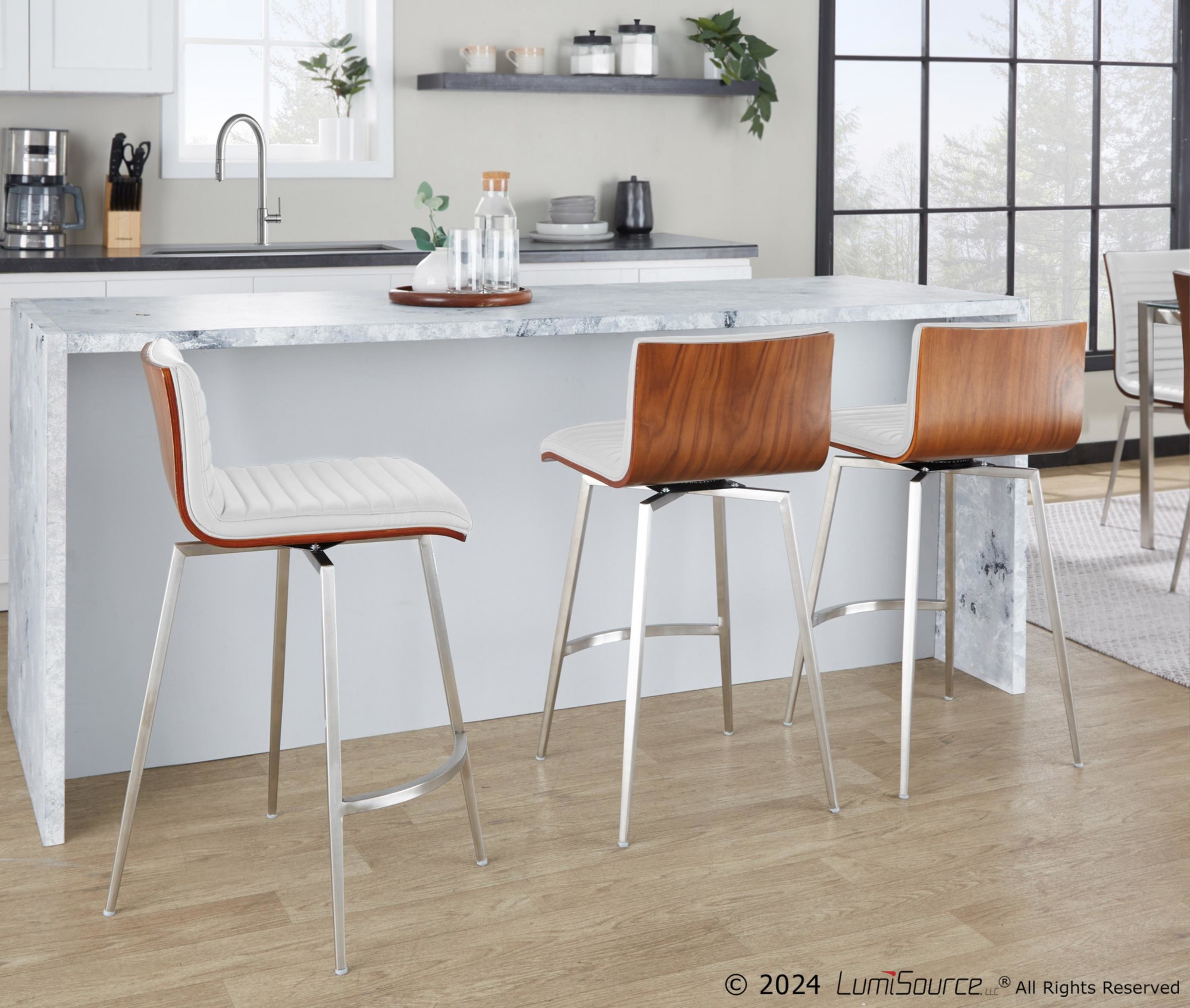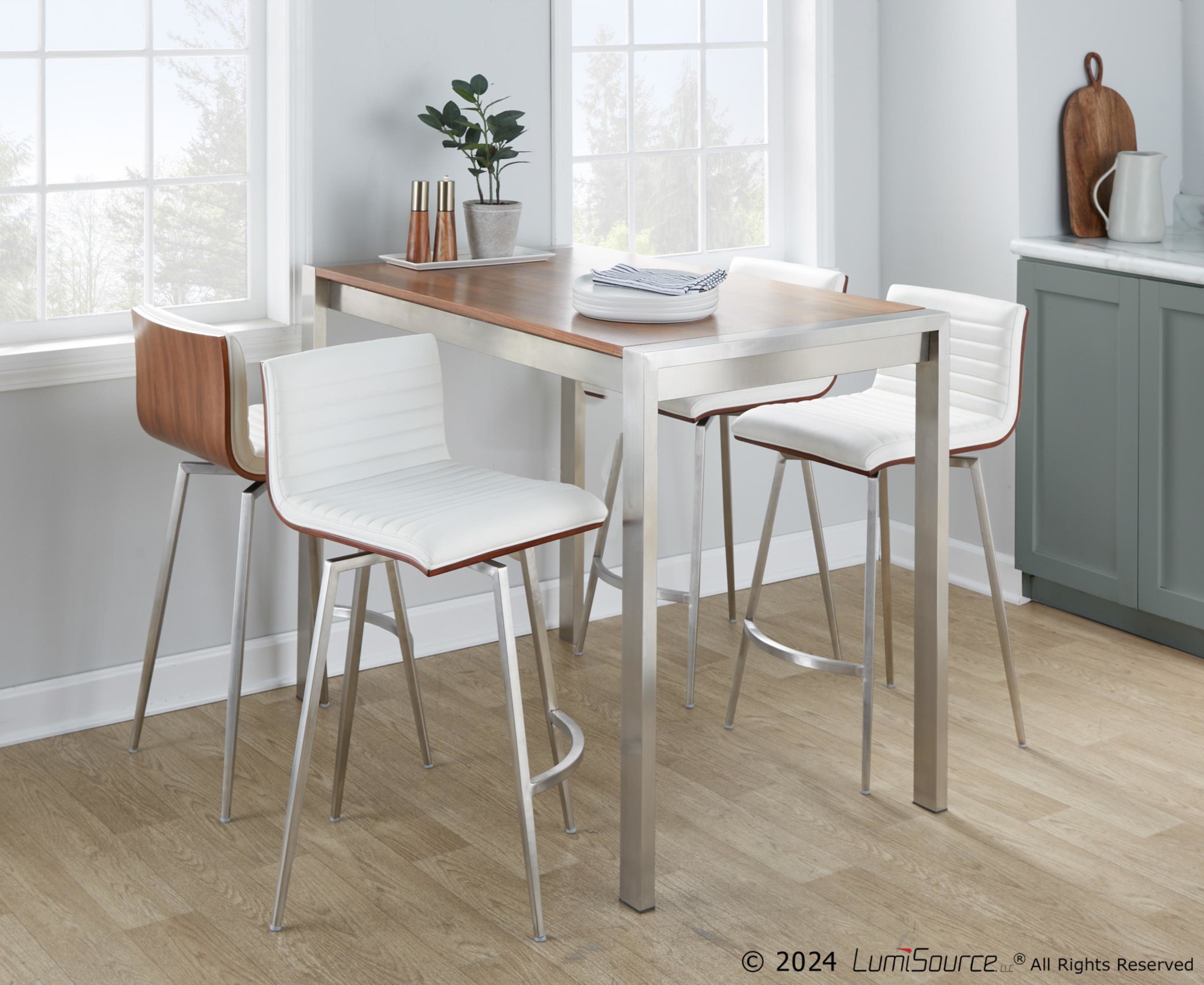 - Color: Stainless Steel, White PU, Walnut Wood