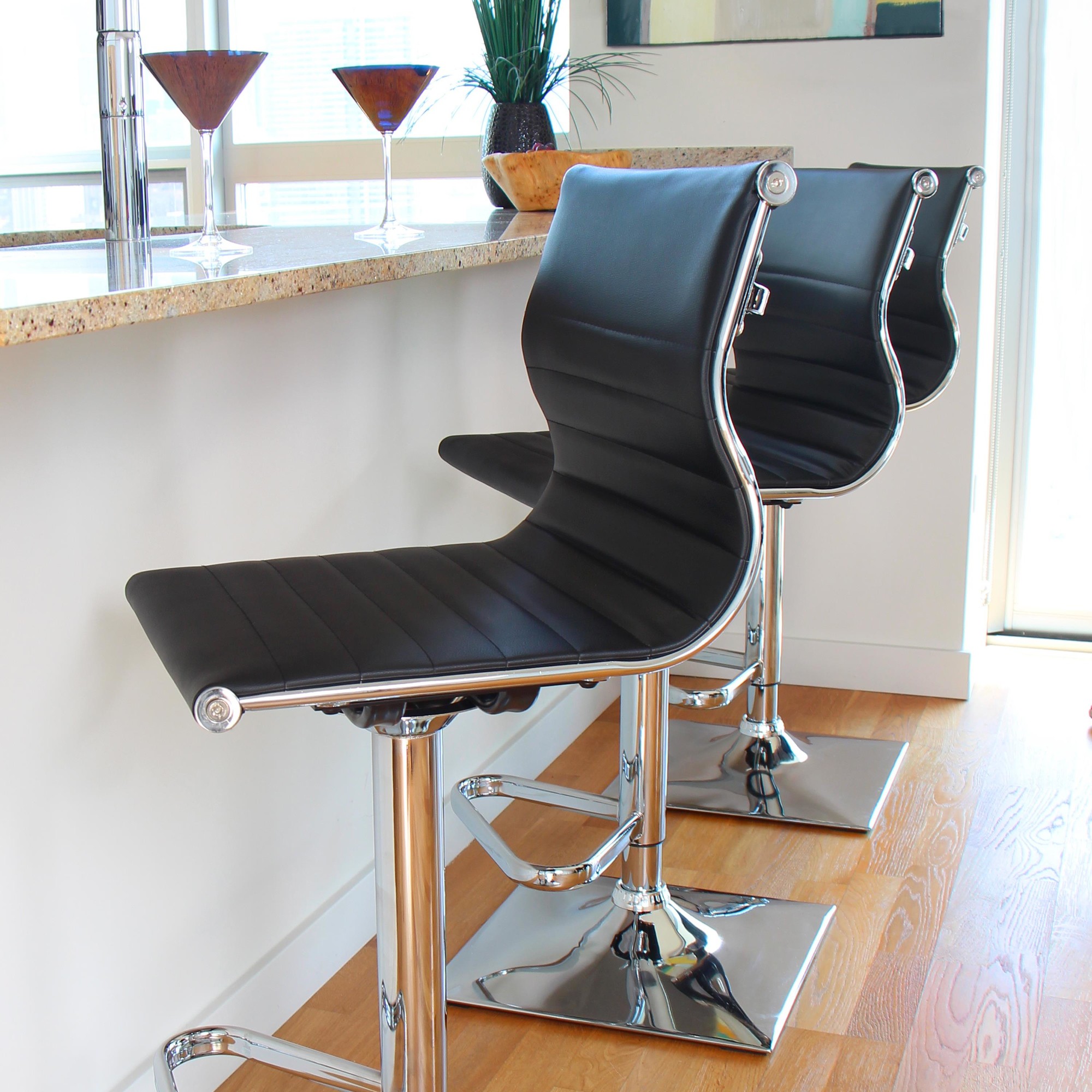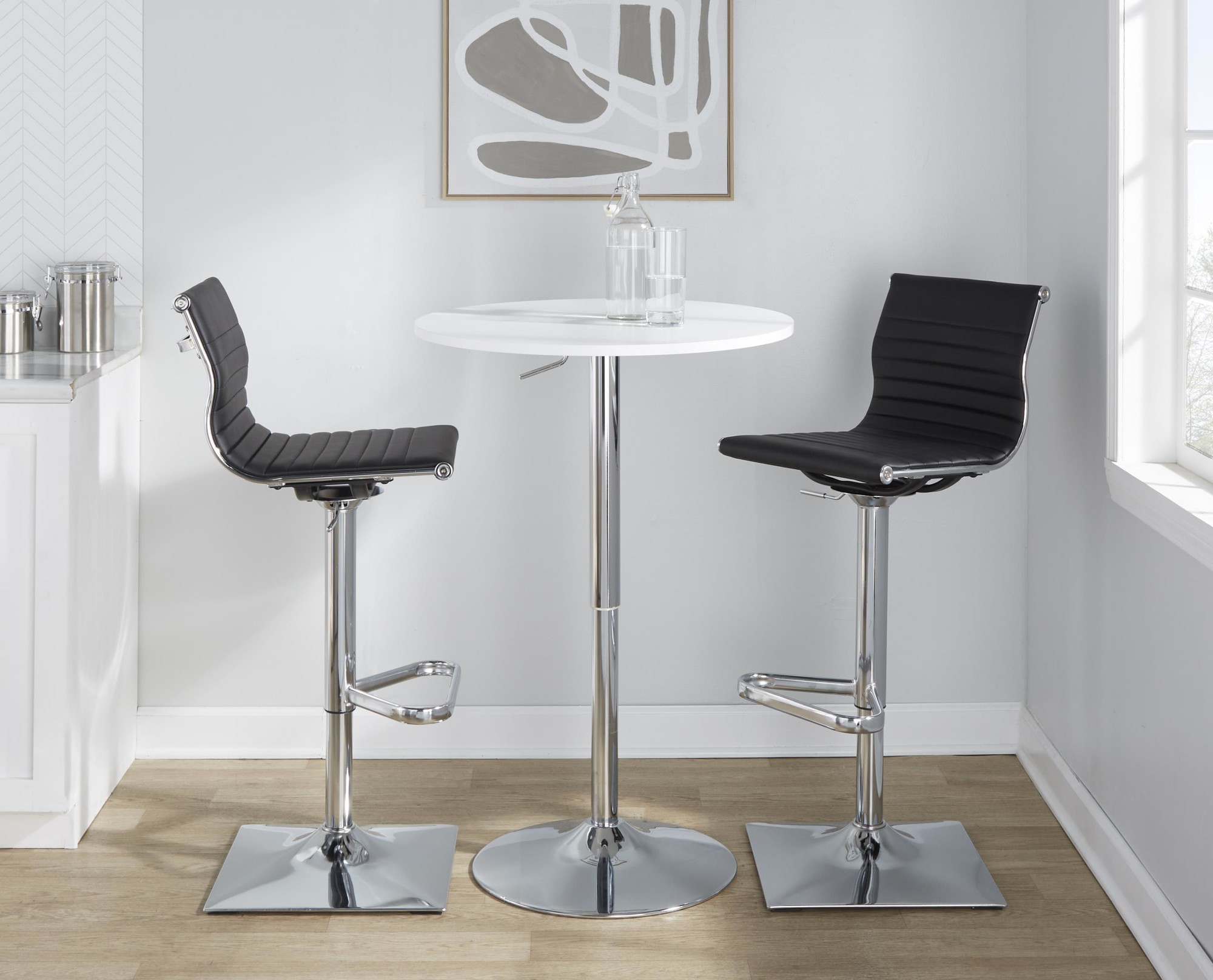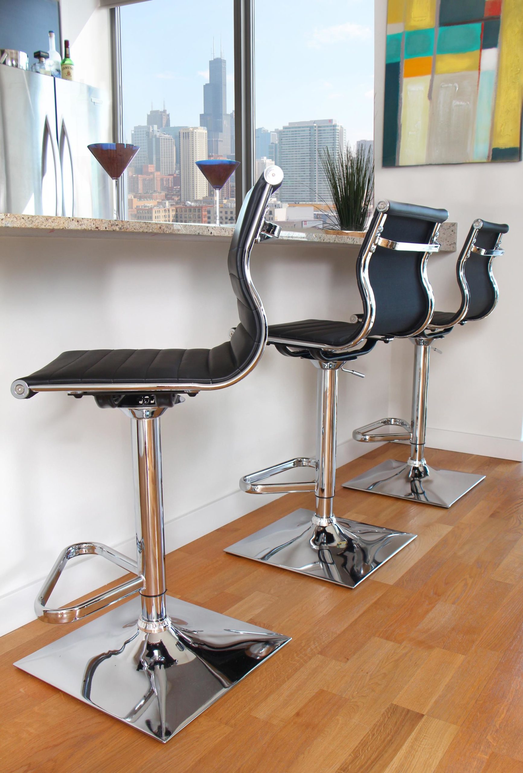 Enjoy the luxurious feel of the slightly angled faux leather seat, designed for optimal comfort. The chrome base provides a sturdy and stylish foundation, while the adjustable height feature allows you to customize the stool to fit your needs, whether you’re using it at a counter or a bar. The 360-degree swivel adds convenience and mobility, making it easy to turn and engage in conversations. This bar stool is a great addition to your rec room, office conference areas, or any space where you want to combine style and functionality.