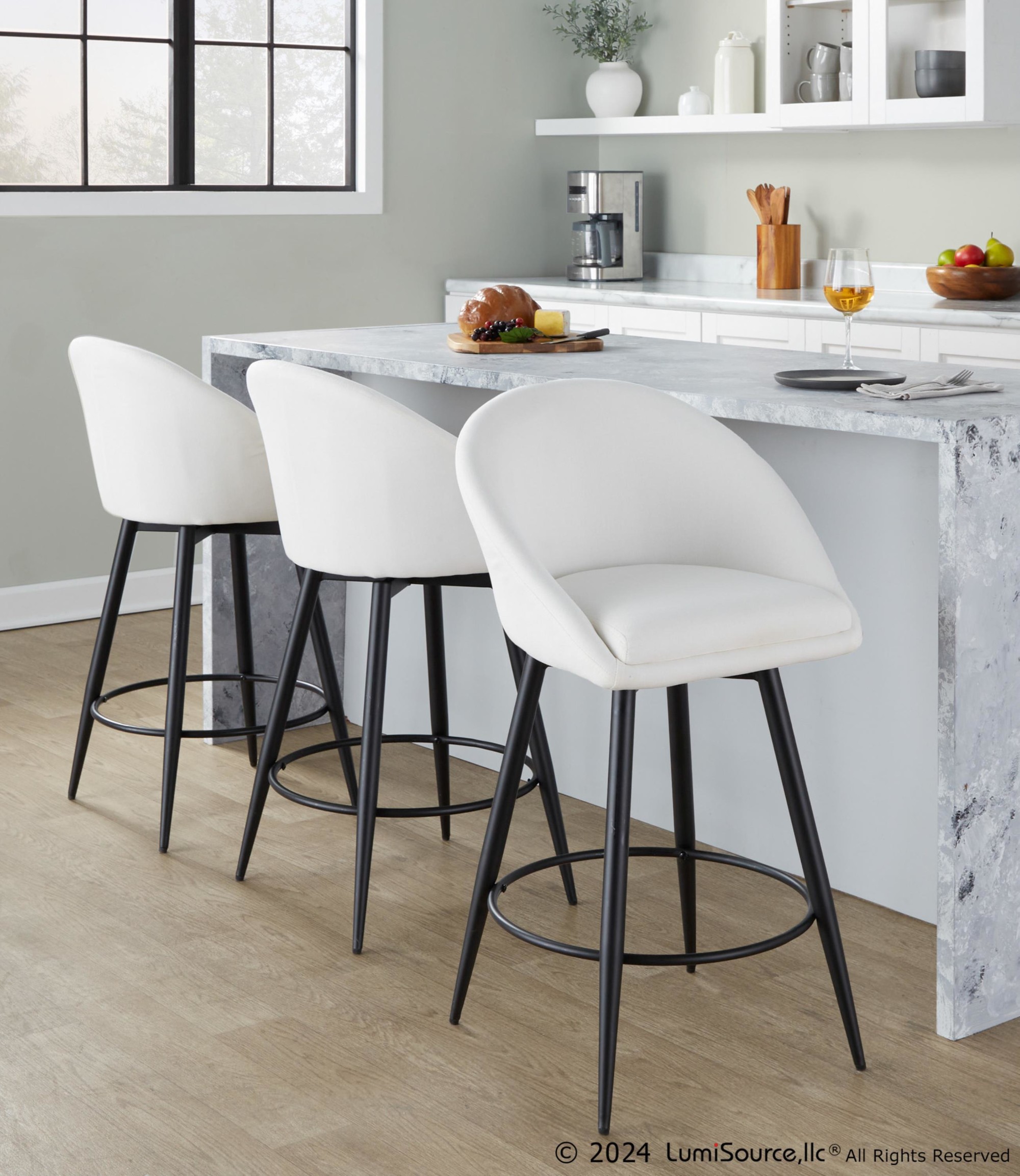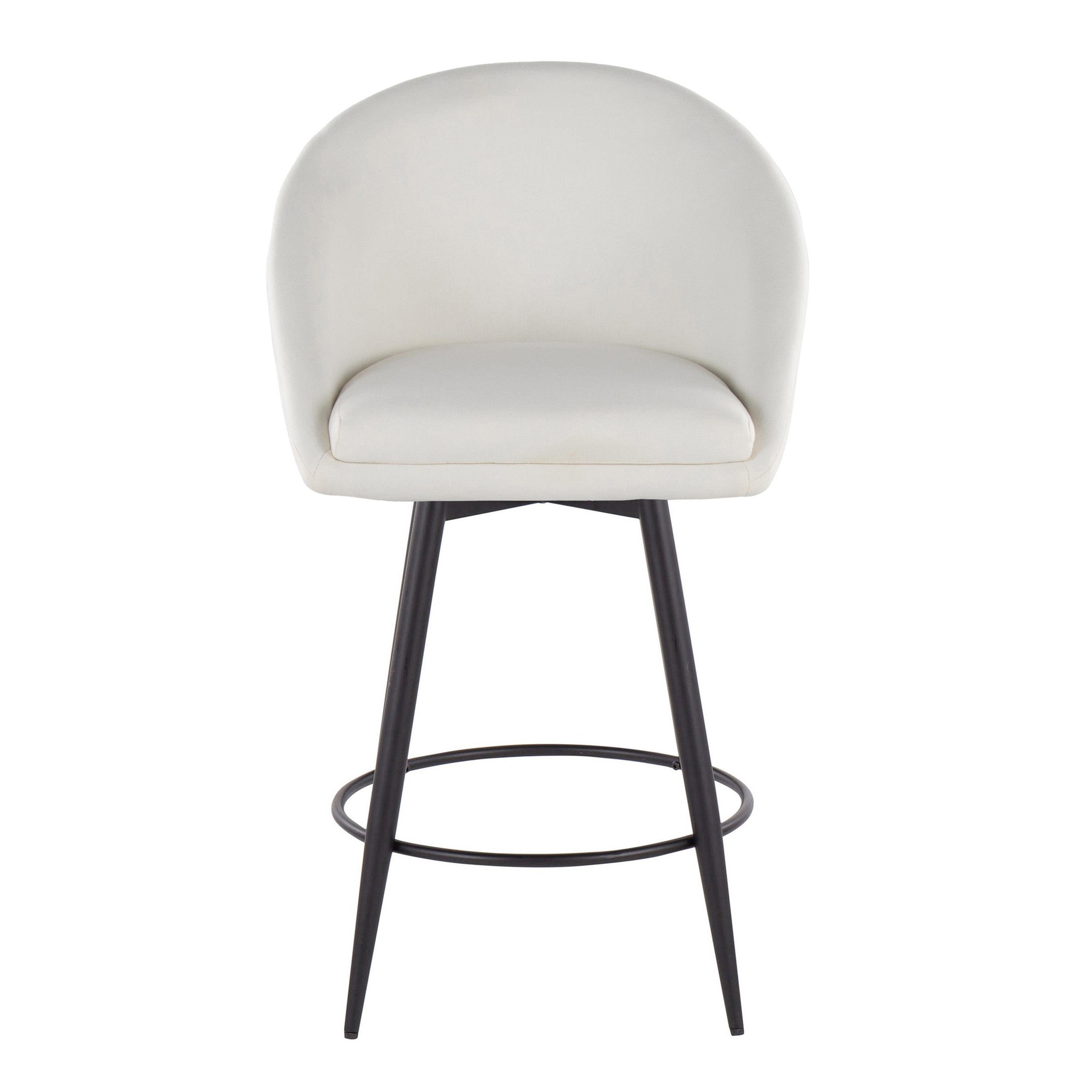 The Matisse 26-Inch Counter Stools bring modern elegance and exceptional comfort to your kitchen or bar. With a stylish rounded seat design and plush cream fabric upholstery, these stools are perfect for any setting. Enjoy the sleek black metal legs and convenient round footrest, providing both stability and sophistication.
