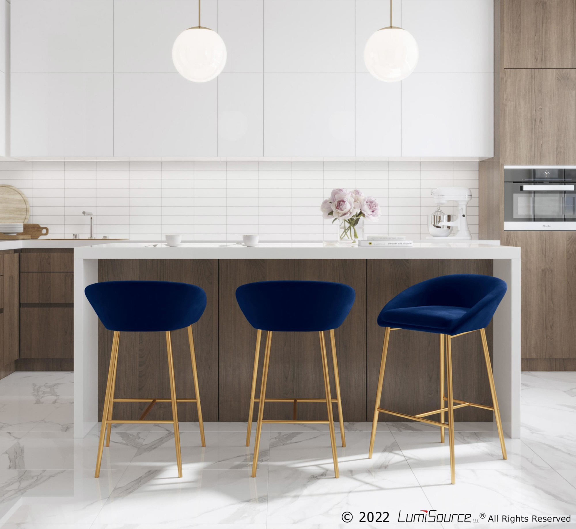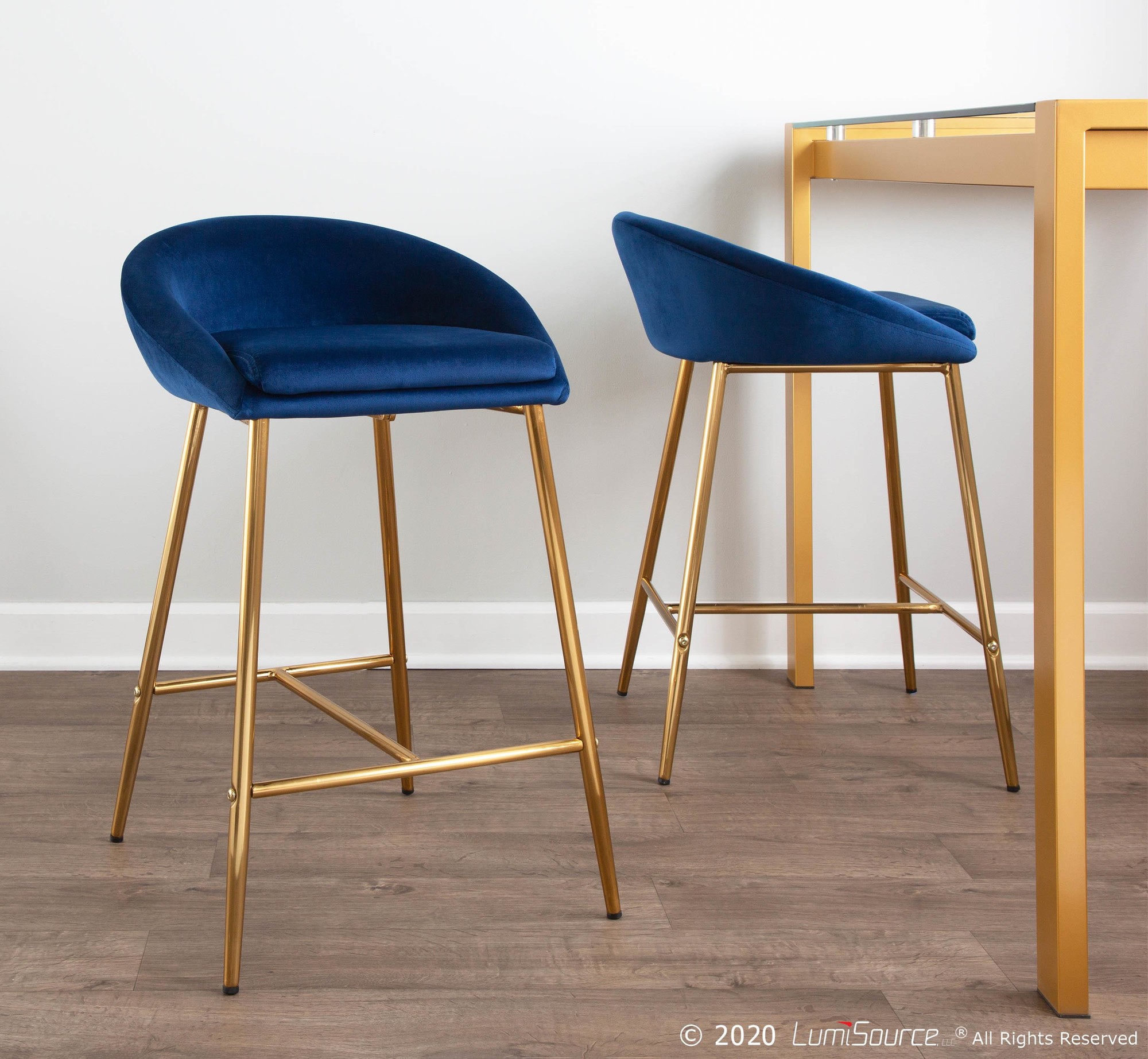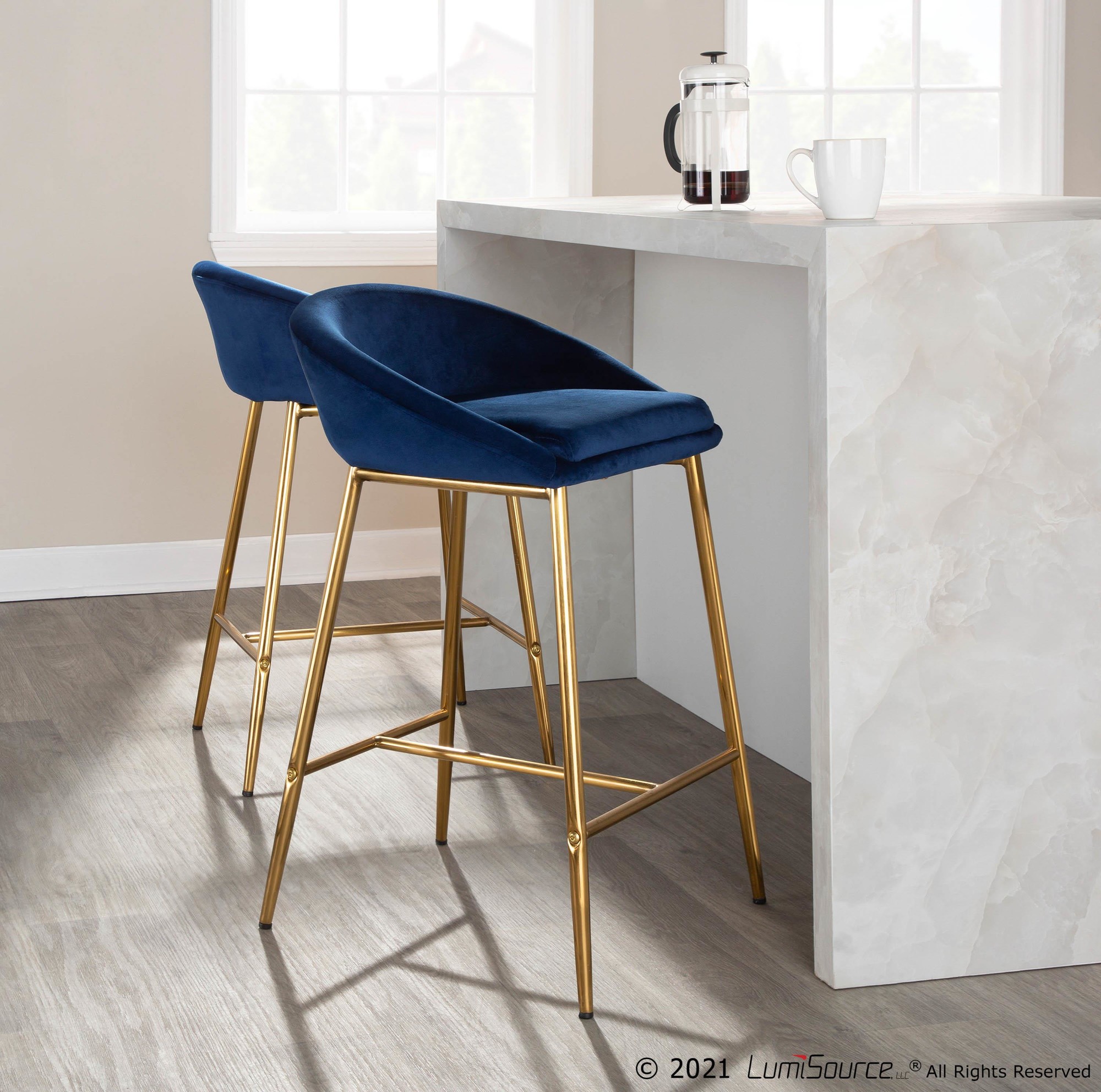 The Matisse Glam Counter Stool is a striking and contemporary seating option that adds an elegant touch to any space. This fixed-height counter stool features a stylish, low-back curved upholstered seat and a trestle-style metal base. Sold in pairs, these stools offer both comfort and visual appeal.