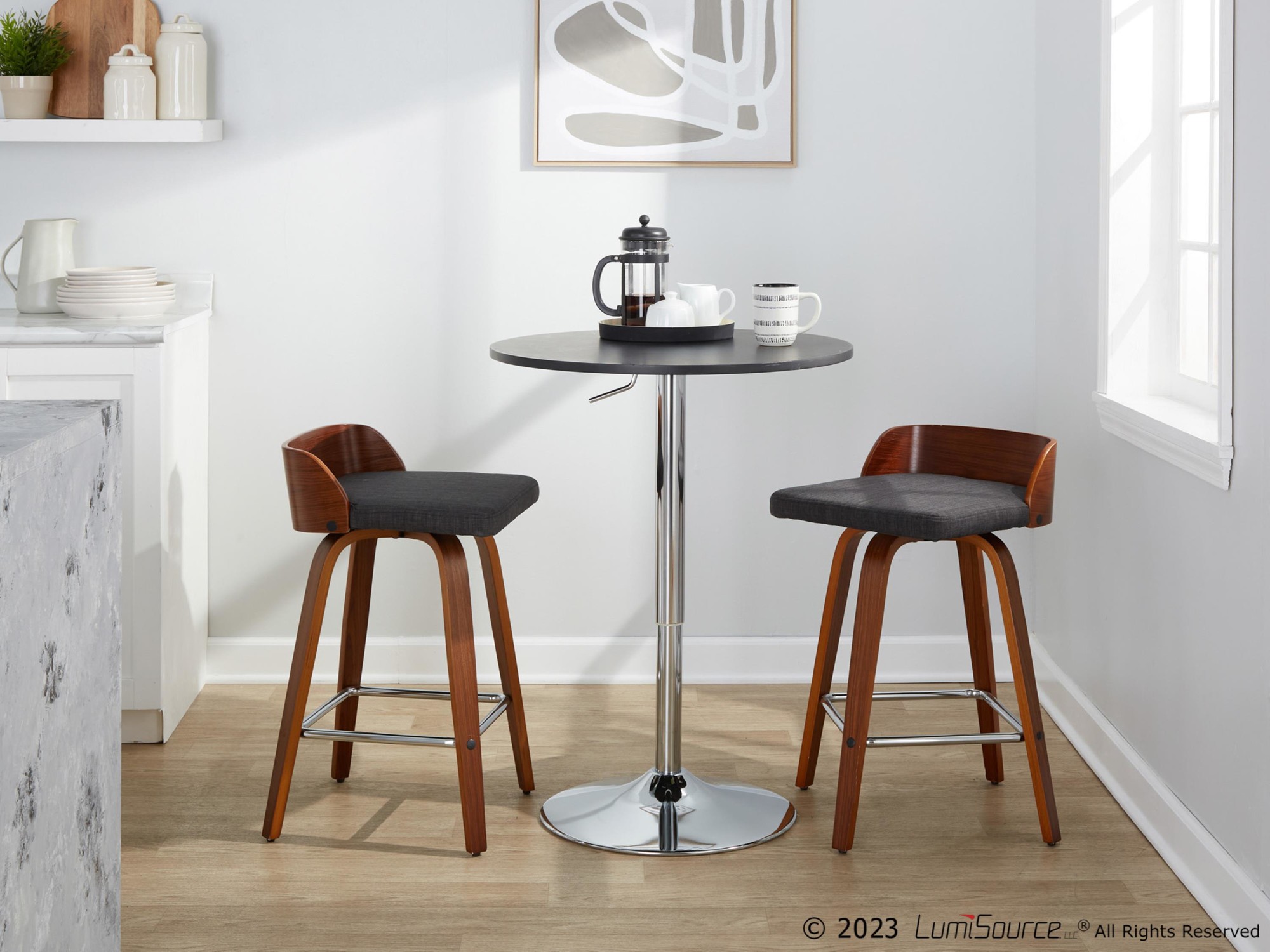 Maya 26-Inch Mid-Century Modern Walnut and Charcoal Swivel Stools (Set of 2)
