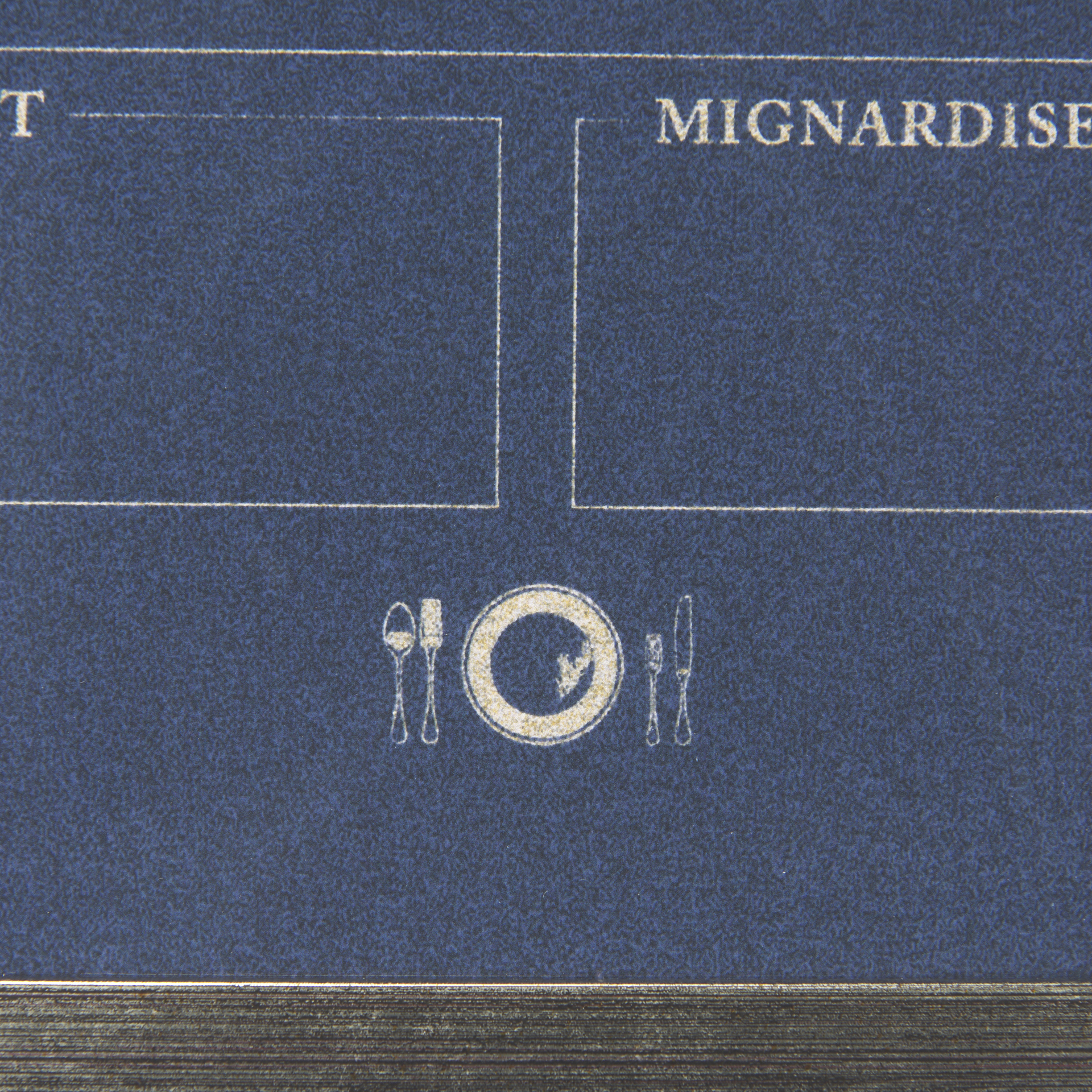Bring sophisticated artistry to your space with “MENU II,” a hand-embellished textured framed art print. This piece is matted under glass, adding depth and elegance to any room.