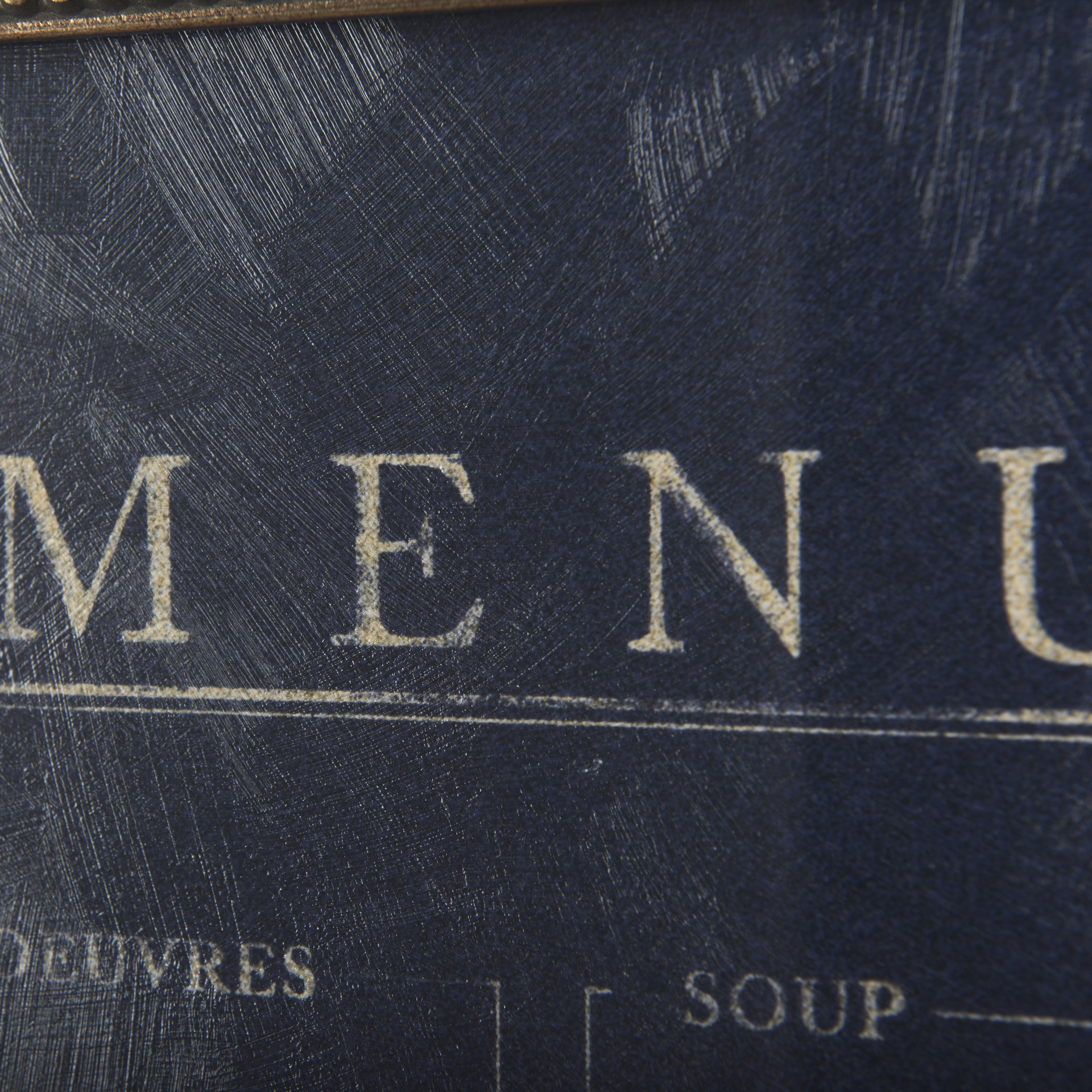 Bring sophisticated artistry to your space with “MENU II”! This hand-embellished textured framed art print, matted under glass, adds a touch of elegance to any room. It’s more than just a print; it’s a statement piece!