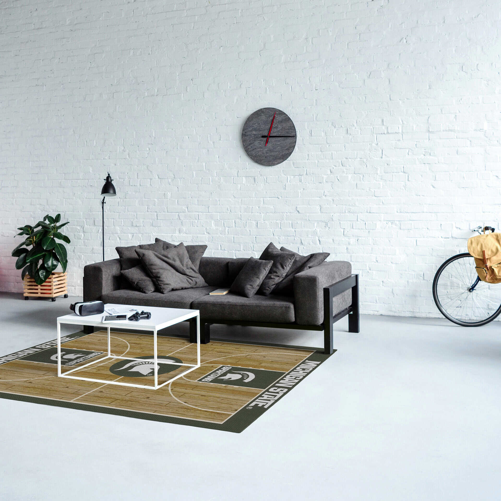 Show your team pride with the Michigan Courtside 4×6 NCAA Basketball Court Rug. This rug is designed to resemble a basketball court, bringing the excitement of the game right into your home. Made with high-quality materials, this rug is durable, fade-resistant, and easy to care for. The Endura-Loc™ backing ensures it lies flat, while the serged edges provide a quality finish. Perfect for any fan cave or game room!