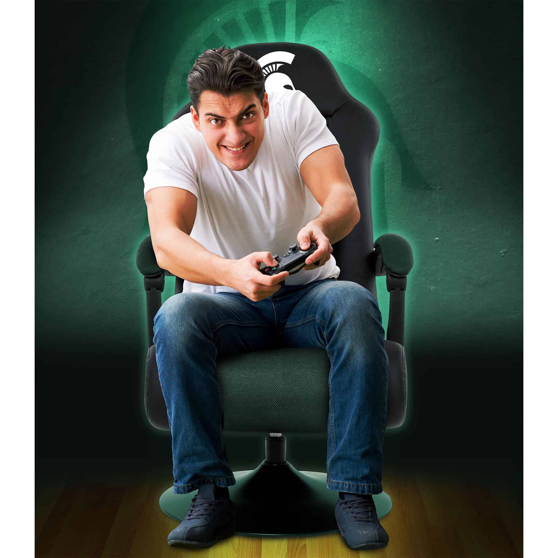 Enhance your gaming experience with the Michigan State Ultra Game Chair, designed for the ultimate fan. This chair combines comfort and technology, featuring built-in Bluetooth capability, four internal speakers, and ergonomic support, making it the perfect addition to any game room or fan cave.