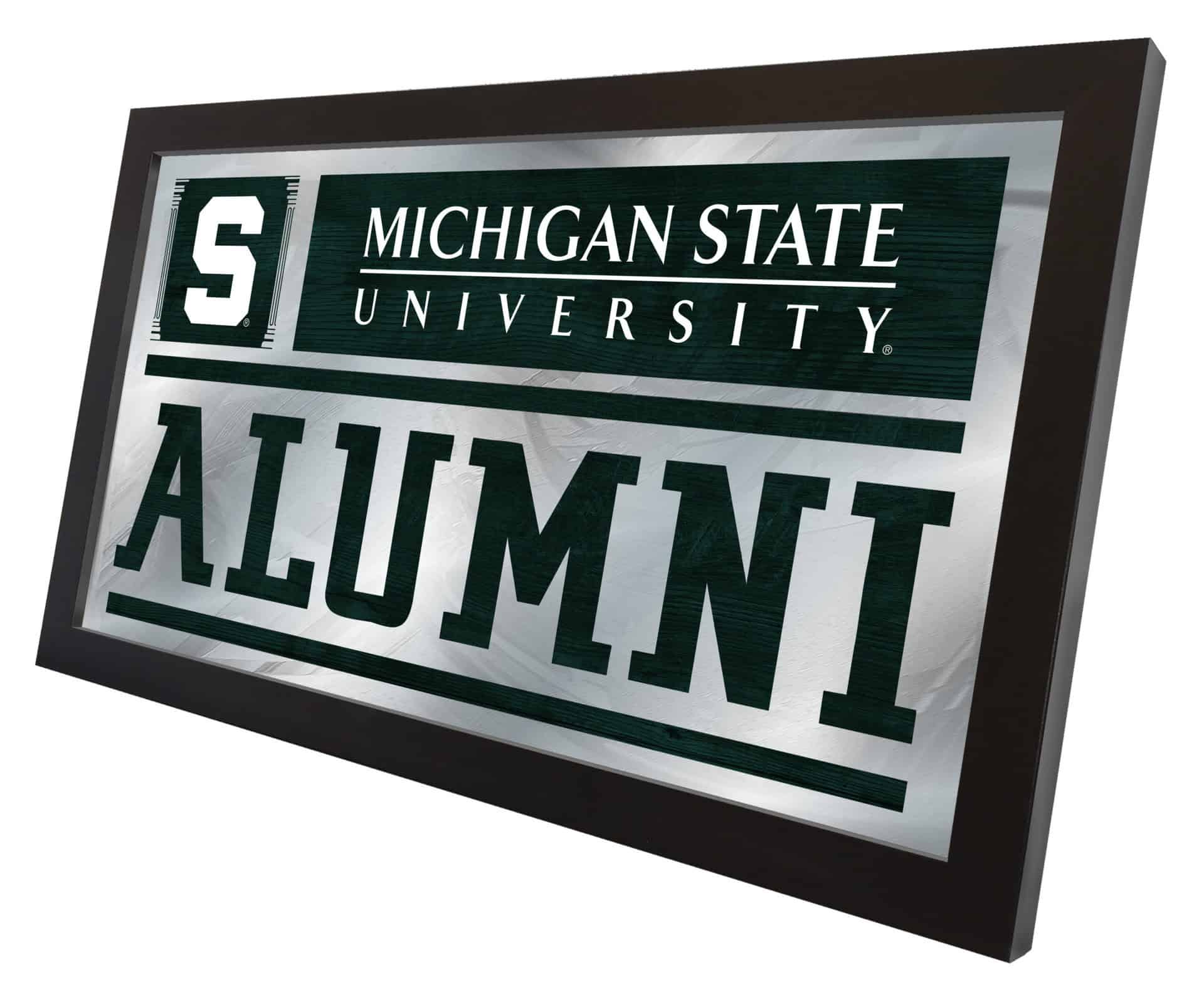 Show your school pride with the Alumni Wall Mirror. This elegant mirror features vibrant school colors that burst through the 1/8″ thick glass, complemented by mirrored accents. The mirror is framed with a black, 1 1/4 wrapped wood frame and includes saw tooth hangers for easy installation. Measuring 26″ in height and 15″ in width, it is perfect for any room in your home, office, or garage. Whether as a gift for a recent graduate or for personal use, this mirror is a stylish addition to your décor.