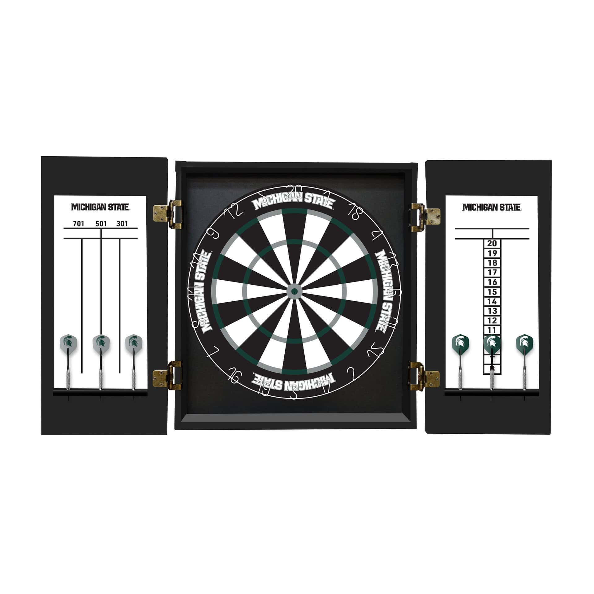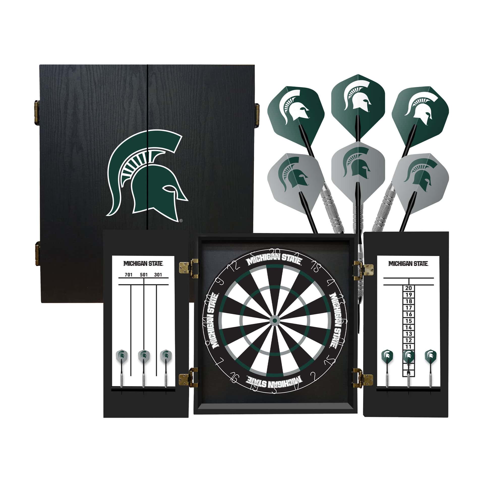 Show off your Michigan State University pride with this awesome dartboard set! This set includes everything you need for hours of fun in your fan cave. The self-healing bristle dartboard ensures long-lasting play, and the included cabinet keeps everything organized and looking sharp. Get ready to host some epic game nights!