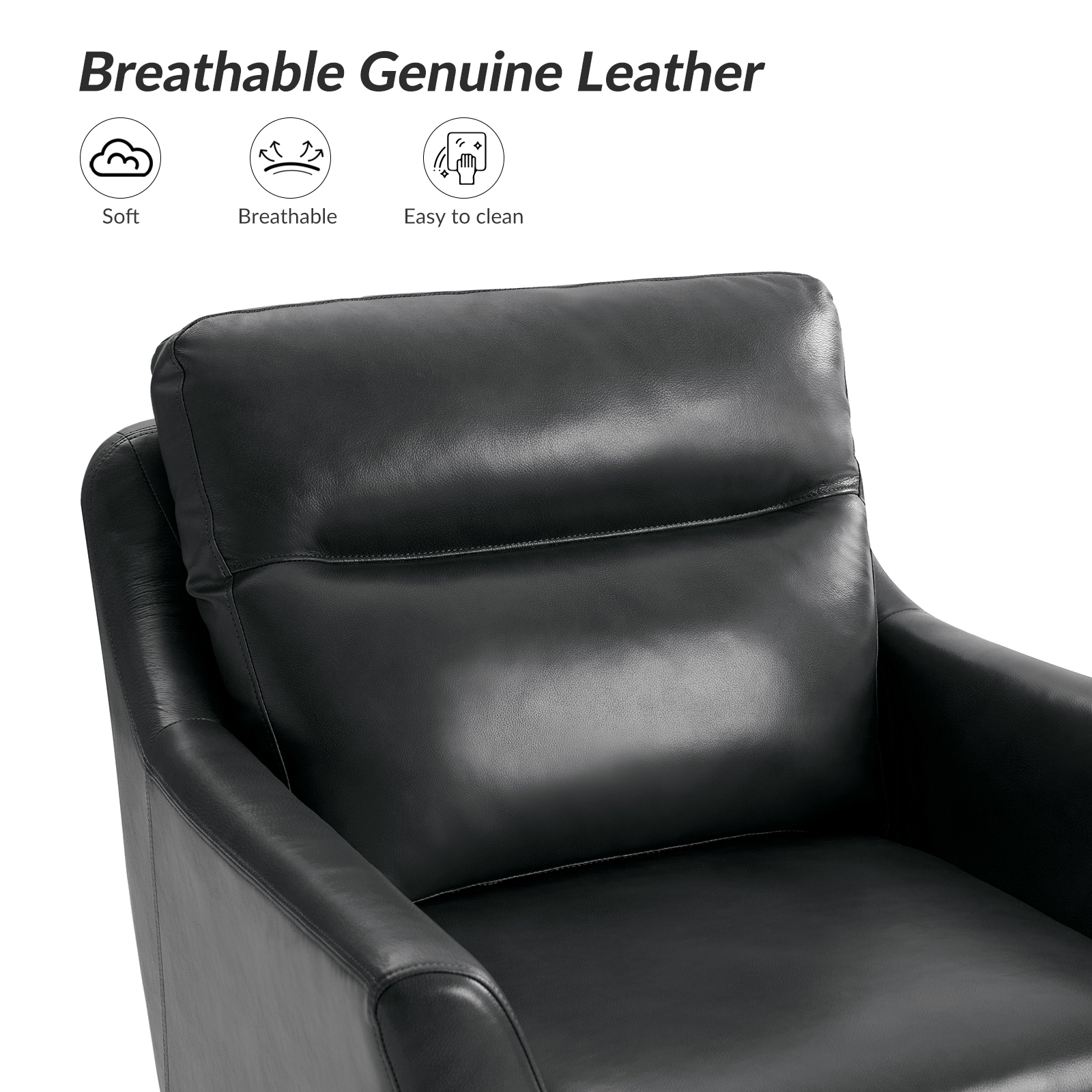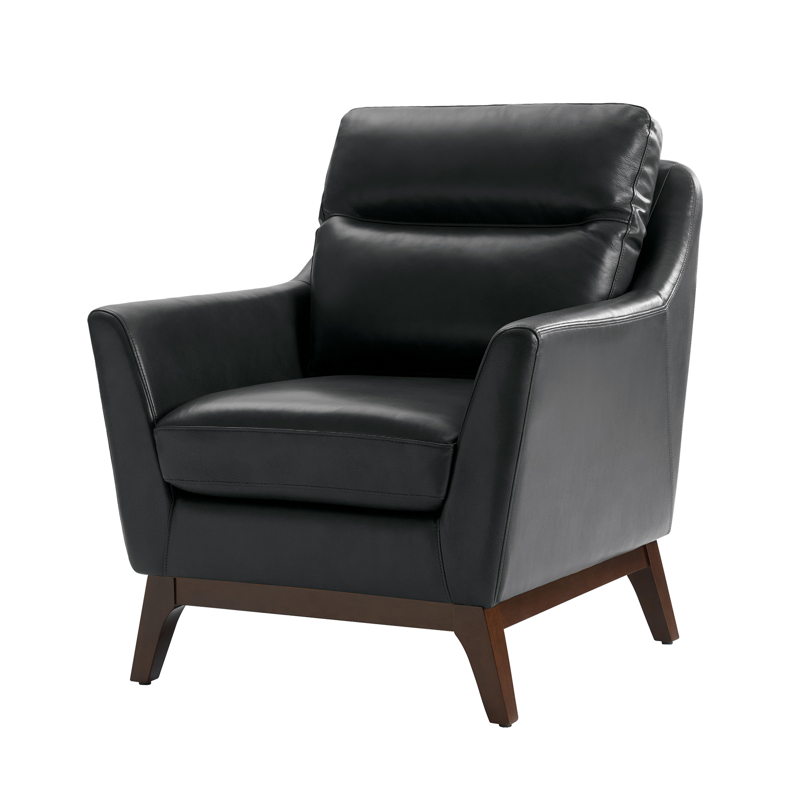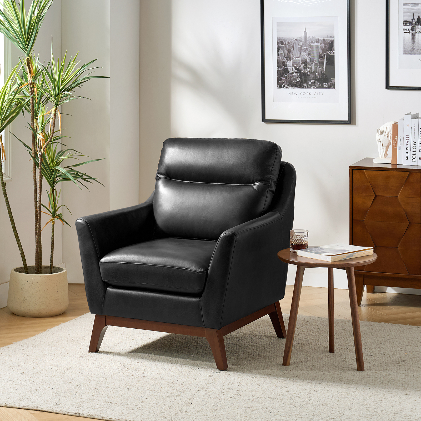 The Mid-Century Black Genuine Leather Trapezoid Armrest Armchair offers timeless comfort and elegance, seamlessly blending mid-century modern aesthetics with contemporary sophistication. This exquisite piece is designed to elevate your living space with its luxurious feel and enduring durability.
