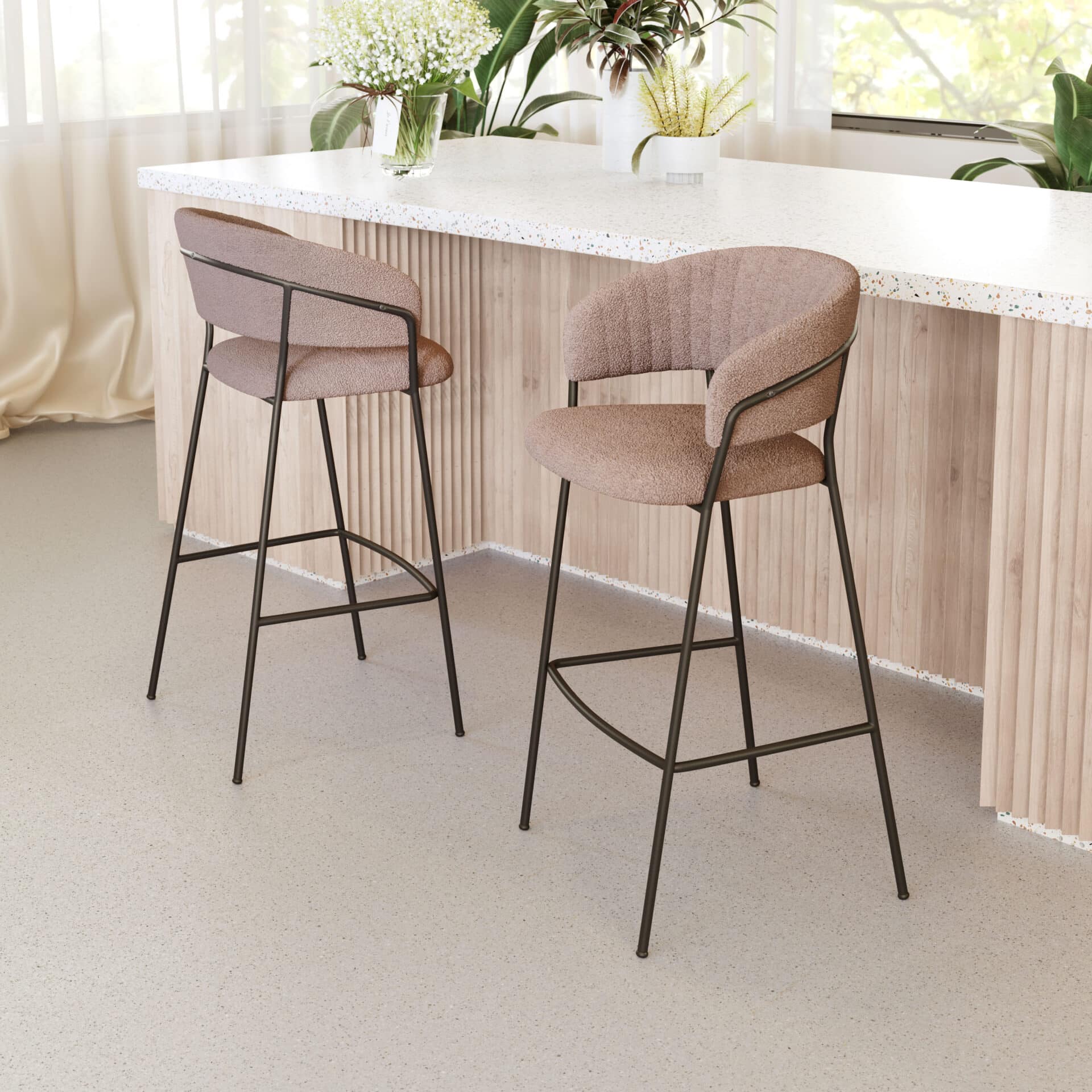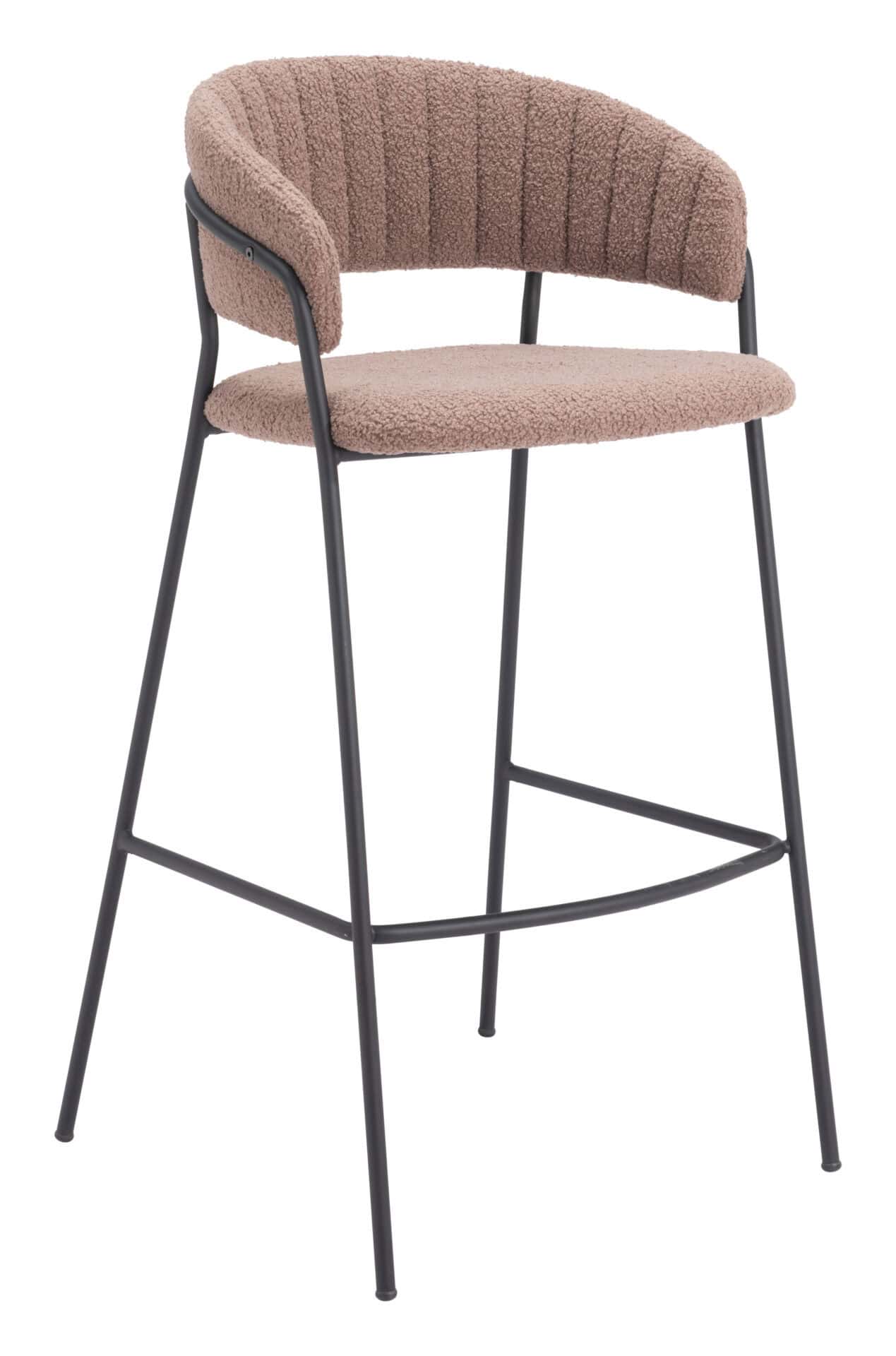 The Mid-Century Modern Brown Barstool with Armrests and Footrest (Set of 2) combines mid-century modern aesthetics with glamorous décor elements. Featuring a beautifully wrapped seat and back, this chair offers both style and comfort, making it ideal for residential or hospitality spaces. Its sturdy frame, built-in footrest, and armrest support ensure a comfortable seating experience. Designed for durability, the barstool also includes rubber feet to protect your floors from scratches.