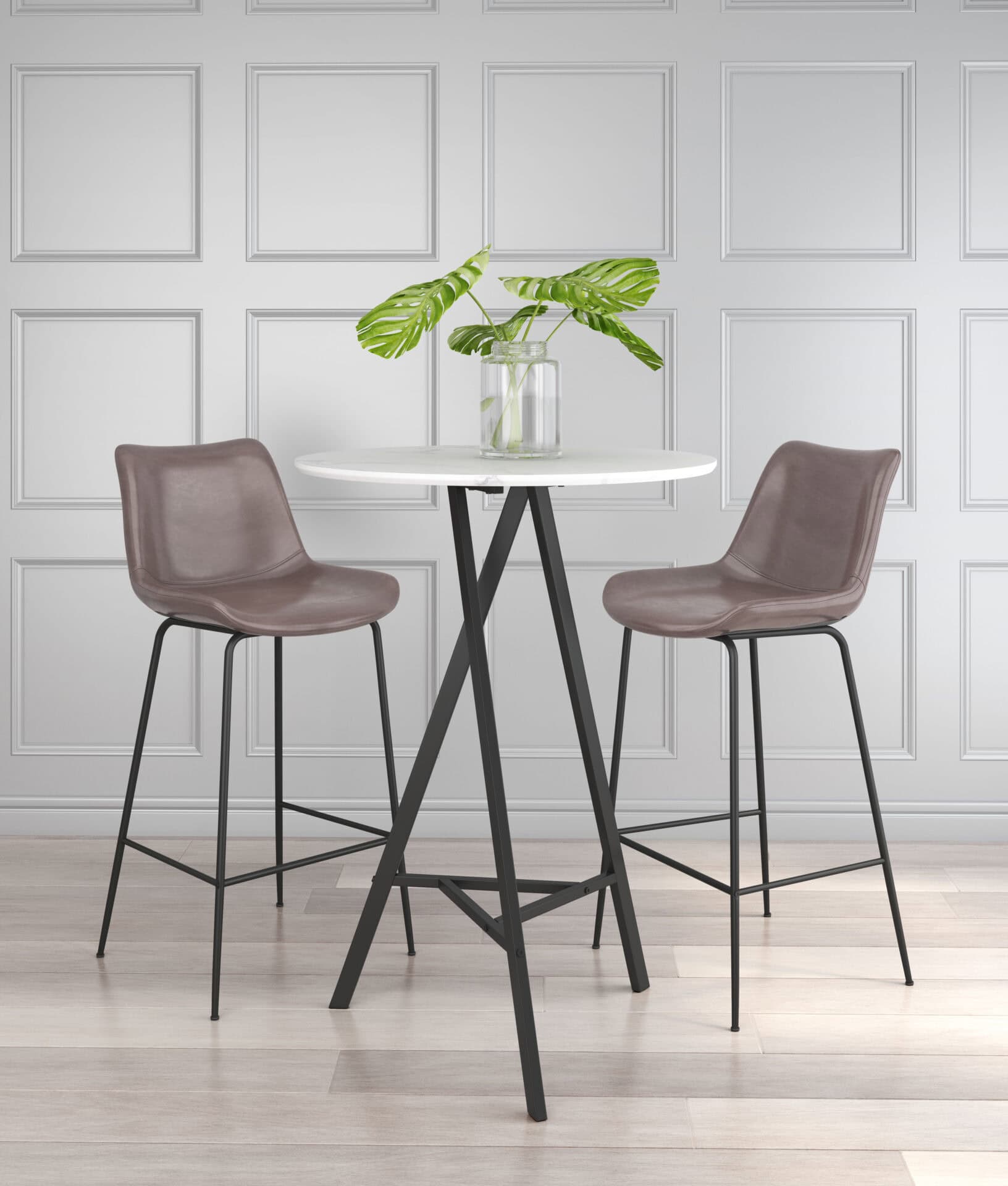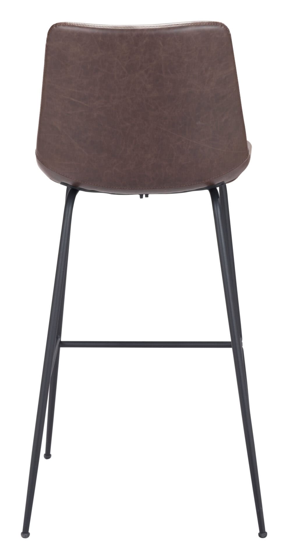 The Mid-Century Modern Faux Leather Barstool with Black Steel Frame combines sleek urban style with durable construction, making it a perfect addition to any space. Featuring plush faux leather upholstery and a sturdy steel frame, this barstool is both comfortable and long-lasting. The matte black powder-coated legs offer a modern aesthetic while providing strength and stability. Its built-in footrest and rubber feet ensure comfort and floor protection, making it ideal for home kitchens, dining areas, or bars.