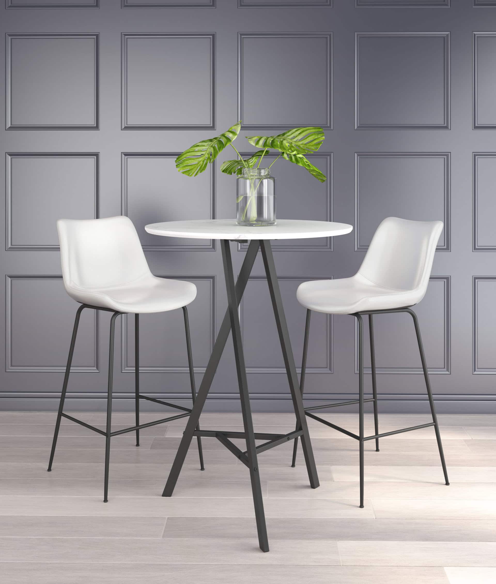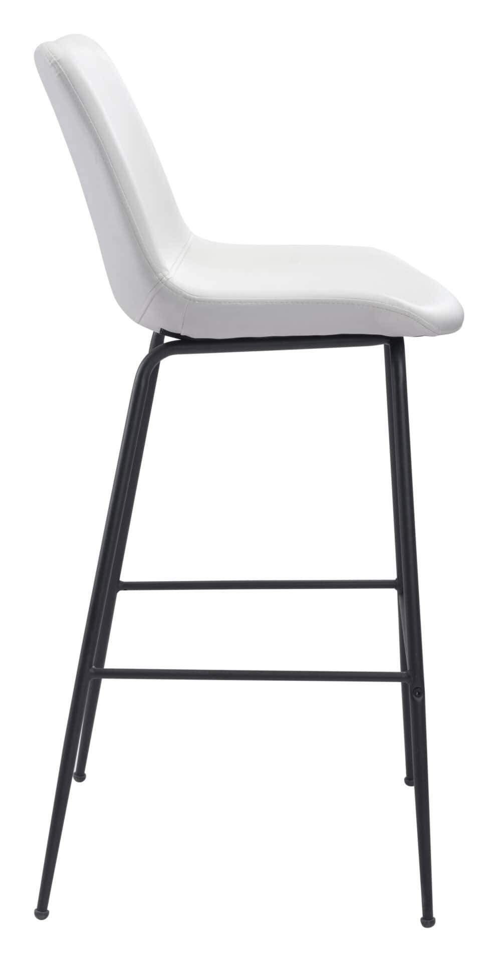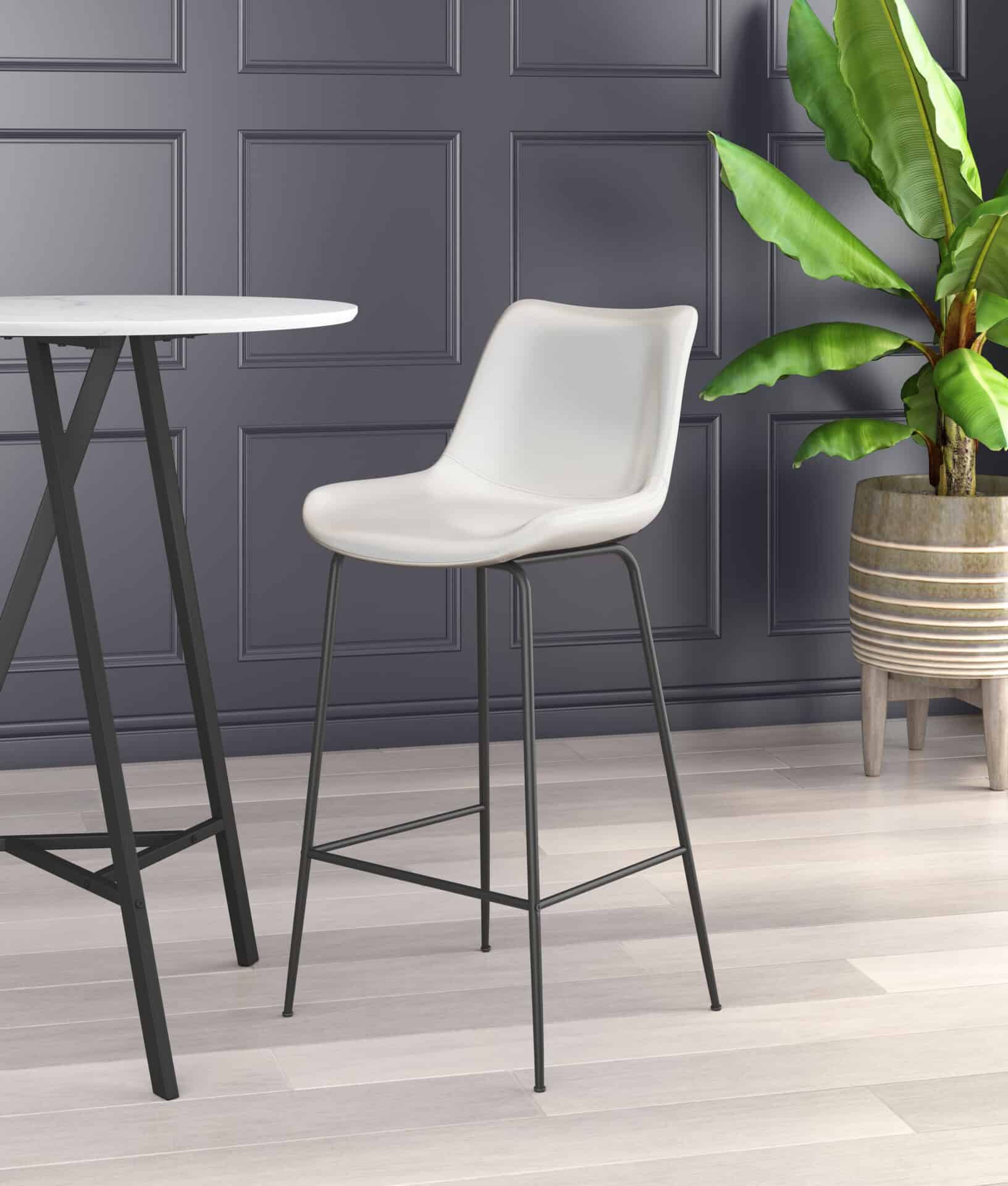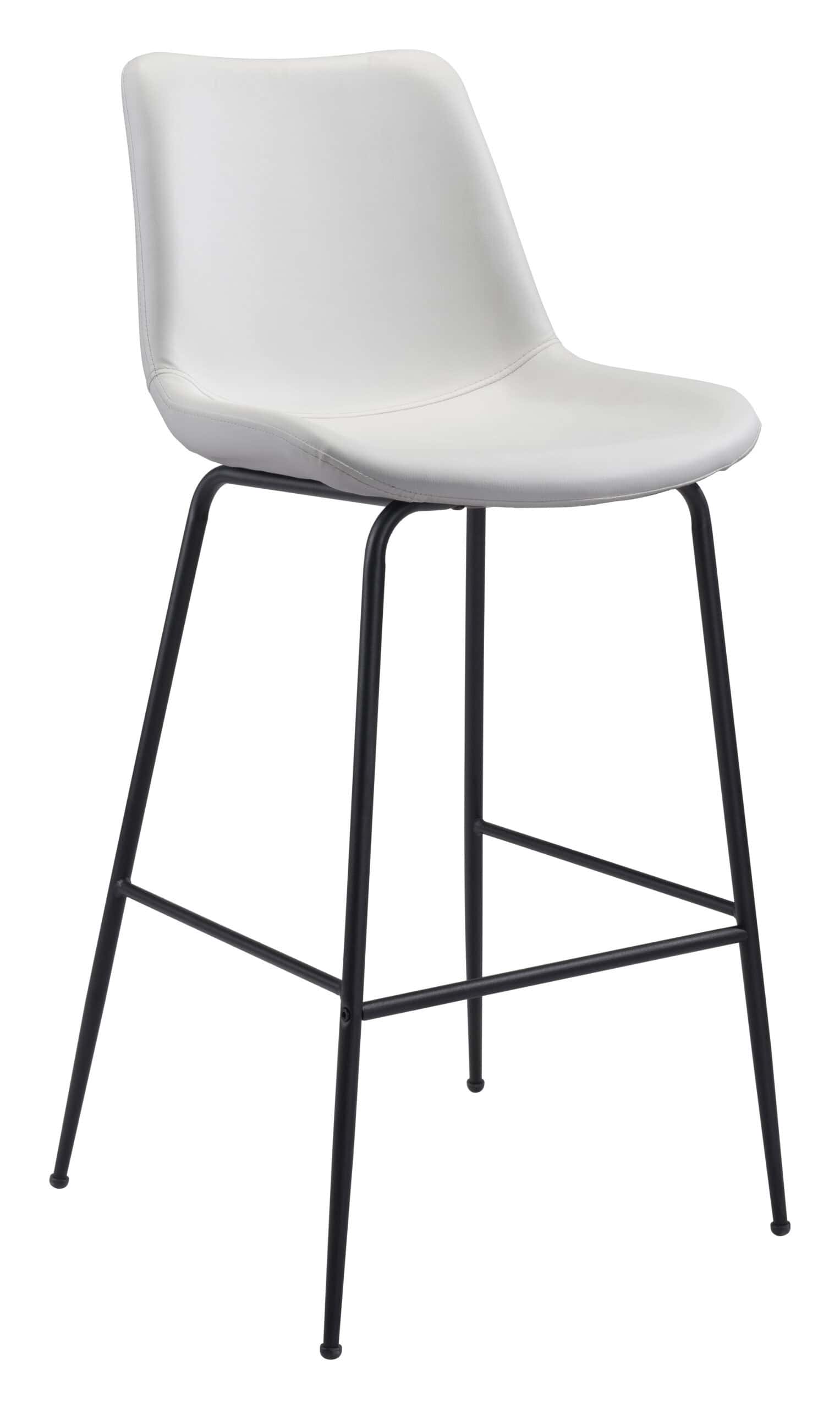 The Mid-Century Modern White Barstool with Faux Leather and Steel Frame combines sleek urban style with durable functionality. Ideal for any kitchen, dining area, or bar, this barstool features a heavy-duty faux leather seat and a solid steel frame with a powder-coated matte black finish. A built-in footrest and rubber feet add extra comfort and protect your floors from scratches. With a weight capacity of up to 330 lbs, this barstool is as sturdy as it is stylish.