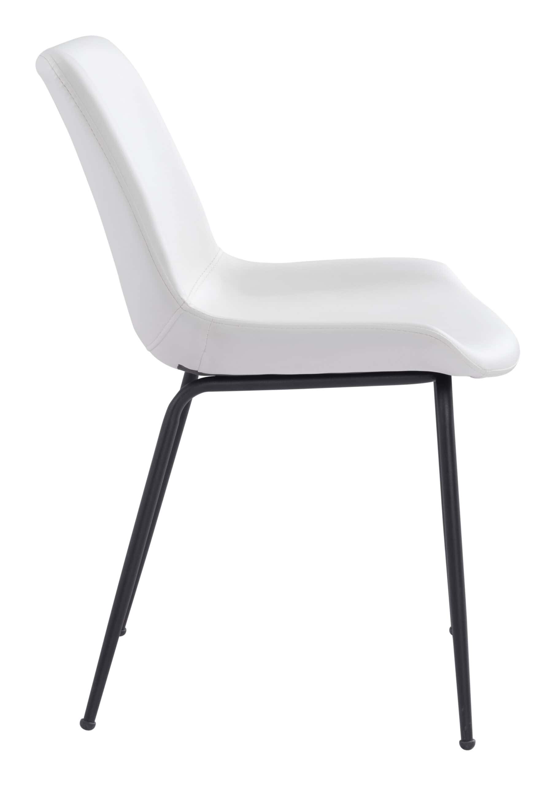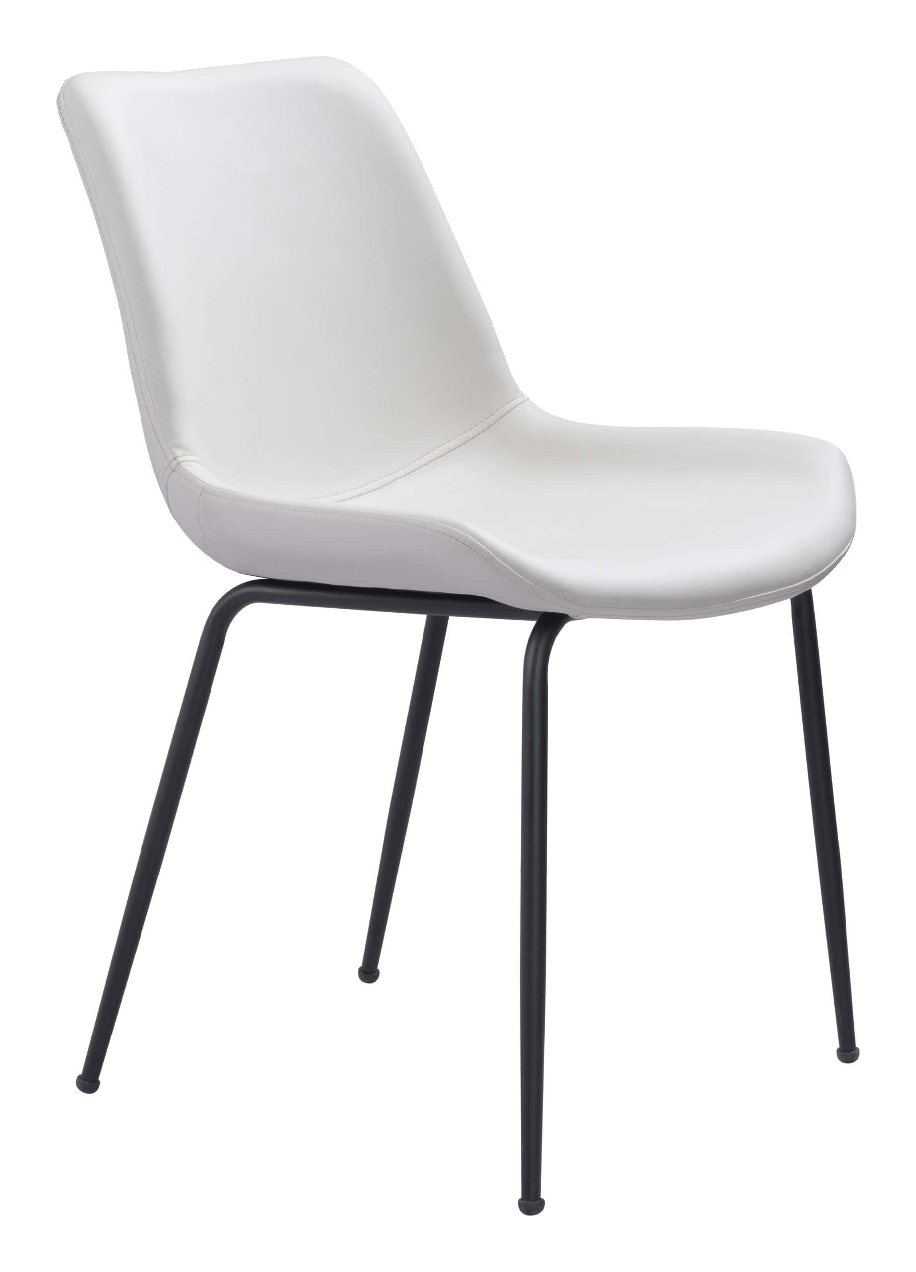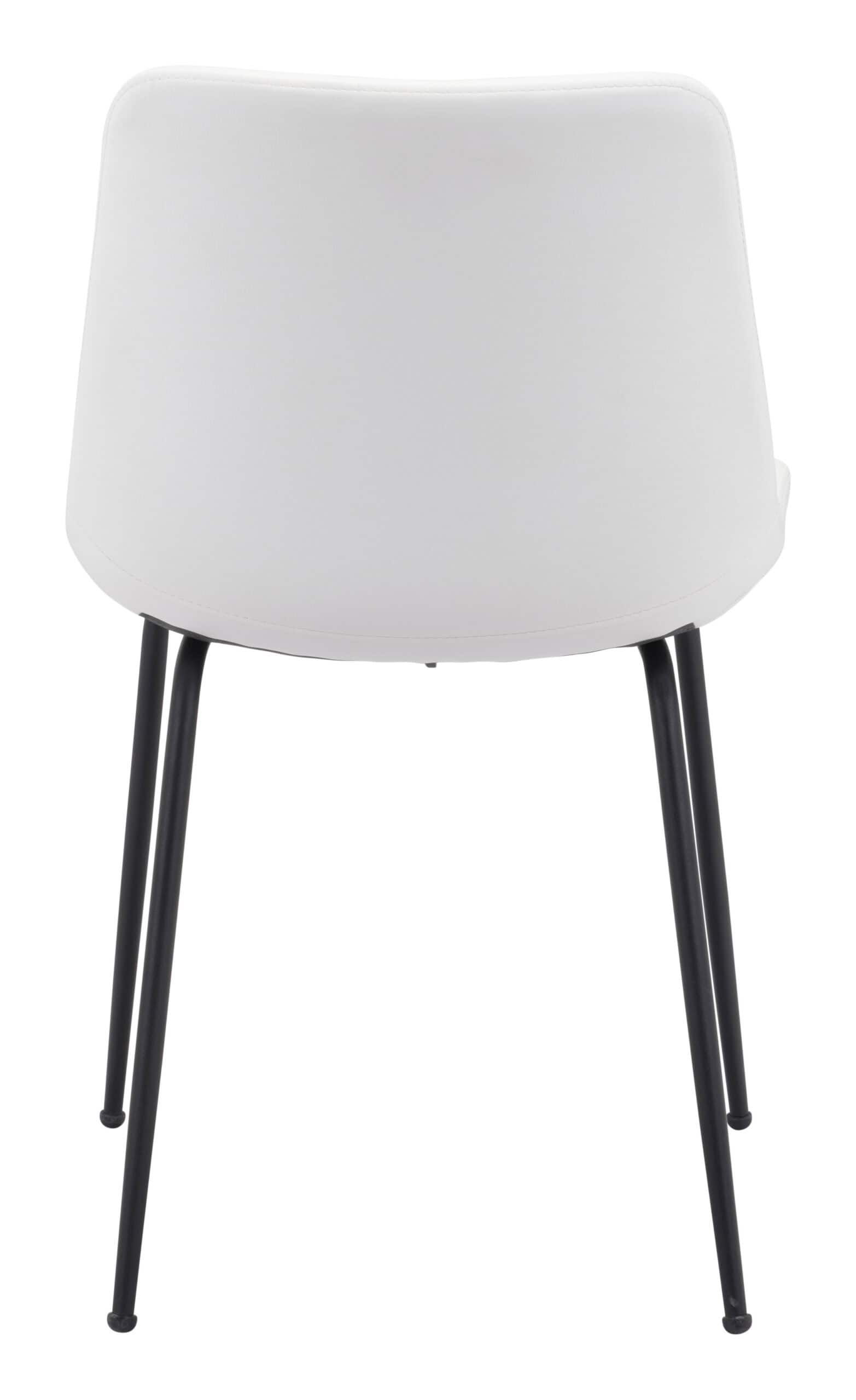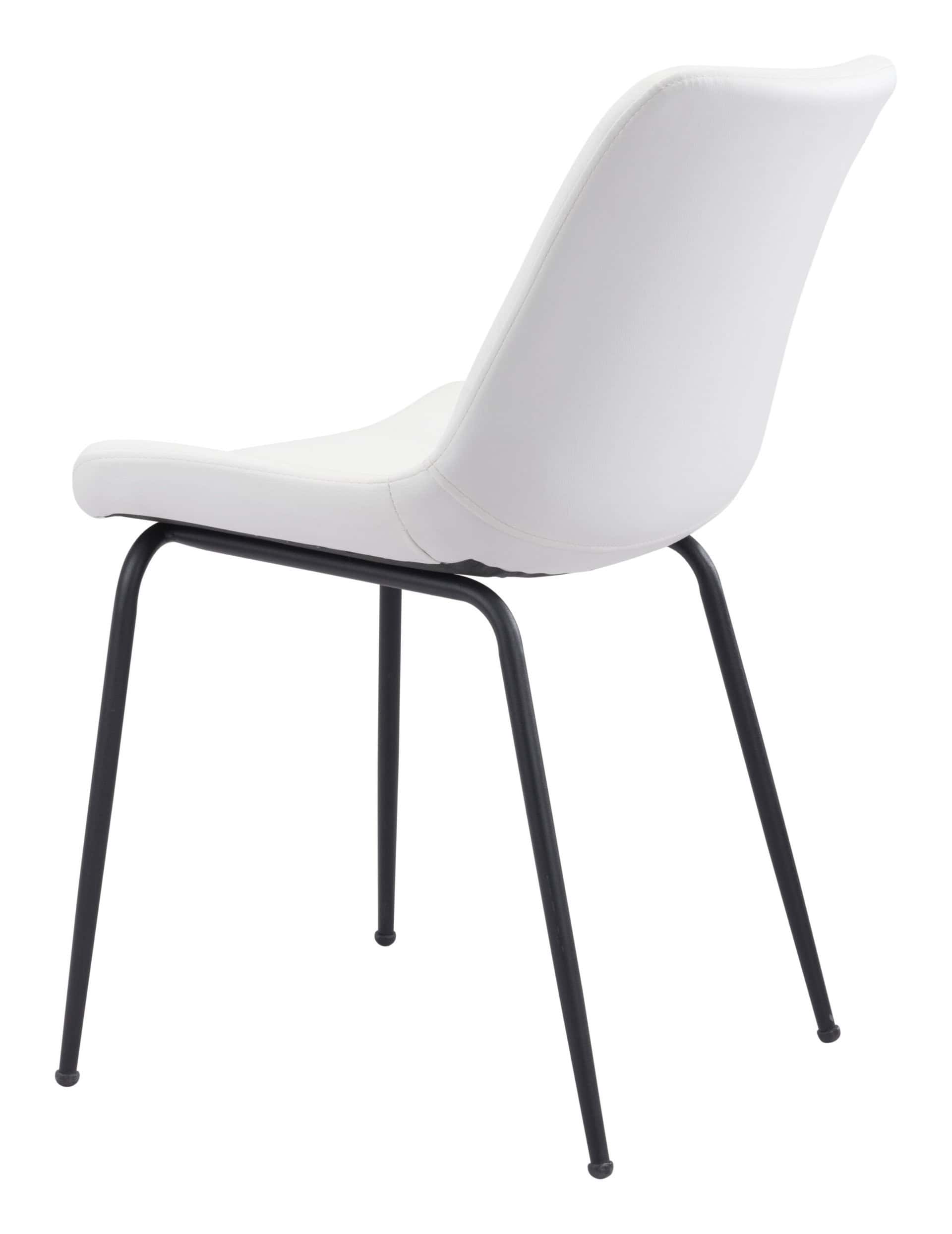 The Mid-Century Modern White Dining Chairs with Steel Legs (Set of 2) bring a sleek, urban aesthetic to your dining room, home office, or any space needing a stylish accent. These chairs feature a sturdy steel frame with a matte black finish and plush faux leather upholstery, offering both comfort and durability. With rubber feet to protect your floors and a weight capacity of up to 330 lbs, these chairs are perfect for any modern man cave or dining area.