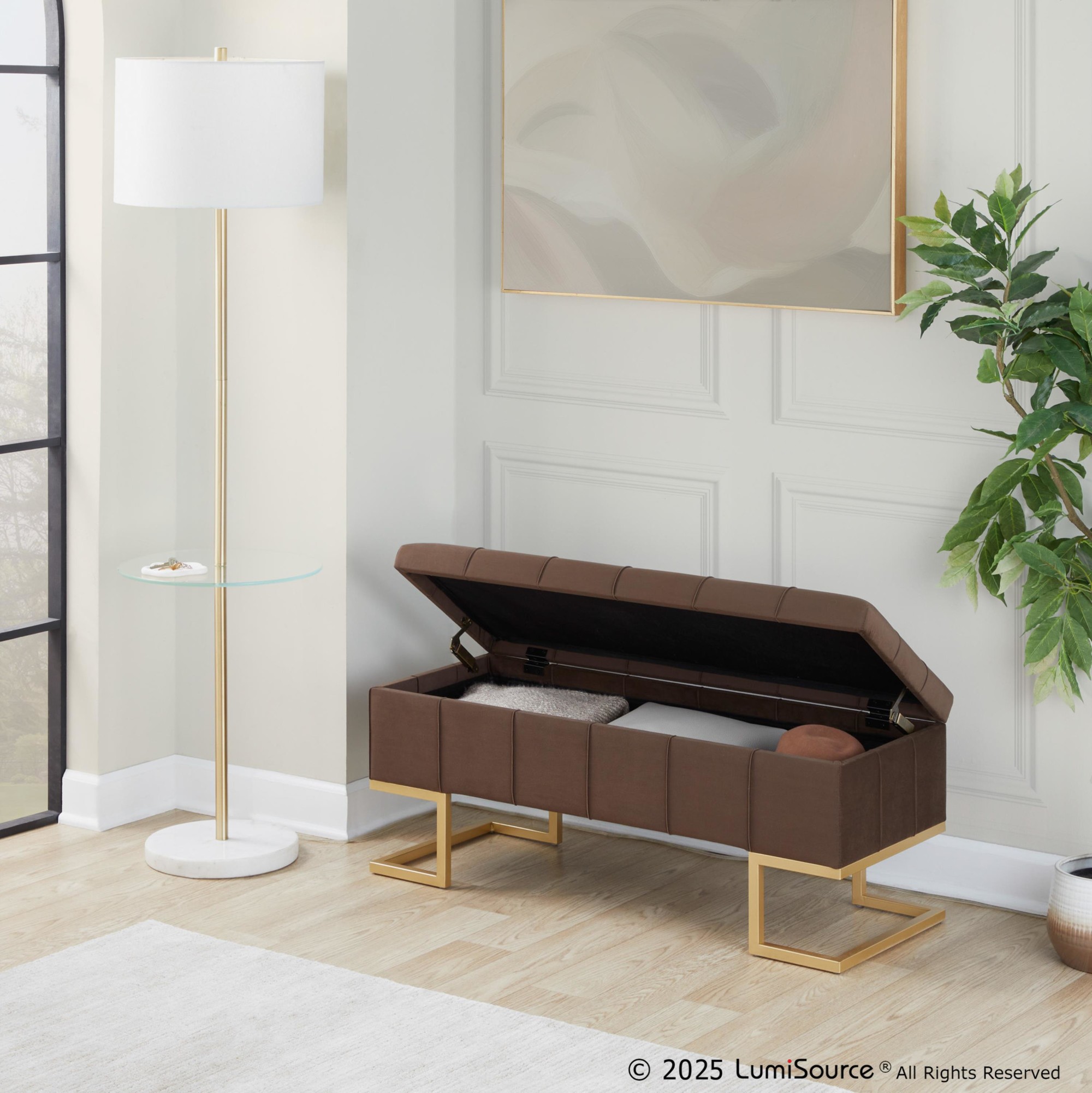 Enjoy the bench’s comfortable seating while discreetly storing items like magazines, remote controls, blankets, or anything else you want to keep within reach but neatly tucked away. The sophisticated design complements any modern decor.
